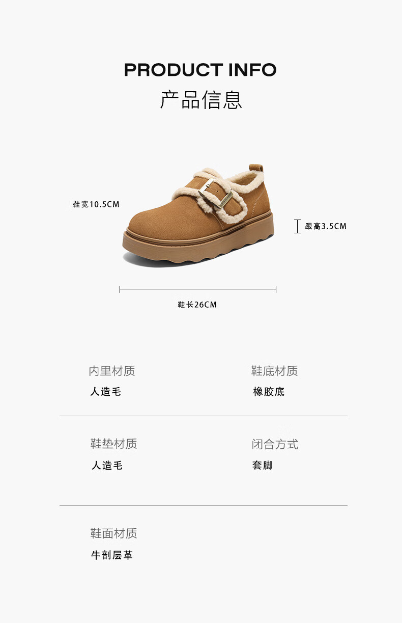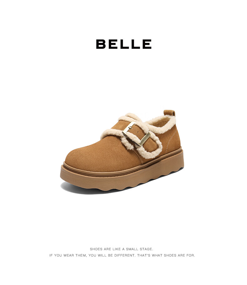 Belle retro fur edge snow boots for women 2025 winter new mall same style comfortable fur casual shoes E5N1DDM5 pre-sale brown 37 (235mm)