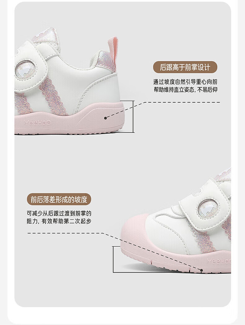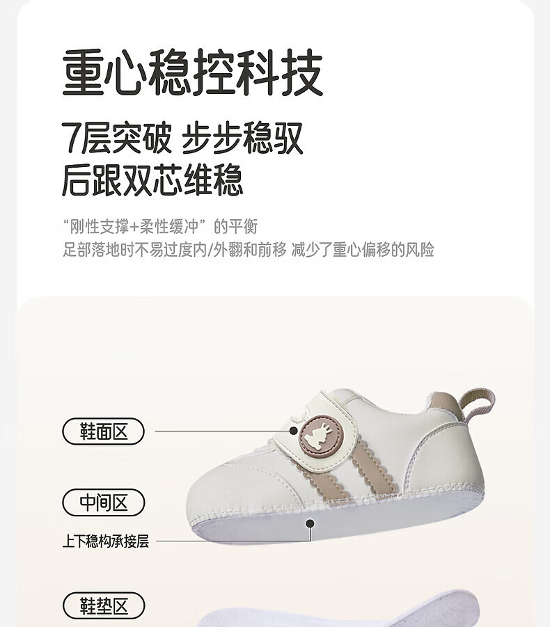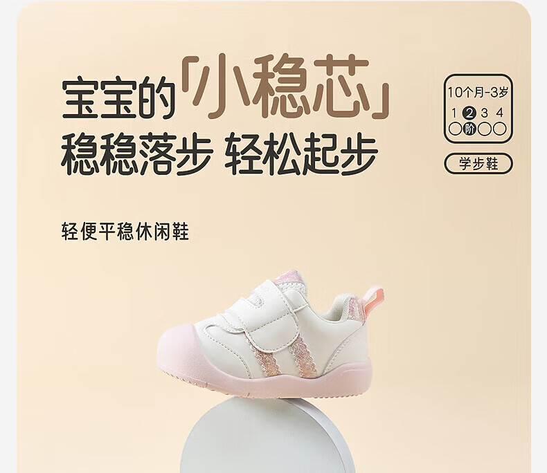 Ying's YEEHOO baby toddler shoes spring and autumn new style boys and girls non-slip functional shoes small baby early stage children's shoes antibacterial shoes milk coffee strips - four seasons style 20 sizes recommended foot length 12.6-13.0cm