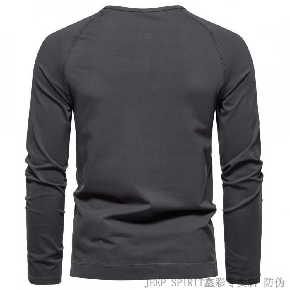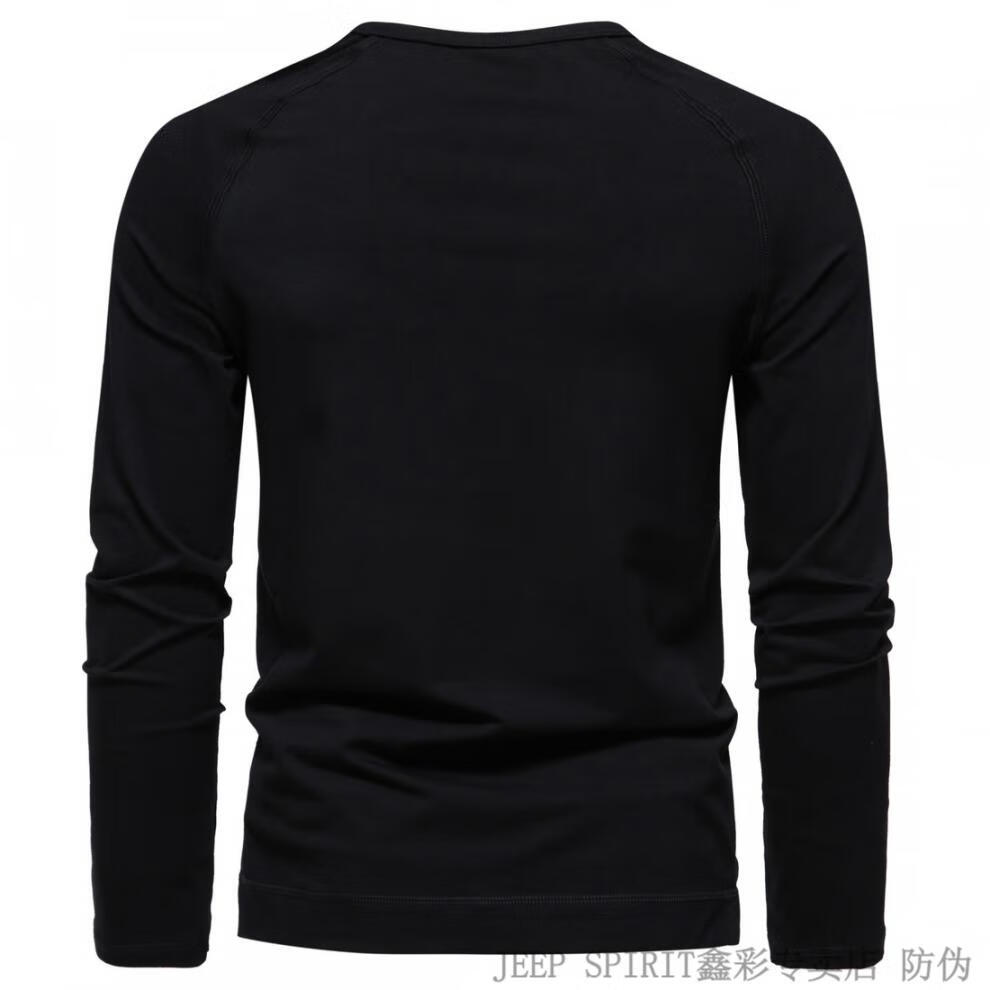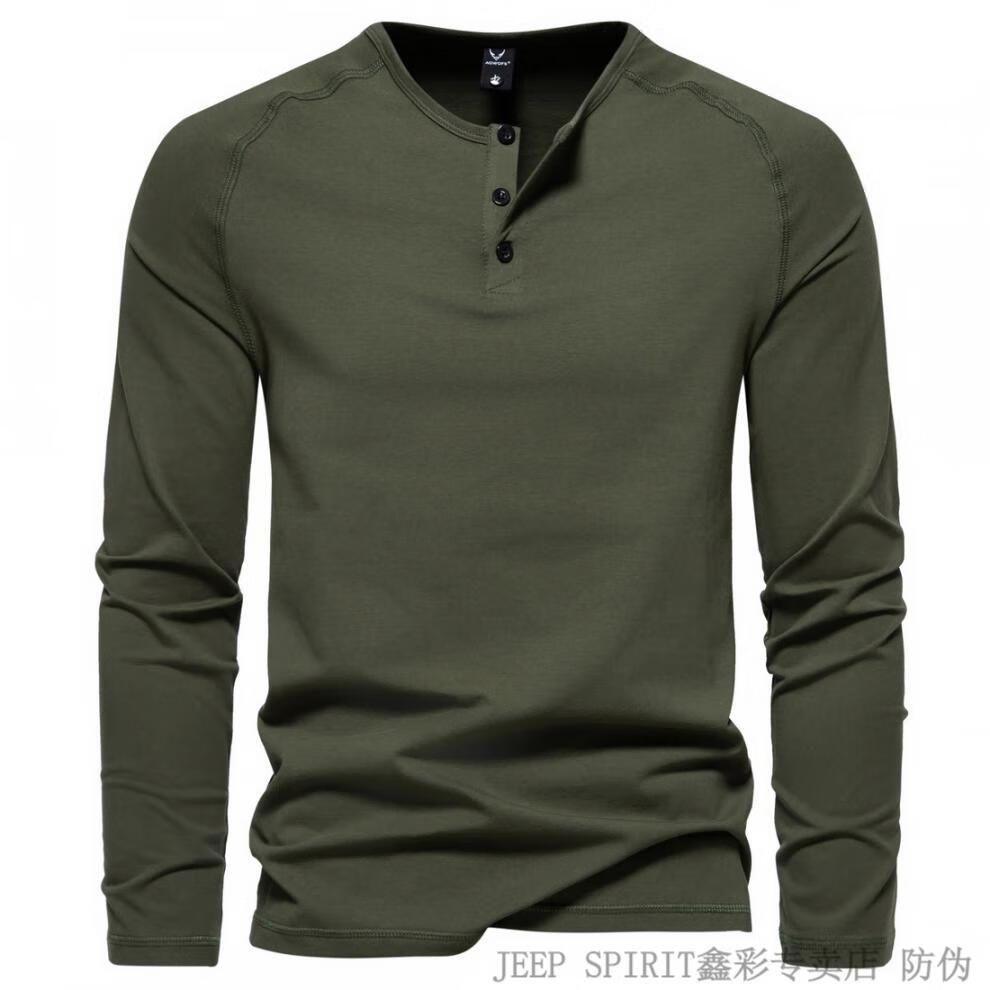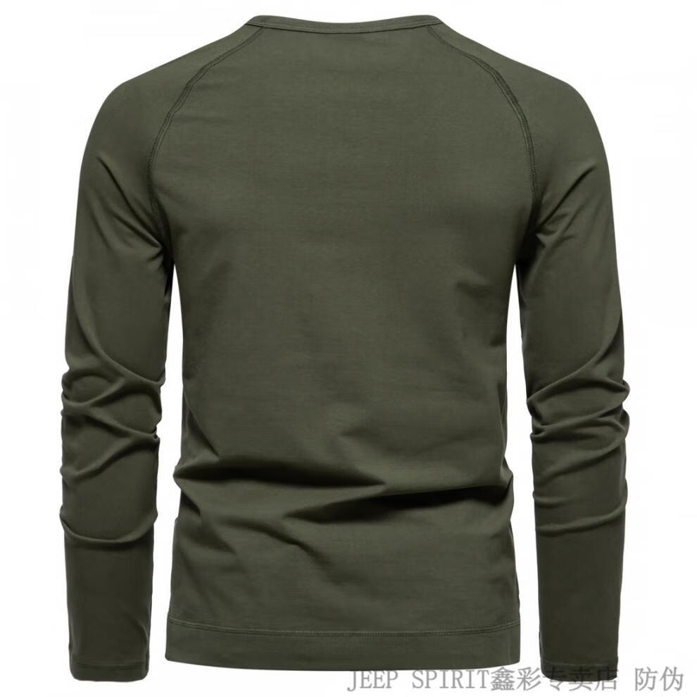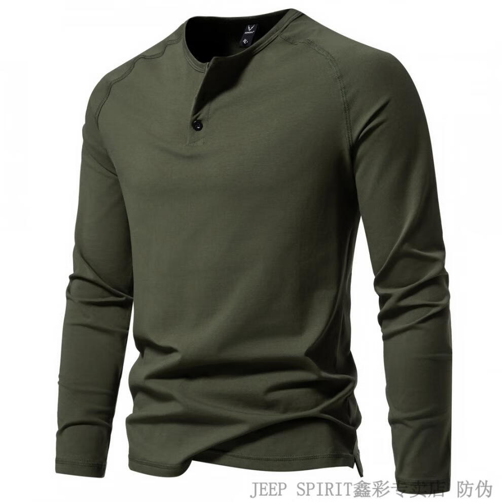 JEEP SPIRIT Jeep Autumn Men's Pure Cotton Henry Collar Long Sleeve T-Shirt Youth Simple Elastic Slim Solid Color Versatile Bottoming Shirt Army Green M (100Jin Jin is equal to 0.5kg -115Jin Jin is equal to 0.5kg)