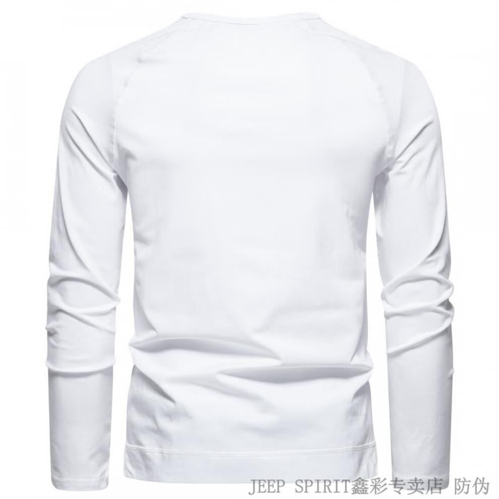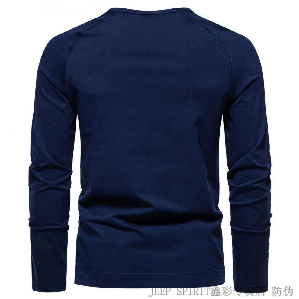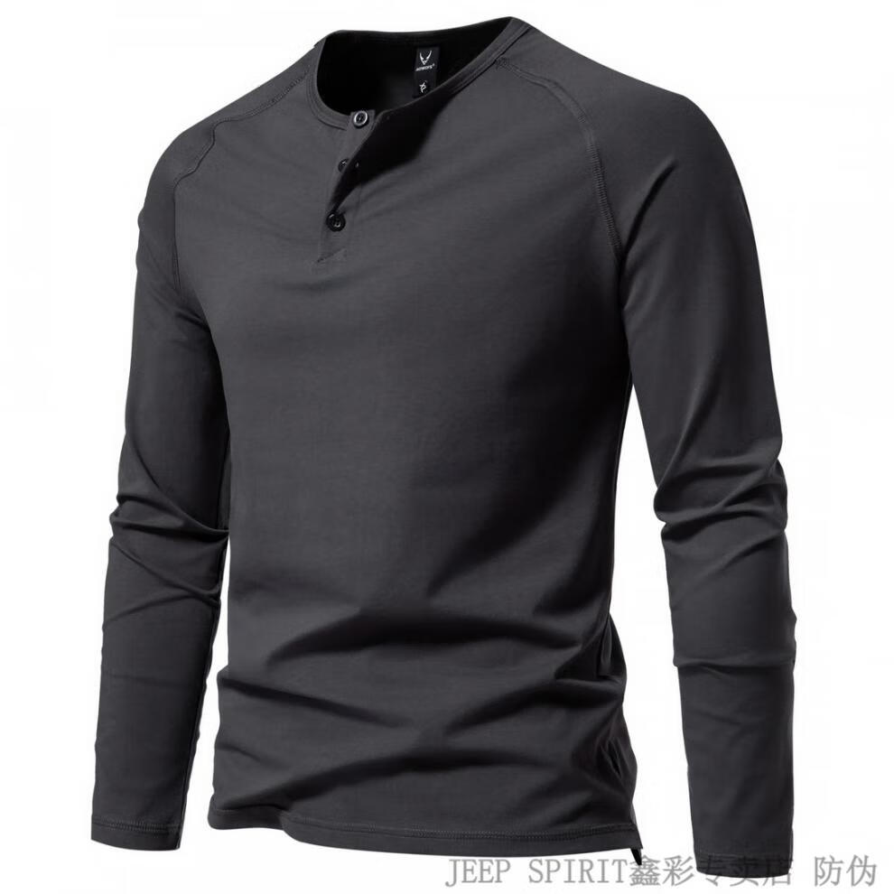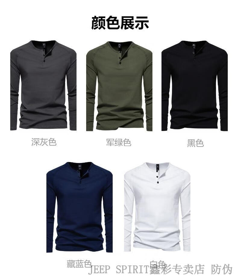 JEEP SPIRIT Jeep Autumn Men's Pure Cotton Henry Collar Long Sleeve T-Shirt Youth Simple Elastic Slim Solid Color Versatile Bottoming Shirt Army Green M (100Jin Jin is equal to 0.5kg -115Jin Jin is equal to 0.5kg)