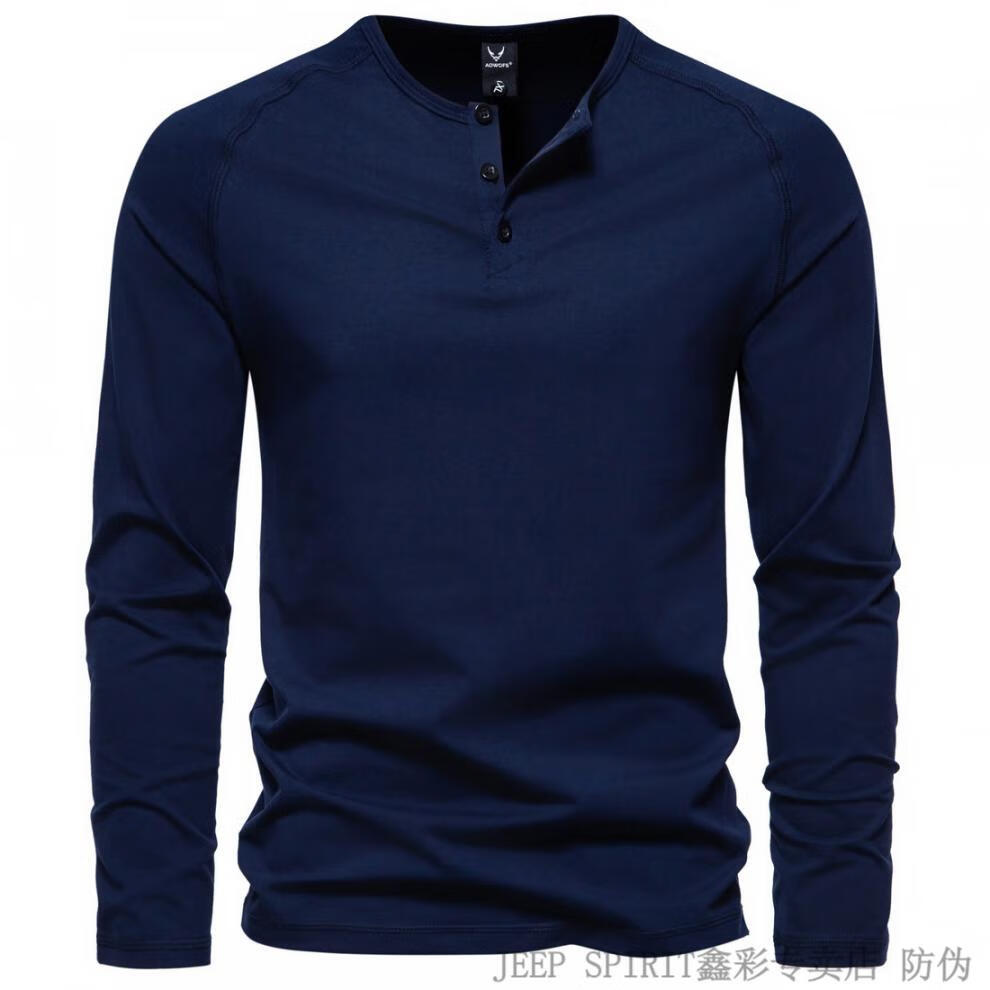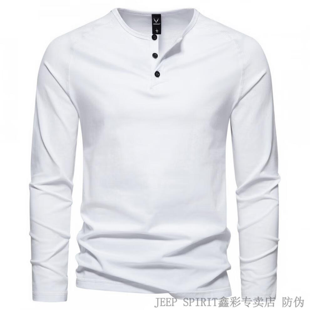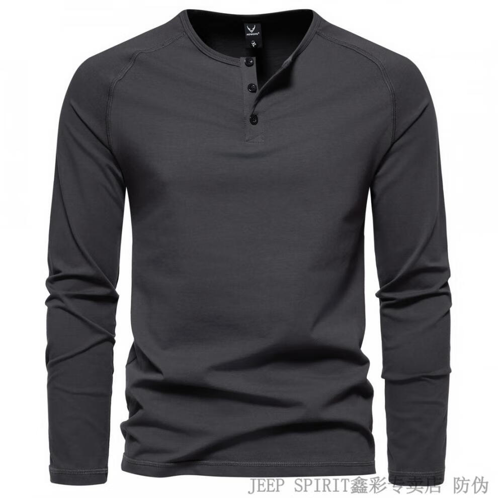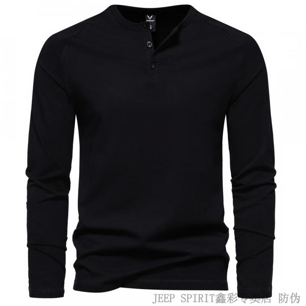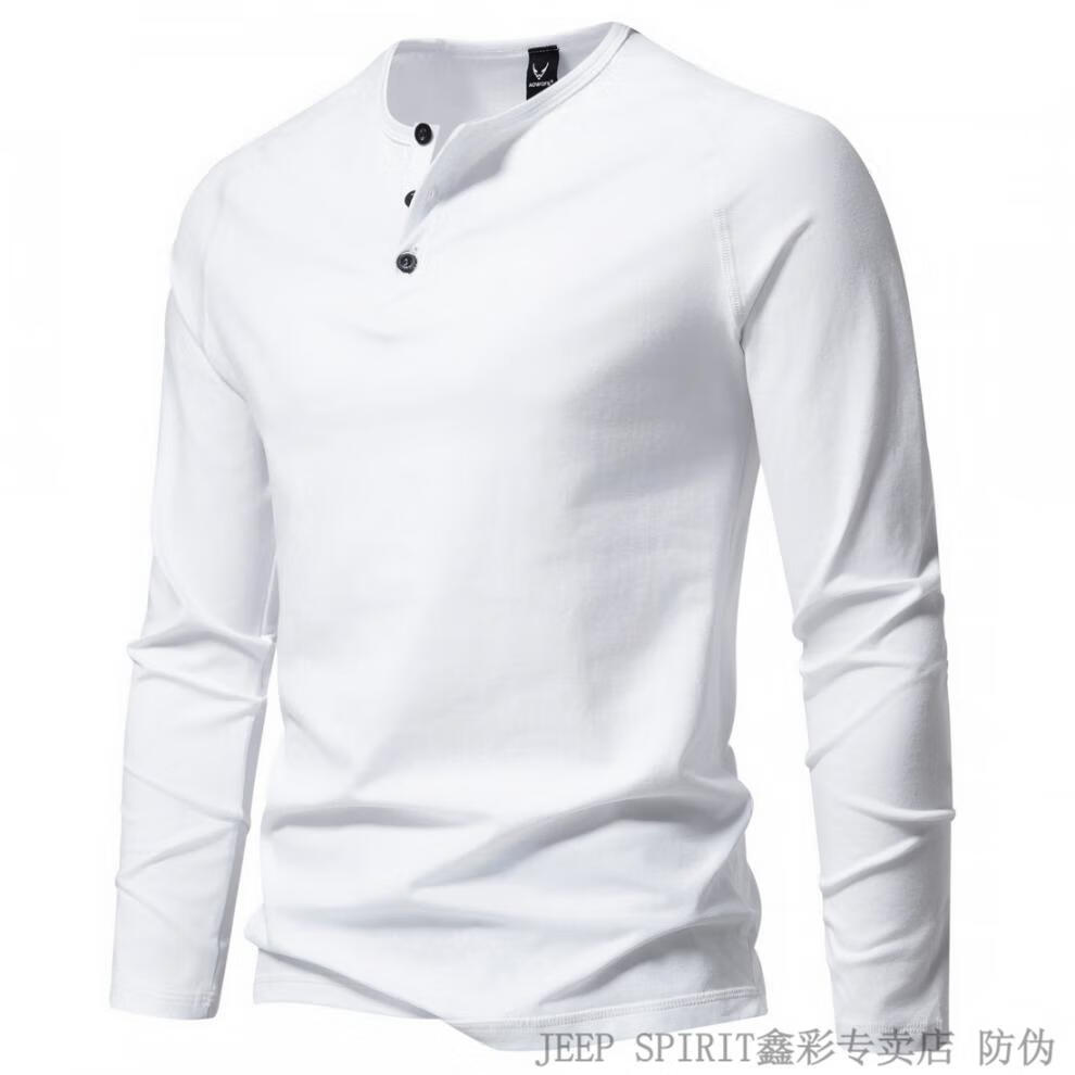 JEEP SPIRIT Jeep Autumn Men's Pure Cotton Henry Collar Long Sleeve T-Shirt Youth Simple Elastic Slim Solid Color Versatile Bottoming Shirt Army Green M (100Jin Jin is equal to 0.5kg -115Jin Jin is equal to 0.5kg)