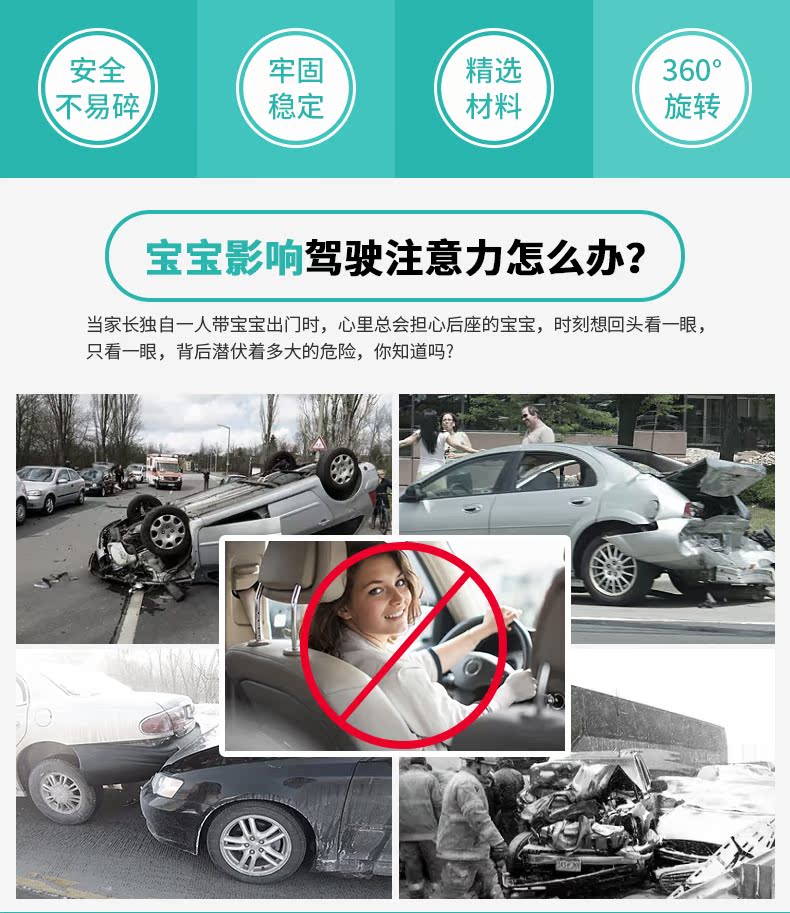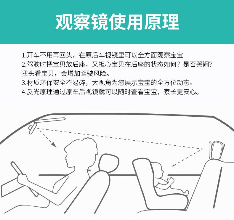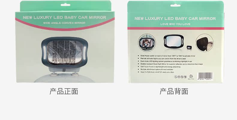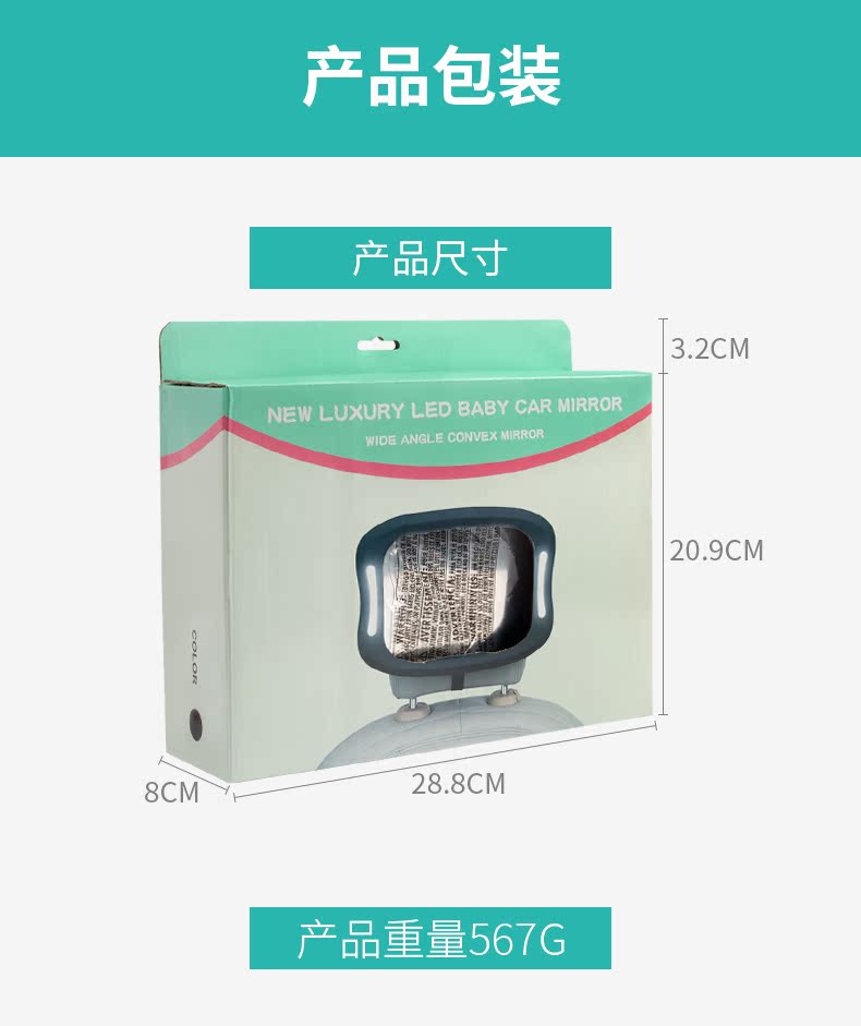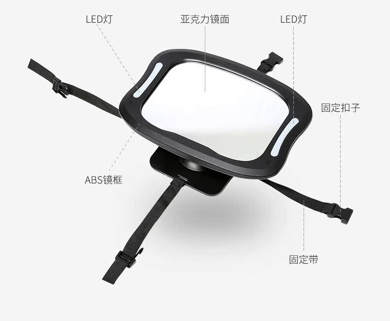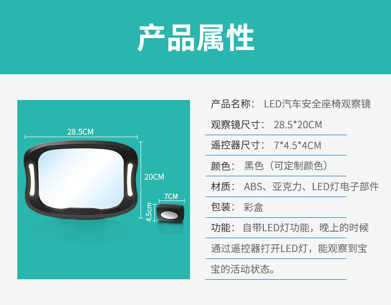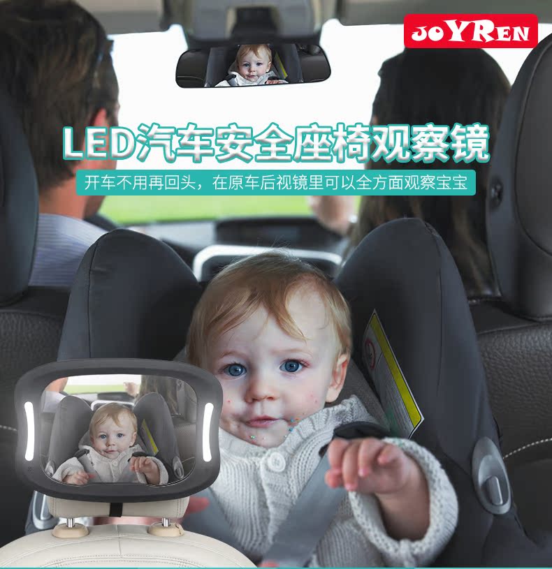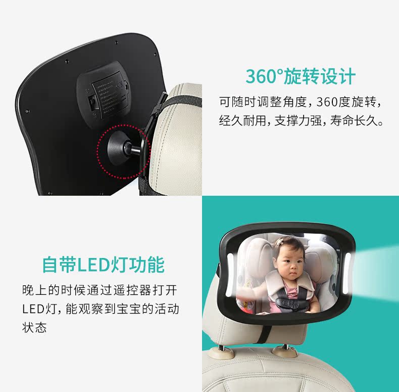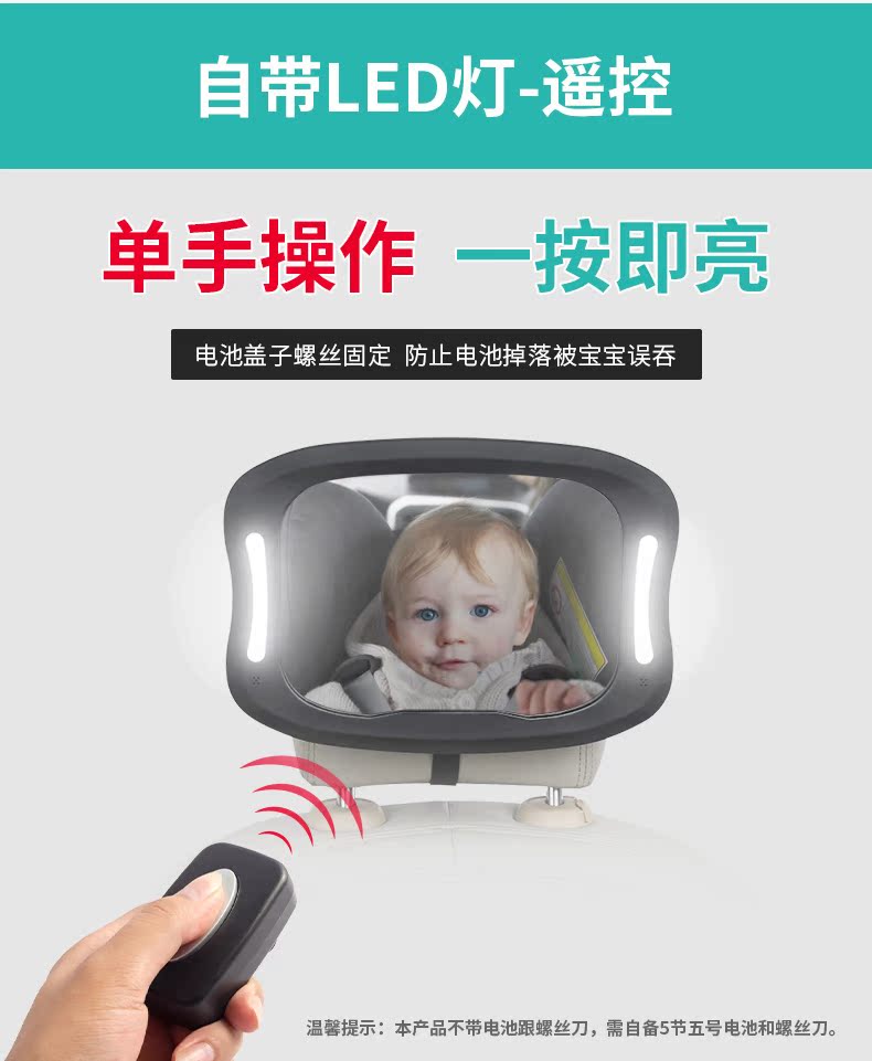 Qixun Car Baby Rearview Mirror Baby Auxiliary Observation Mirror Child Safety Seat Reverse Mirror Universal LED Light Remote Control Black (360 Degree Rotation)