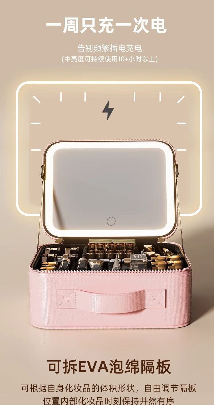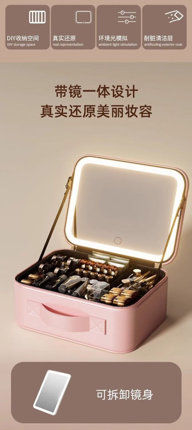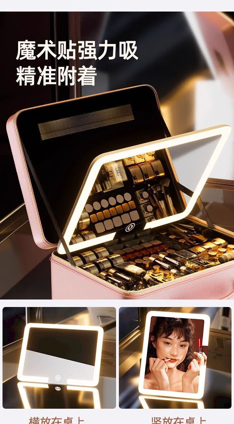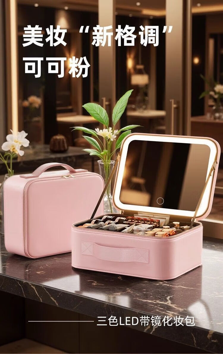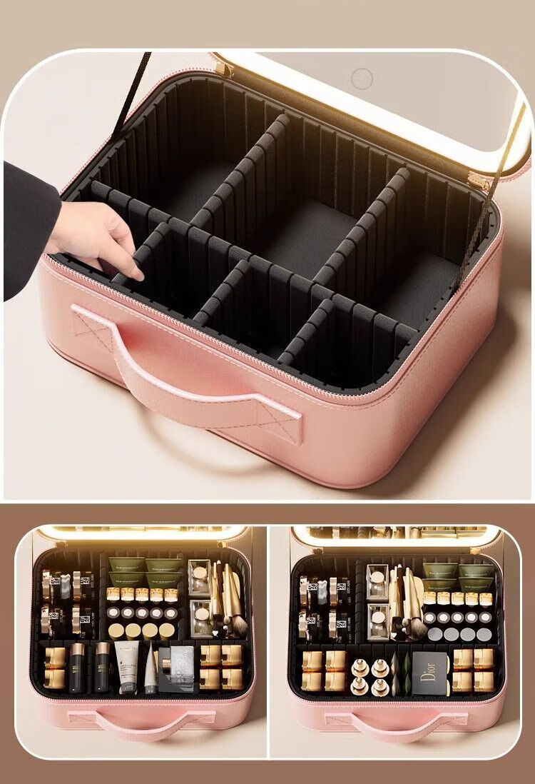 Vipero Cosmetic Bag with Mirror and Light 2025 Lighted Cosmetic Case with Mirror Cosmetic Bag Battery Portable Classic Black Large LED Tricolor Mirror #New Product Same Style for Makeup Artists Portable Cosmetic Case