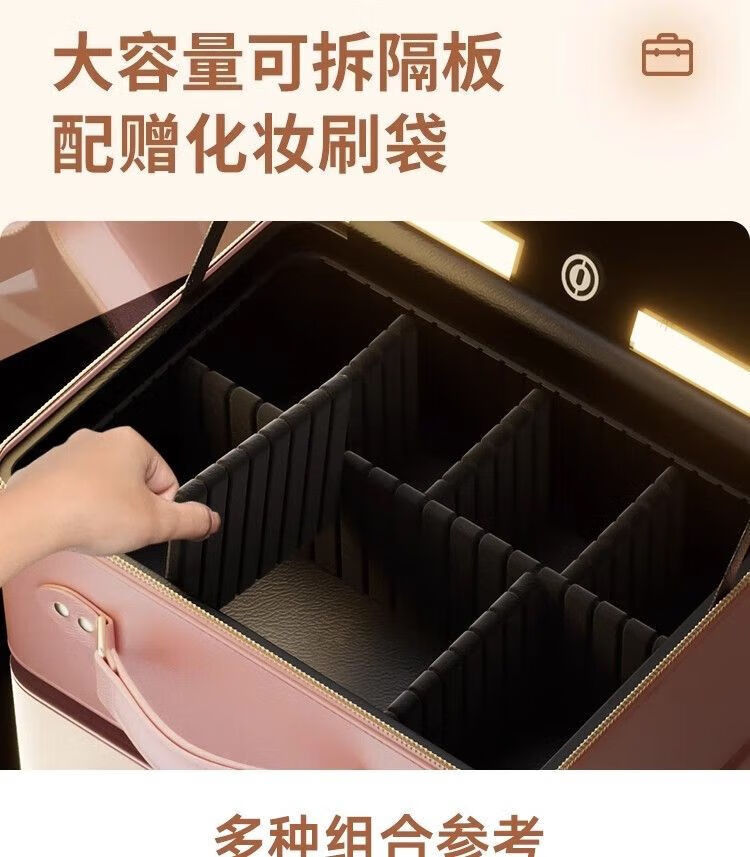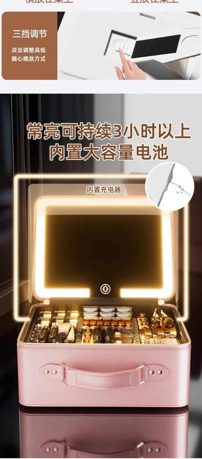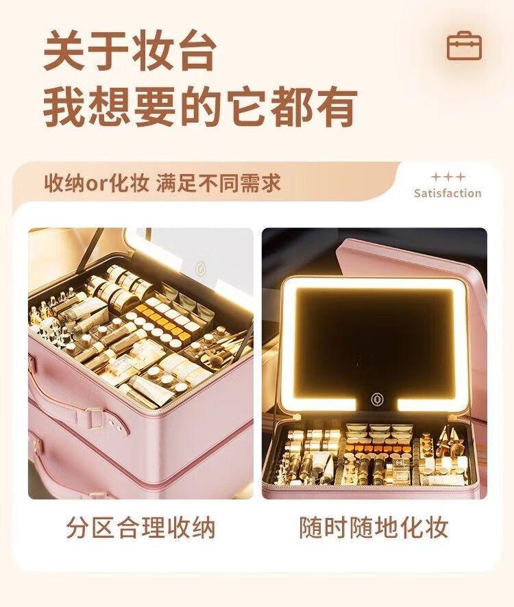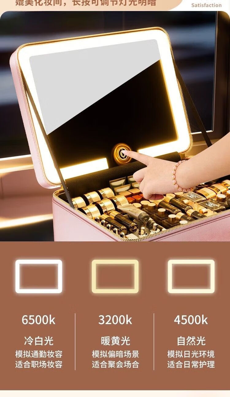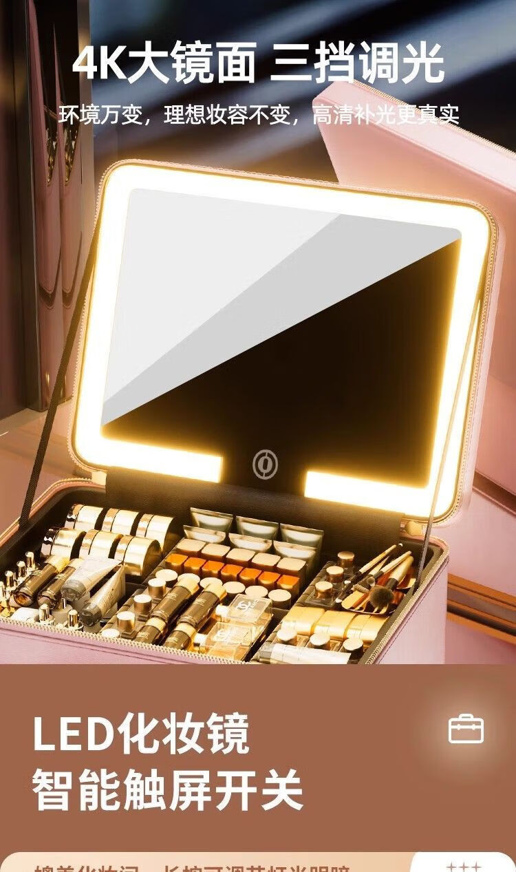 Vipero Cosmetic Bag with Mirror and Light 2025 Lighted Cosmetic Case with Mirror Cosmetic Bag Battery Portable Classic Black Large LED Tricolor Mirror #New Product Same Style for Makeup Artists Portable Cosmetic Case