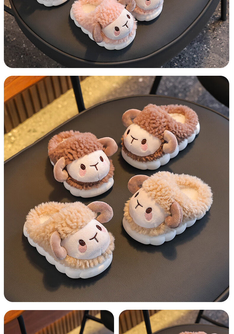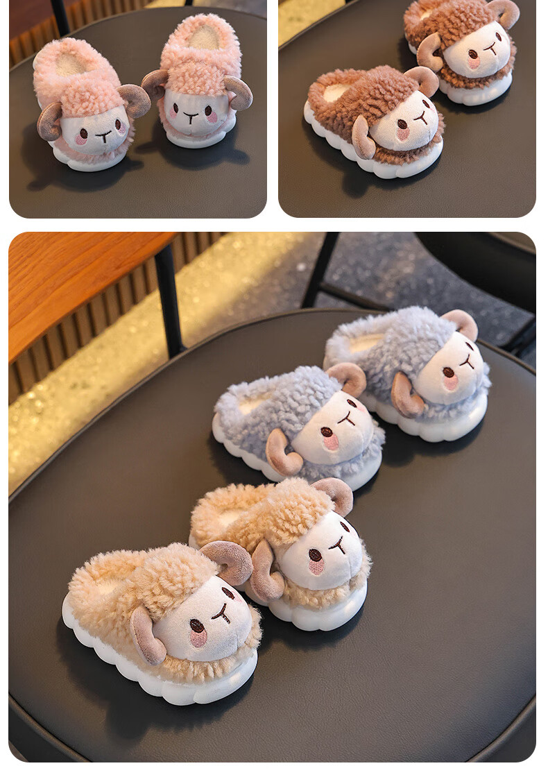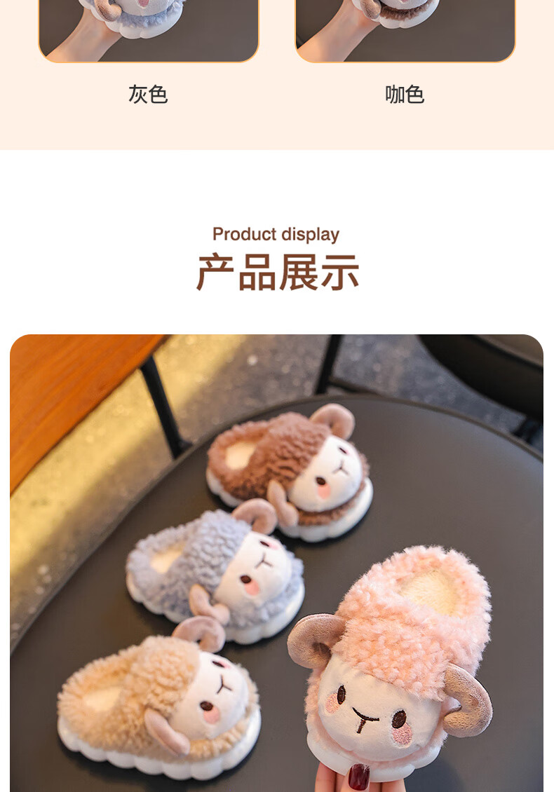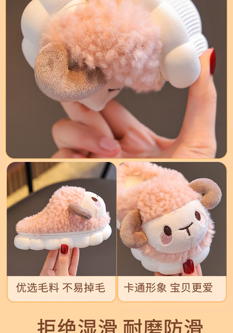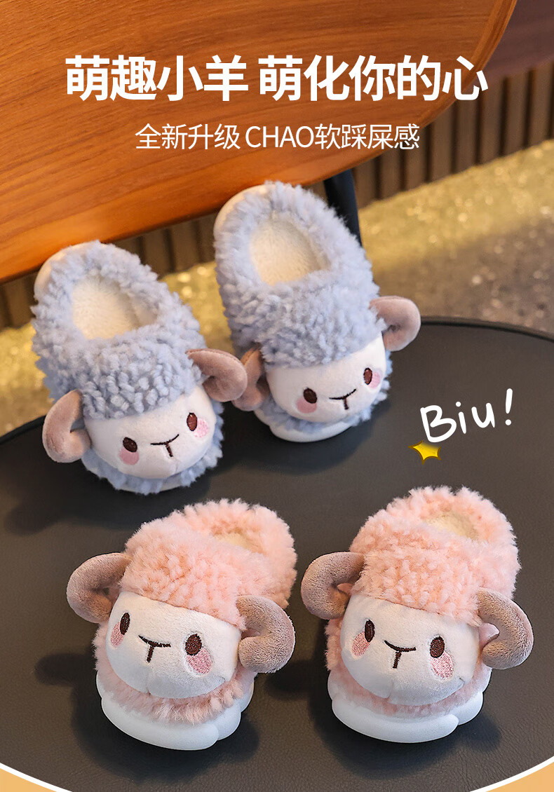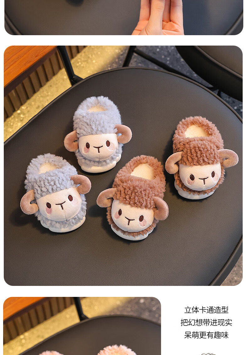 冬季儿童棉拖鞋女童2025新款保暖加绒毛毛男孩卡通宝宝包跟居家鞋 天蓝拖鞋 12 26/27码(鞋内长16CM适合脚长15