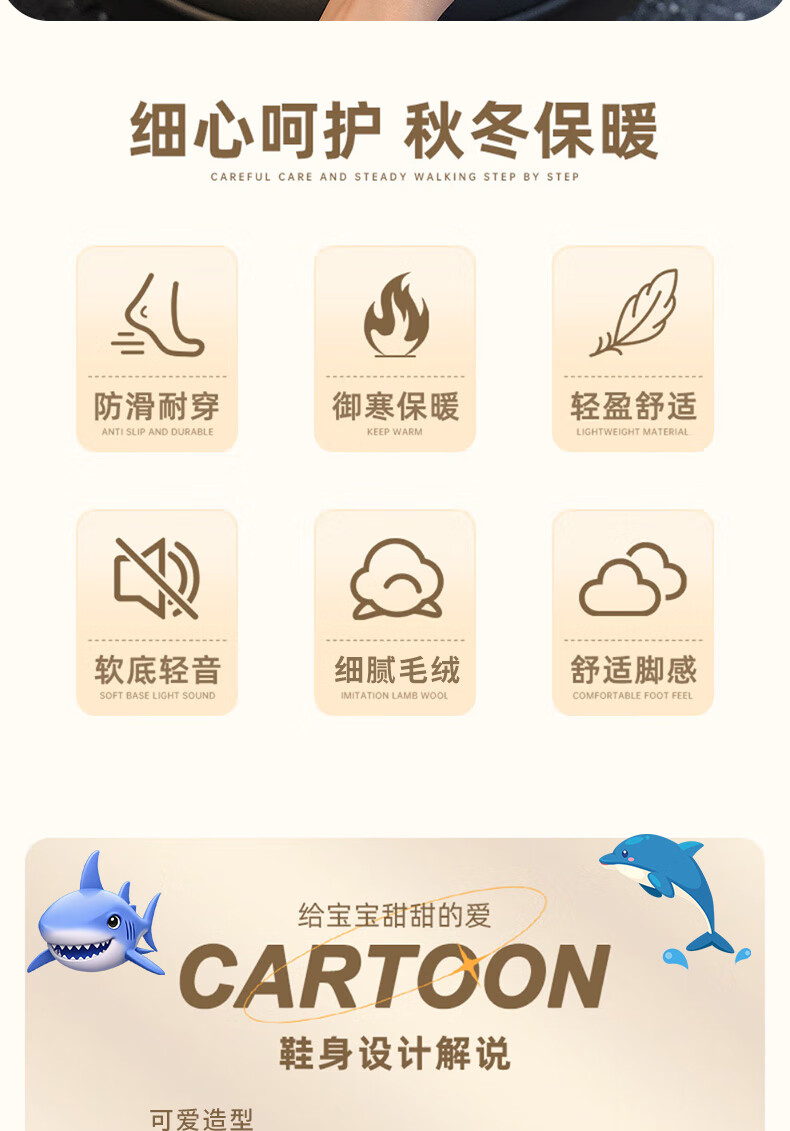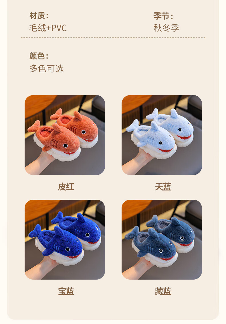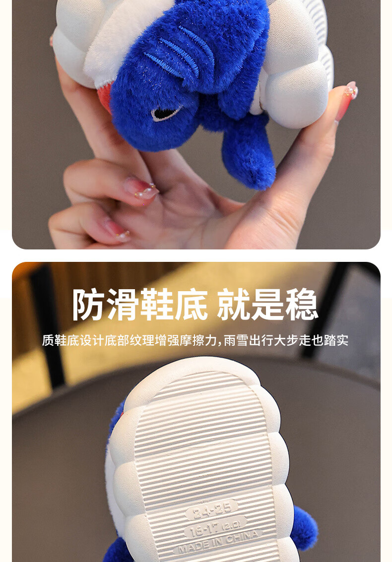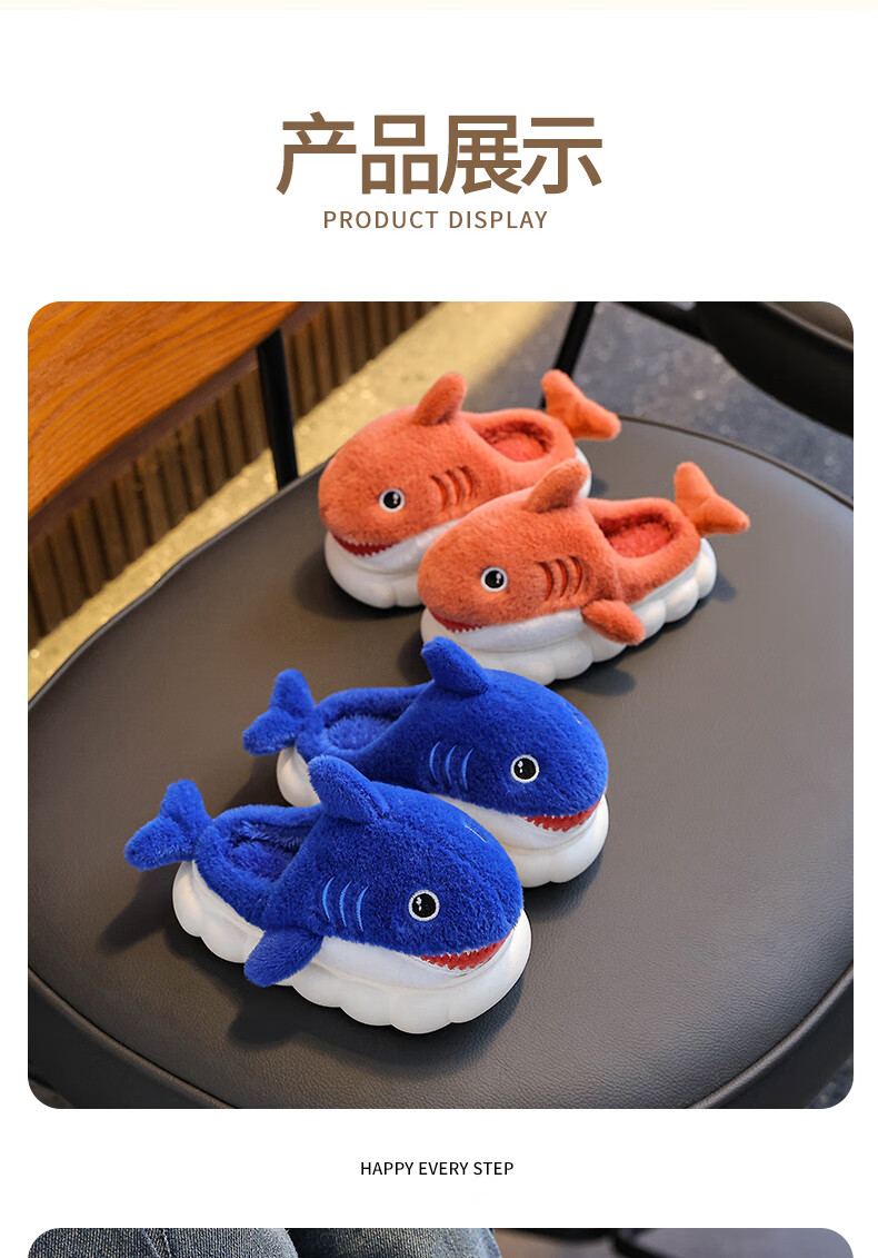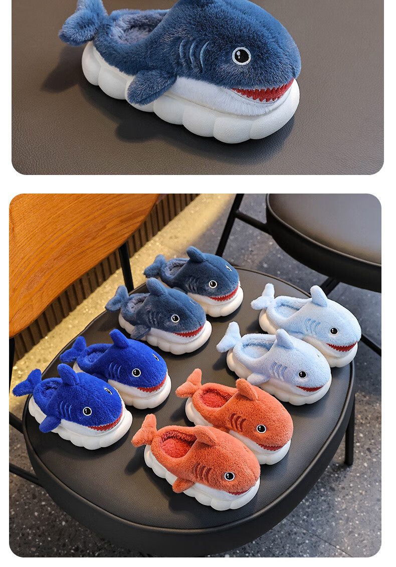 Winter children's cotton slippers, boy's shark bag heel, warm and furry, cute girl's home baby anti-slip cotton slippers, blue slippers 12, 28/29 size (shoe length 17CM, suitable for feet 16