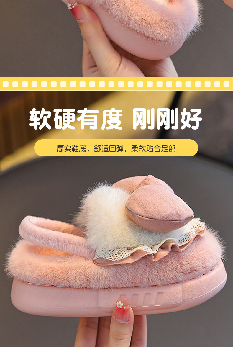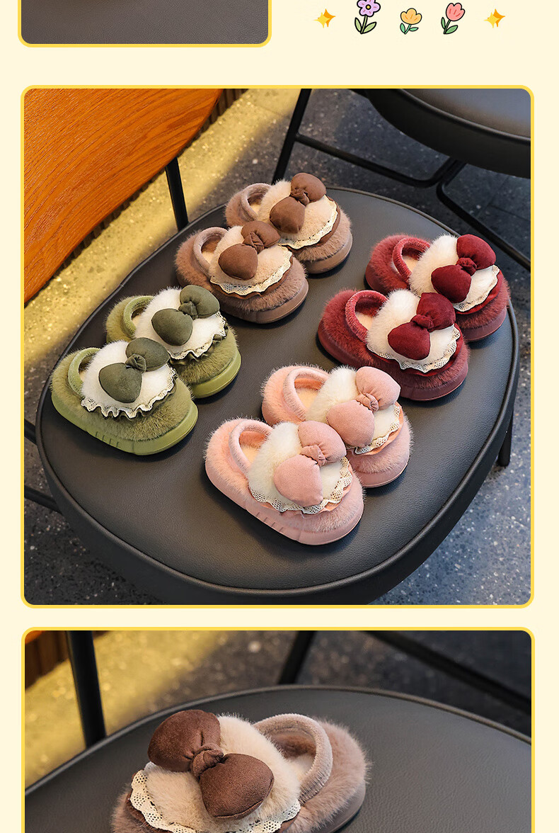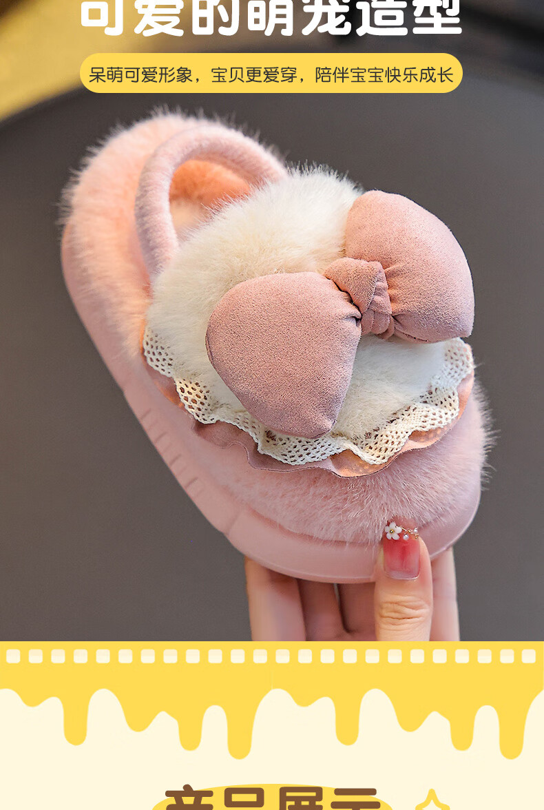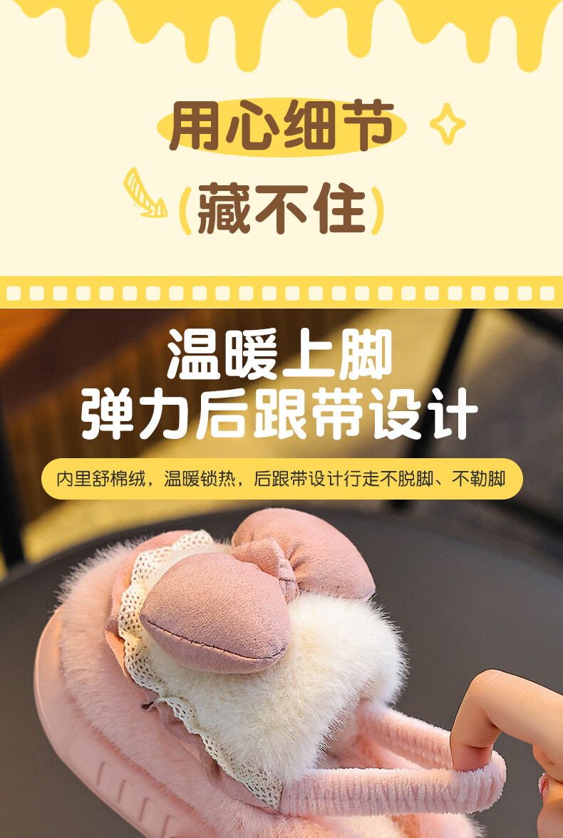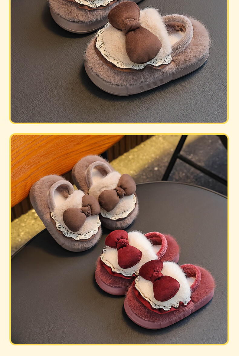 Winter children's cotton slippers for girls princess non-slip EVA warm plus fluffy bow cotton slippers for small and medium-sized children red (heel included) 12 34/35 size (inner length 20CM without back elastic band