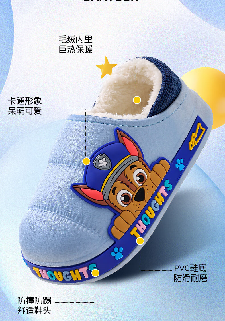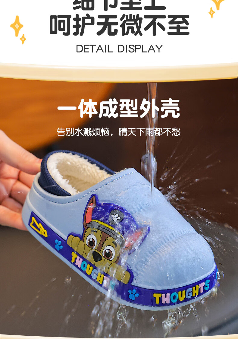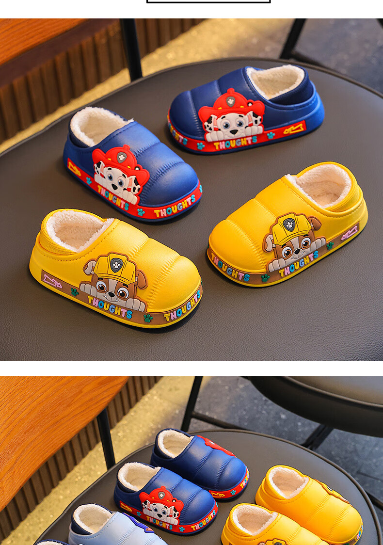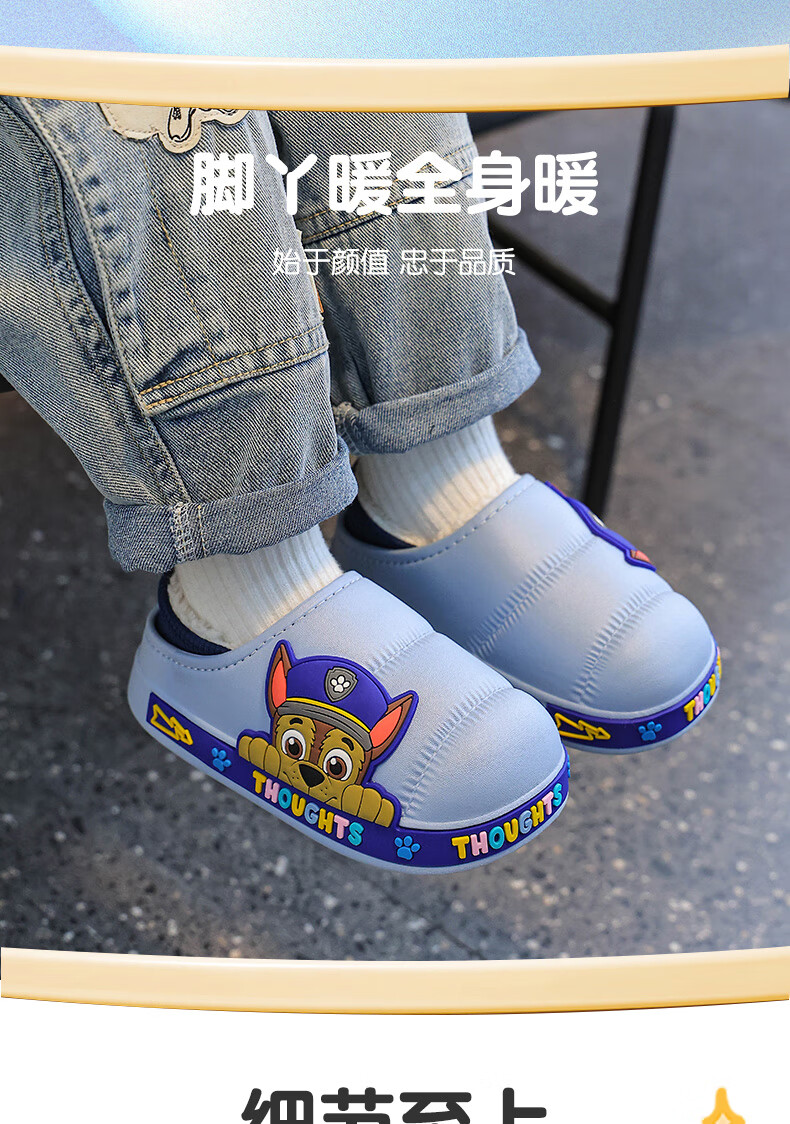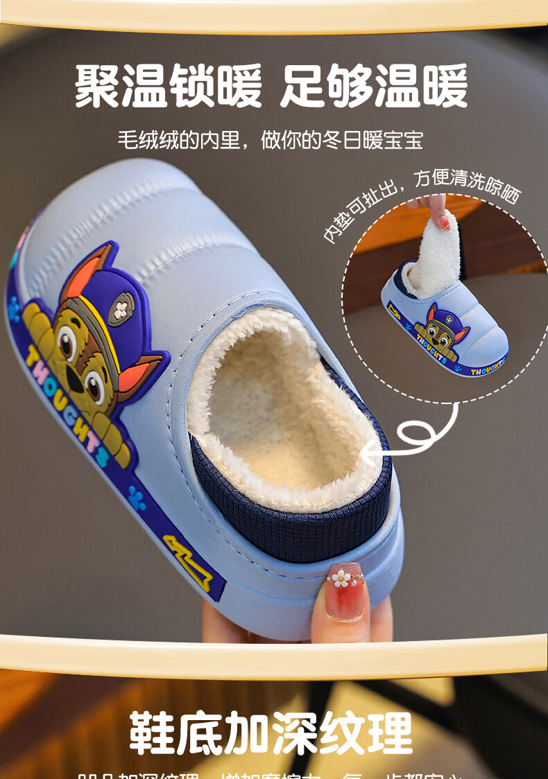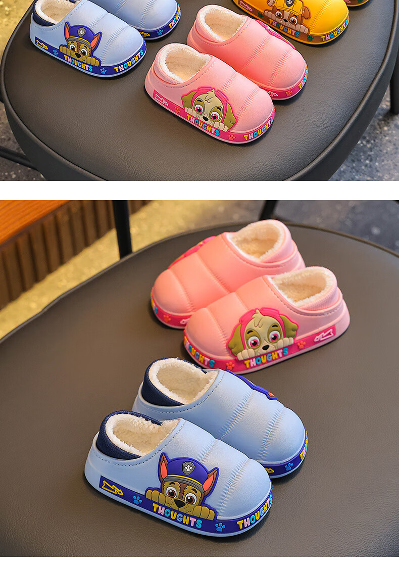 Genuine Paw Patrol winter children's cotton slippers, warm plus velvet heel, waterproof and non-slip home cotton slippers for small and medium-sized children, upgraded environmentally friendly material, light blue Archie (heel included) 12 28/29 size (shoe inner length 17CM, suitable for feet 16