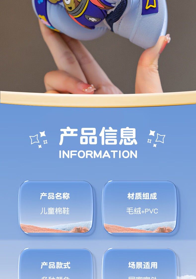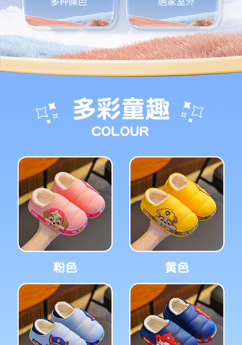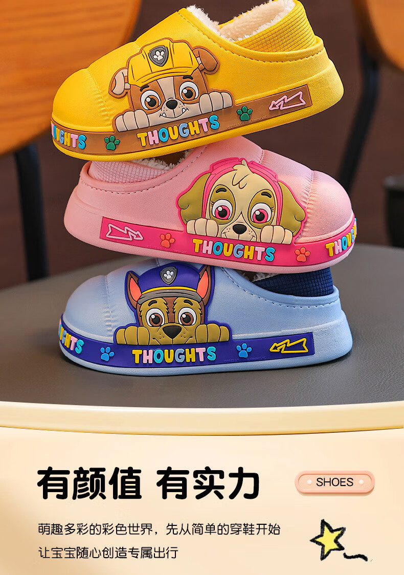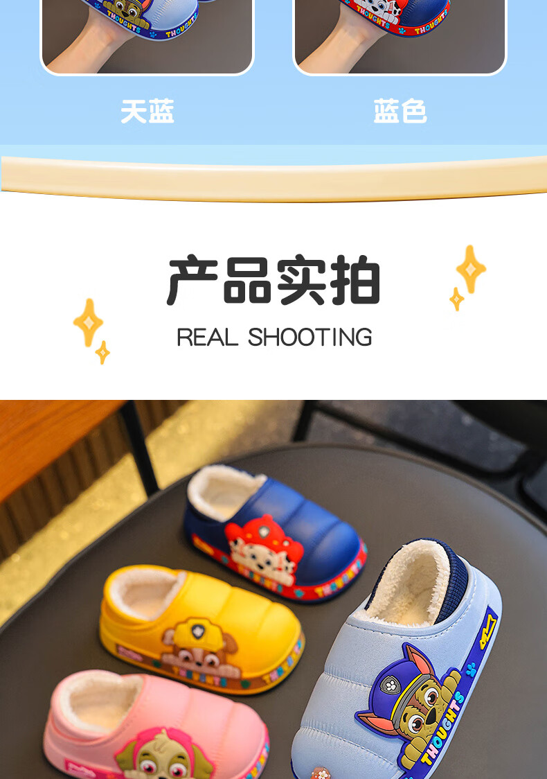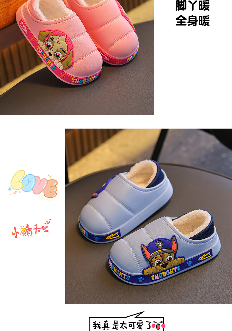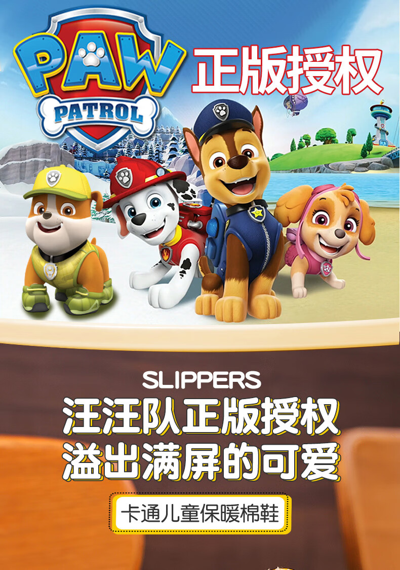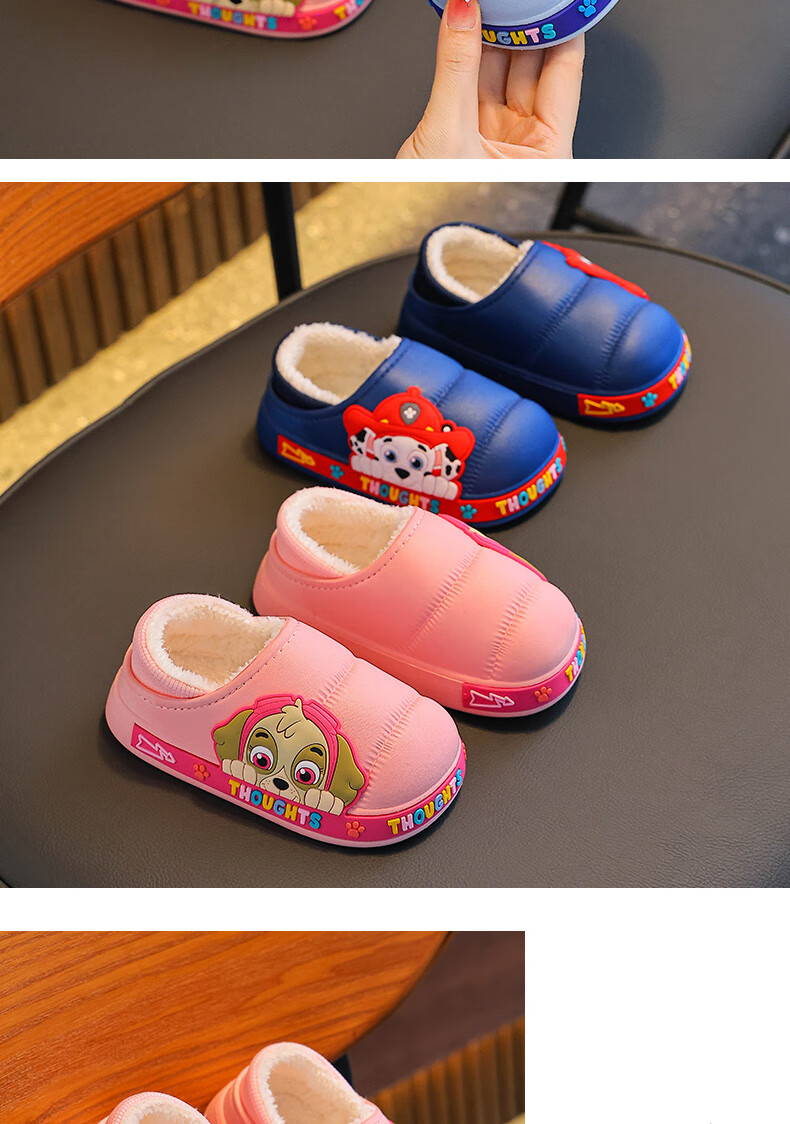 Genuine Paw Patrol winter children's cotton slippers, warm plus velvet heel, waterproof and non-slip home cotton slippers for small and medium-sized children, upgraded environmentally friendly material, light blue Archie (heel included) 12 28/29 size (shoe inner length 17CM, suitable for feet 16