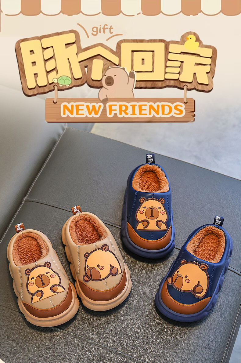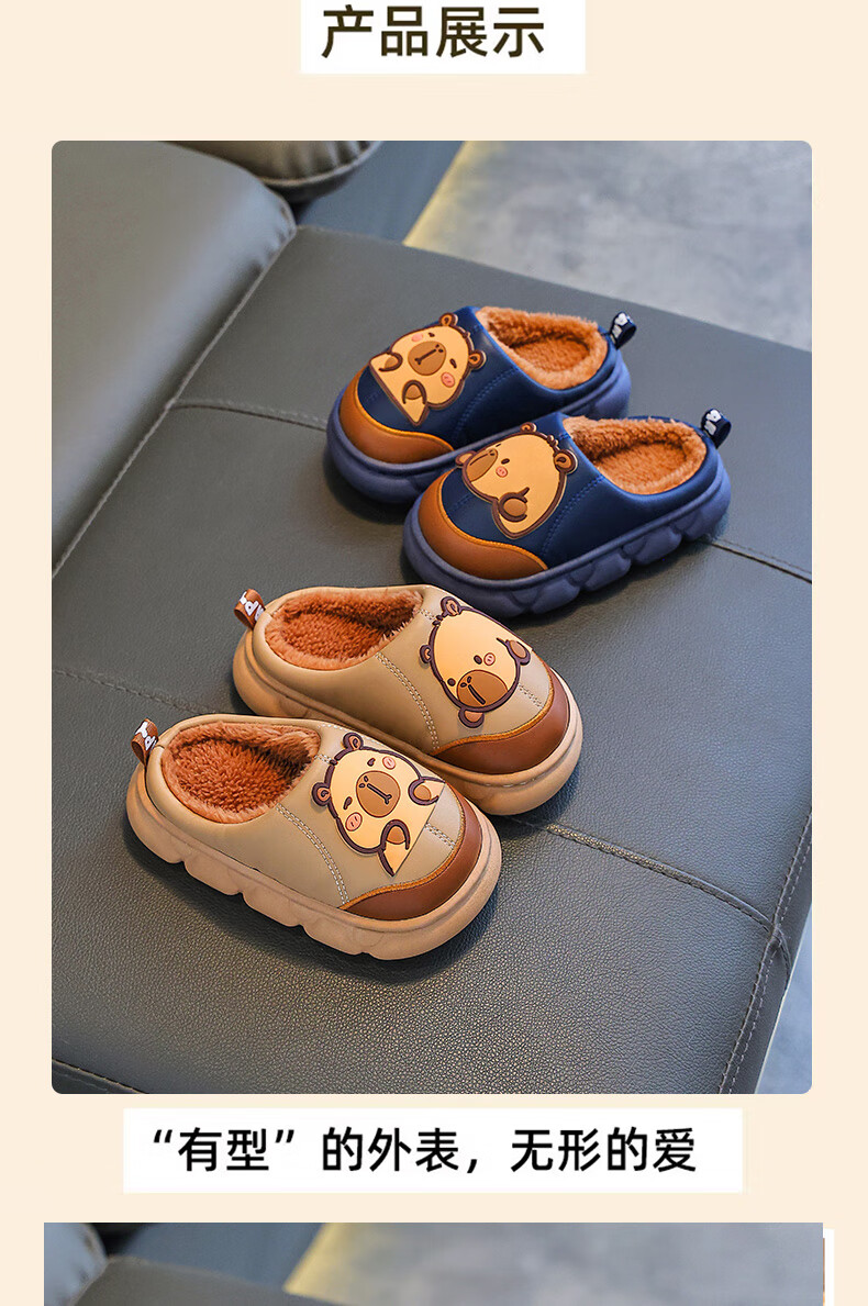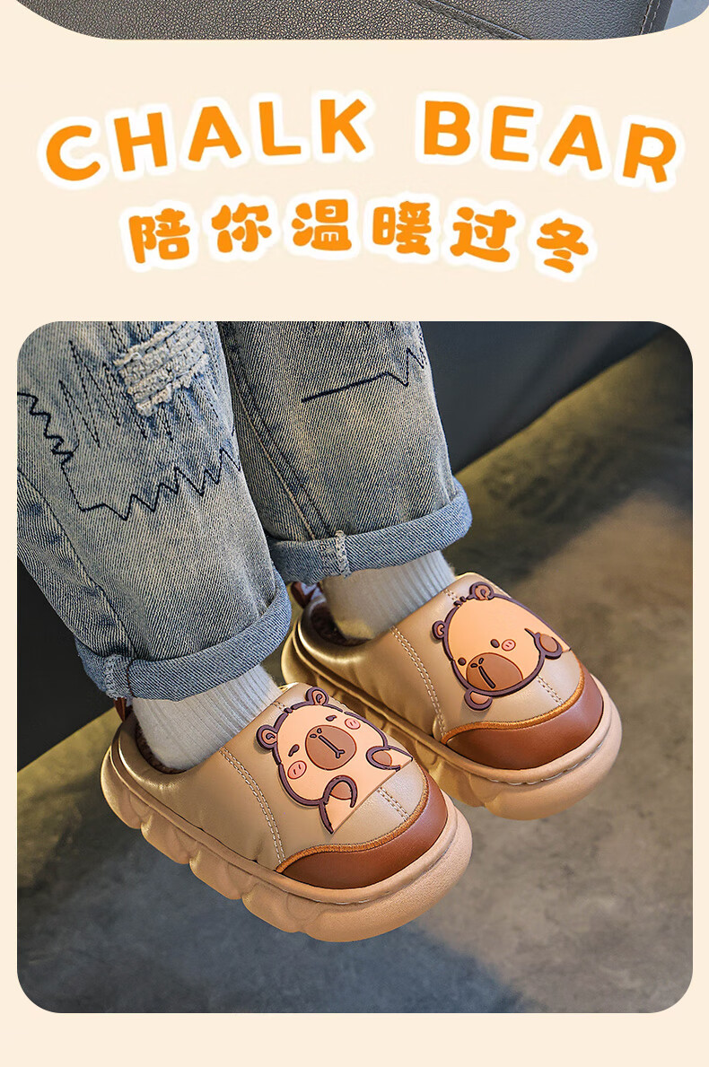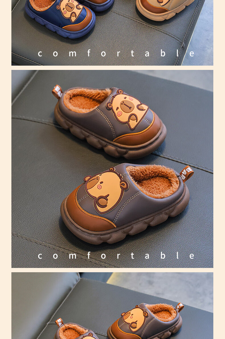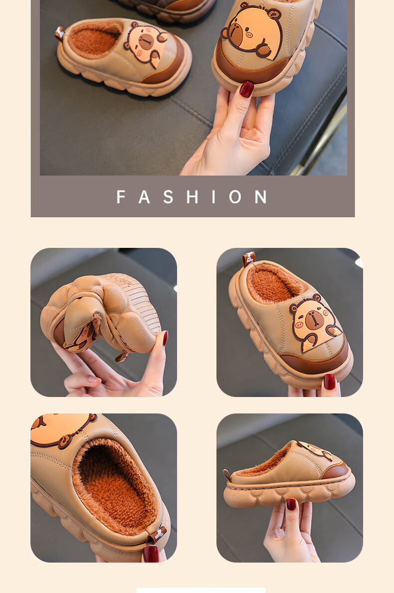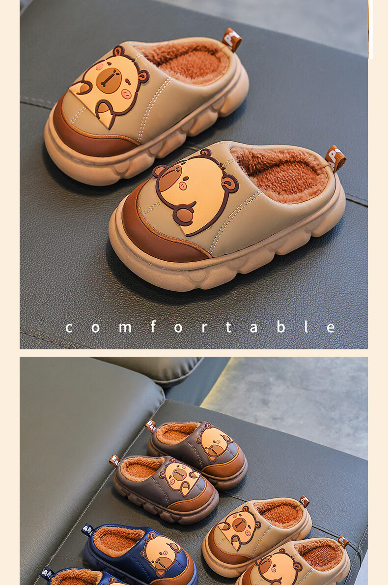 Kapibara children's cotton slippers for boys in autumn and winter 2025 new style for home and outdoor wear parent-child non-slip girls to keep warm Upgraded version of environmentally friendly material dark coffee (heel included) 12 34/35 size (shoe inner length 20CM suitable for feet 19
