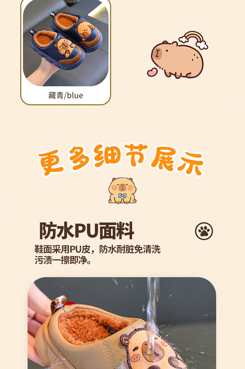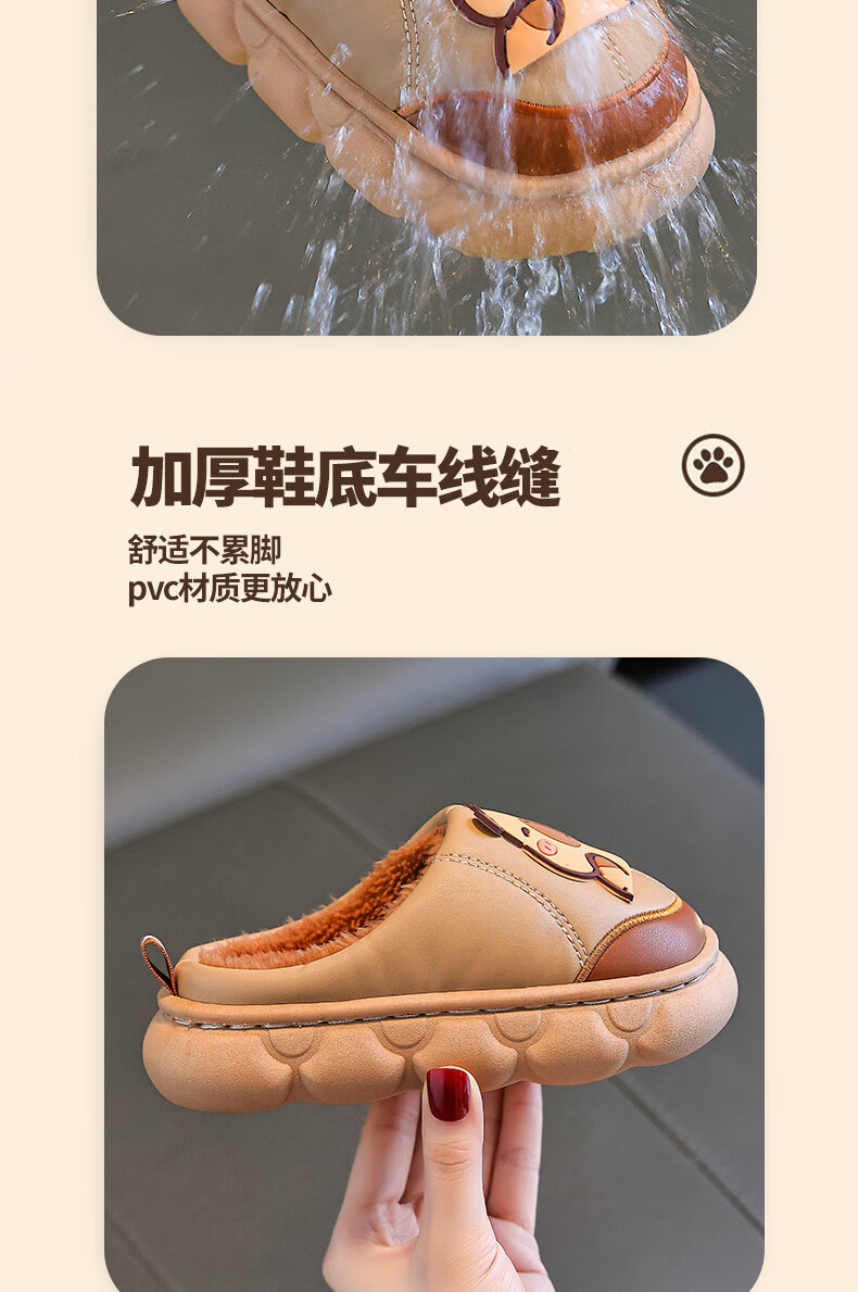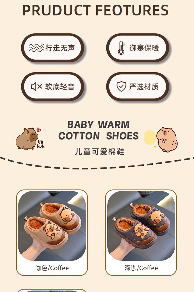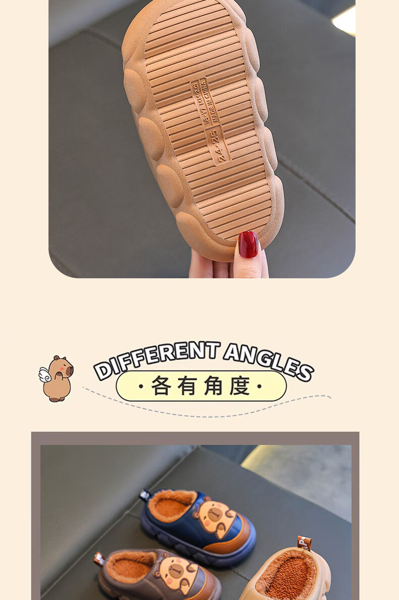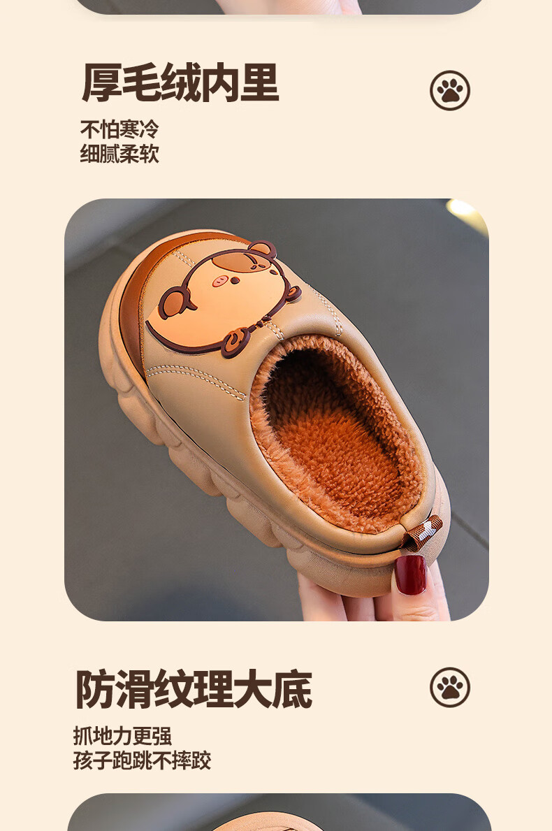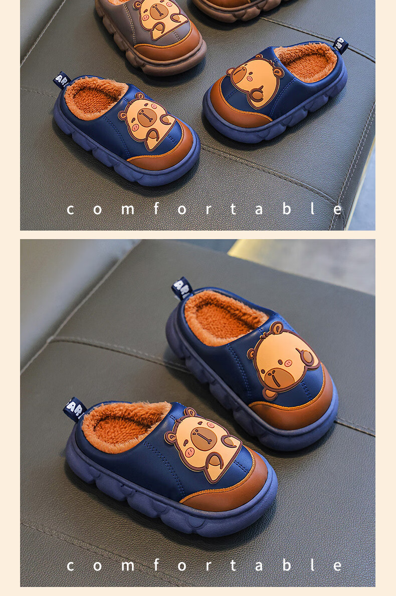 Kapibara children's cotton slippers for boys in autumn and winter 2025 new style for home and outdoor wear parent-child non-slip girls to keep warm Upgraded version of environmentally friendly material dark coffee (heel included) 12 34/35 size (shoe inner length 20CM suitable for feet 19