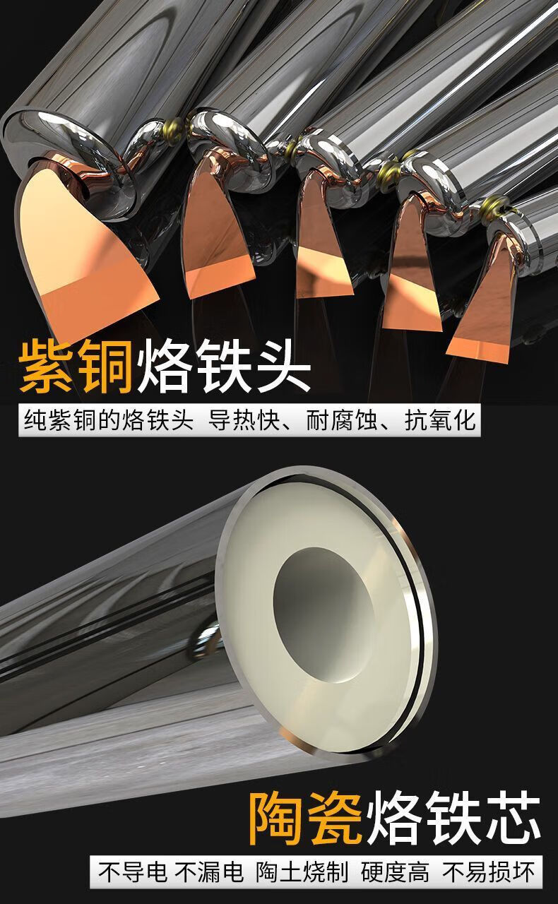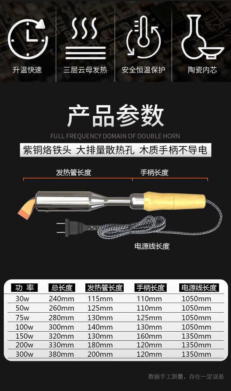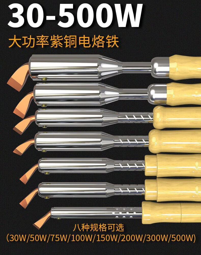 Yanran electric soldering iron household high-power wooden handle soldering gun chromium iron Luotie copper head fast heat conduction and corrosion resistance 300W high-power wooden handle electric soldering iron