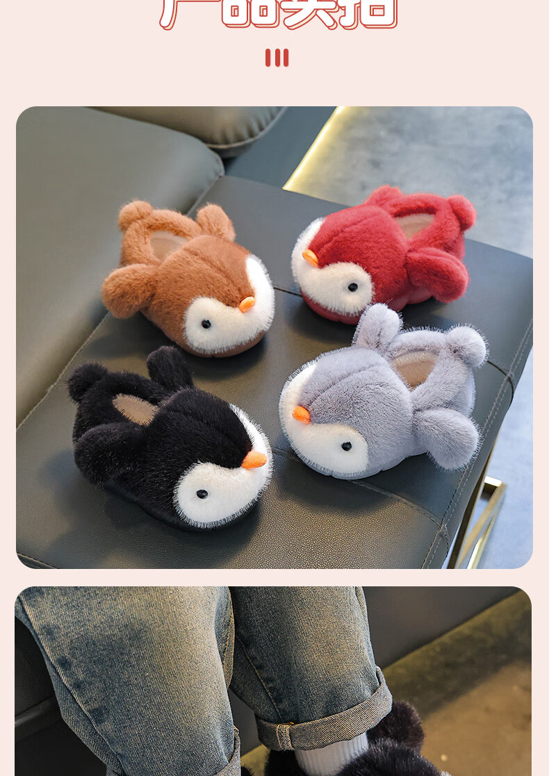 Children's cotton slippers, boy's winter cartoon cute non-slip indoor bathing soft-soled baby penguin slippers, brown (heel included) 12 30/31 size (shoe inner length 18CM, suitable for feet 17