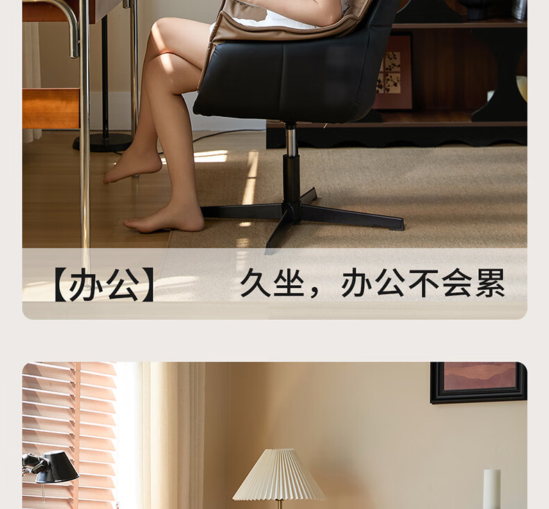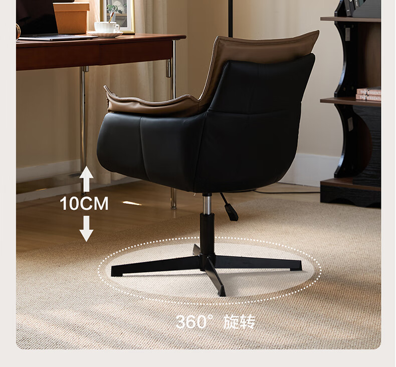 Sophia Computer Chair Study Office Chair Cosmetic Chair Light Luxury High-end Desk Chair Lift Learning Dressing Stool A021 Black Brown Contrast Color丨Spot Sparkling