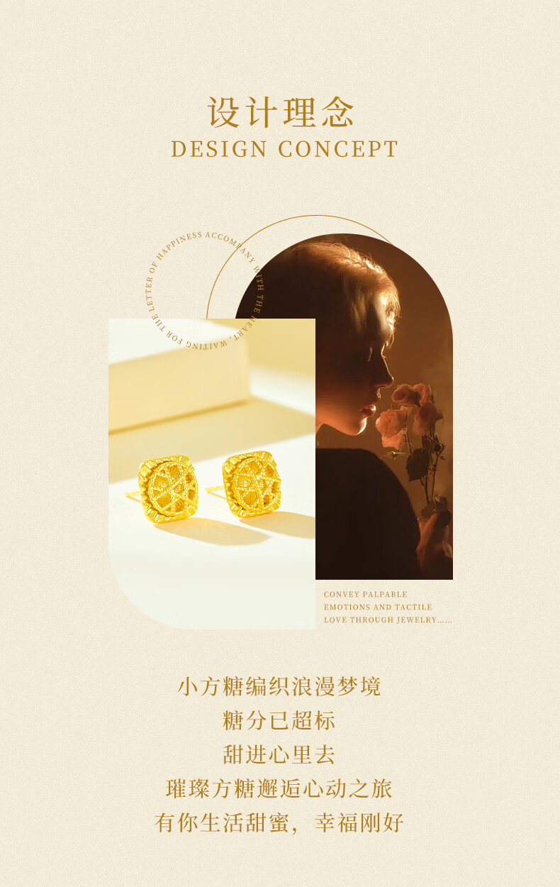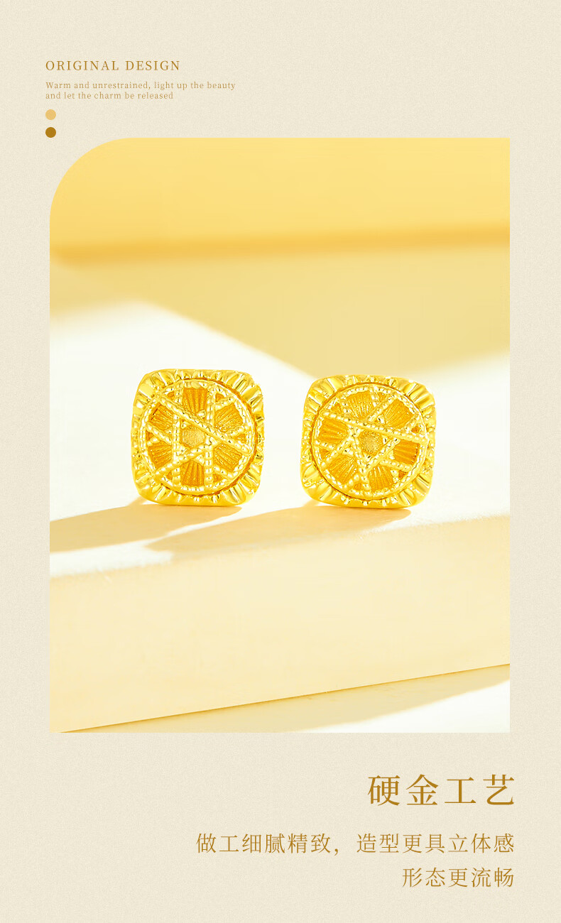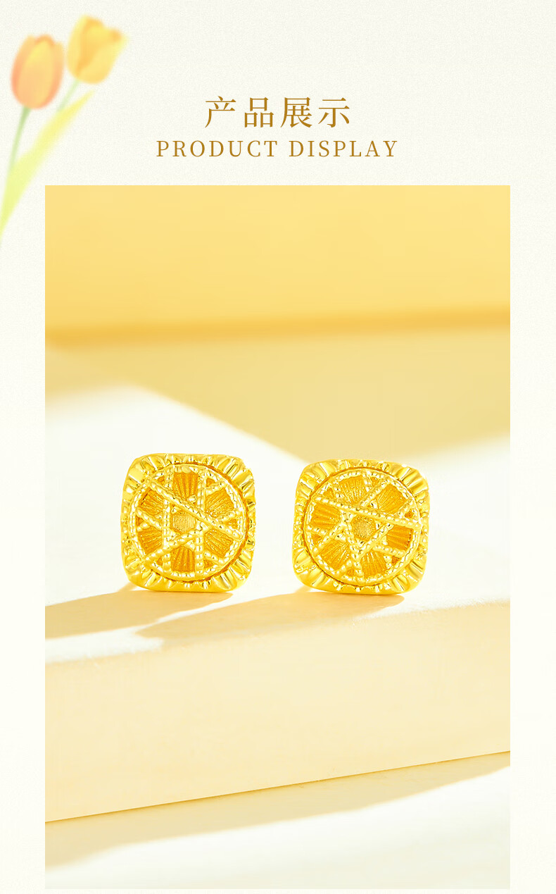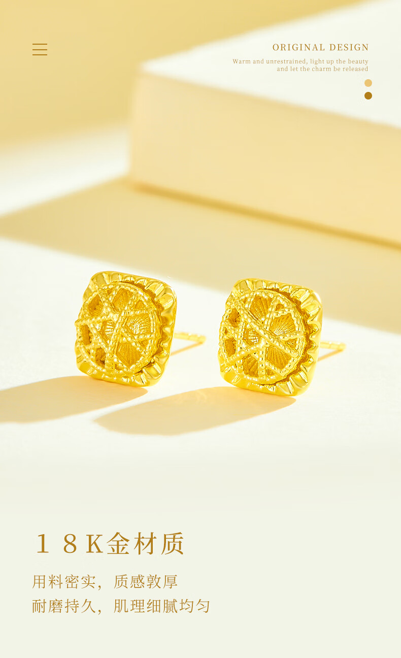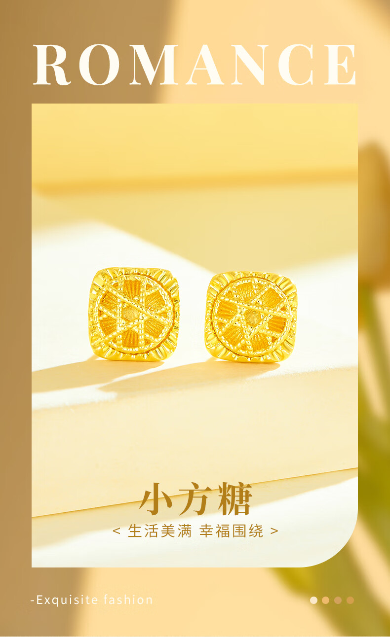 CHINA GOLD 18K gold sugar cube earrings for women, straight needle type for pierced ears, Valentine's Day birthday gift for girlfriend and wife 18K gold sugar cube earrings, one pair, about 0.45g