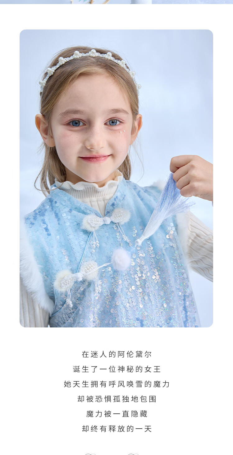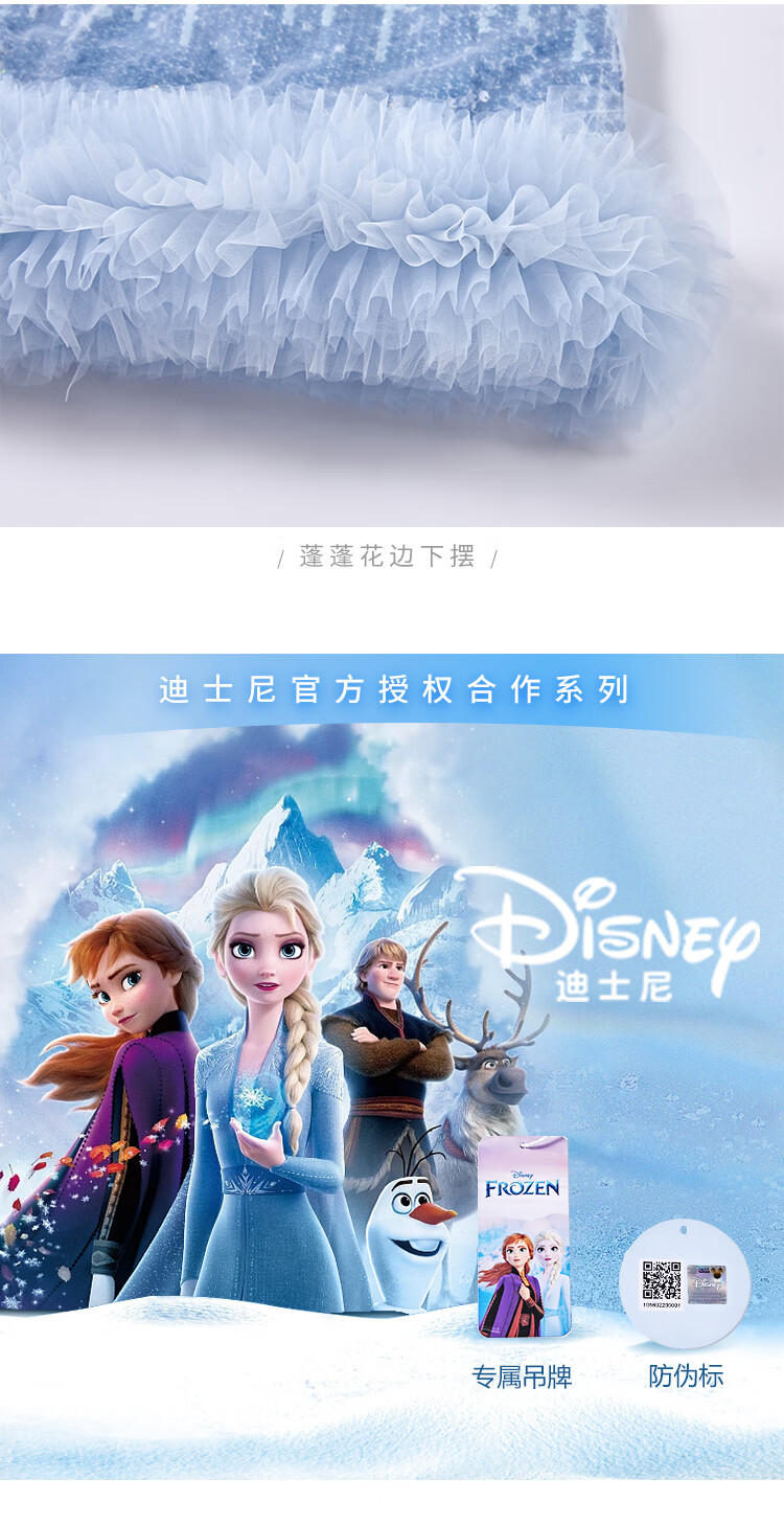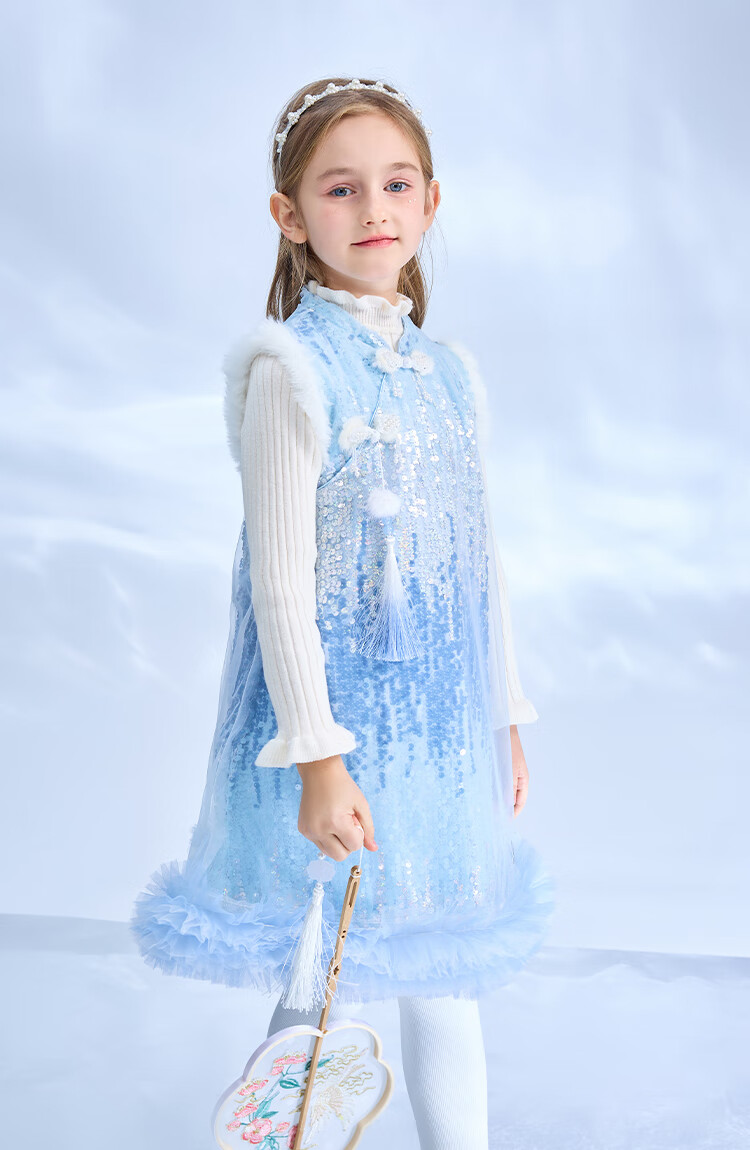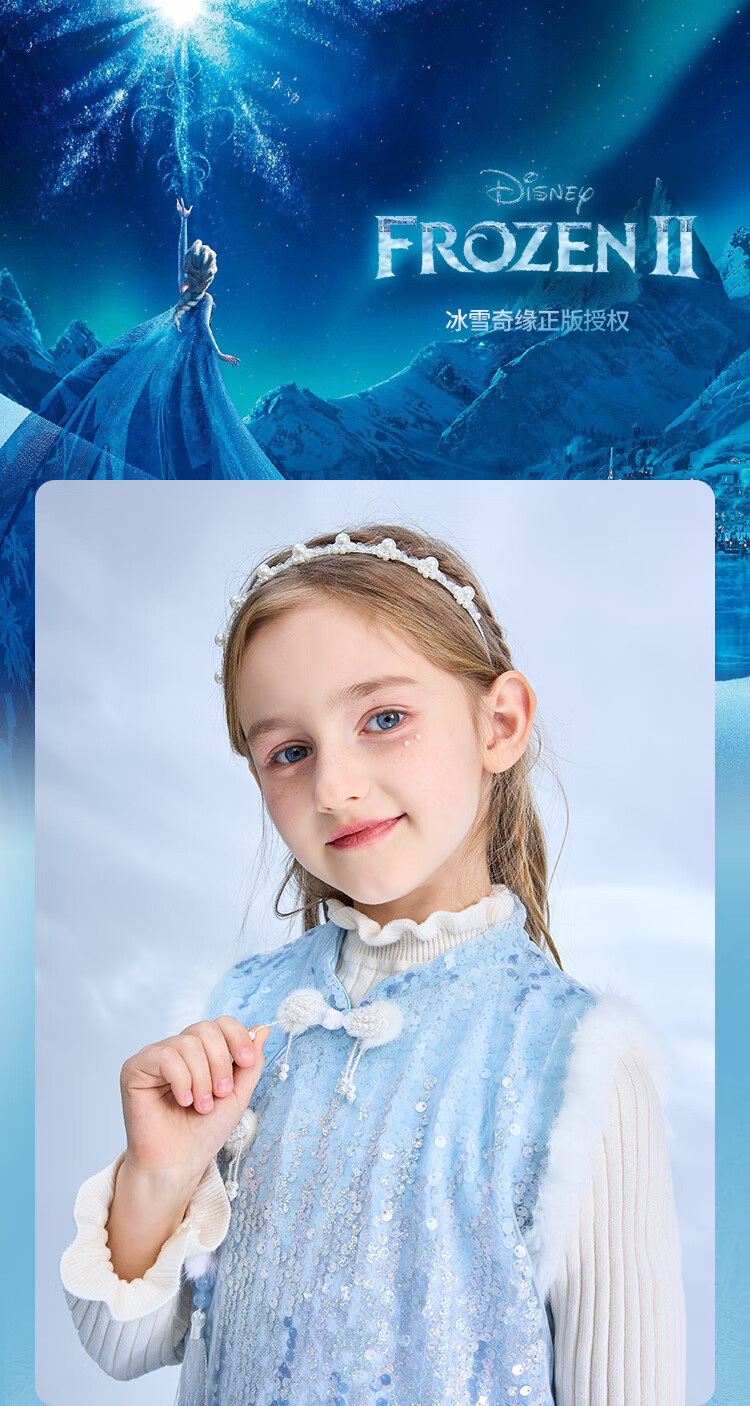 Disney Frozen Elsa Girls Autumn and Winter New Children's Clothes Sleeveless Style Warm Dress Blue One Size 150cm