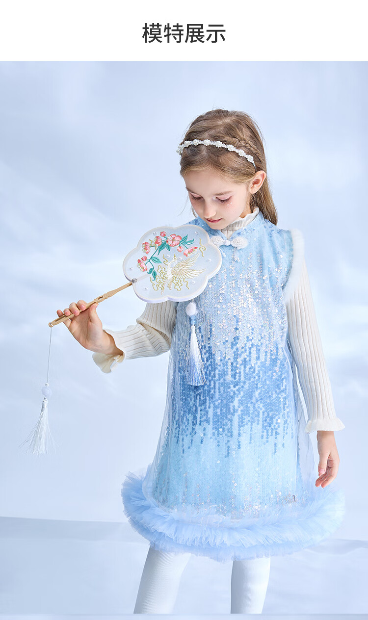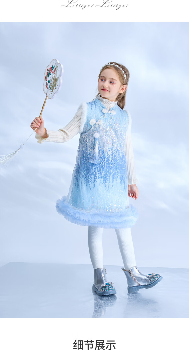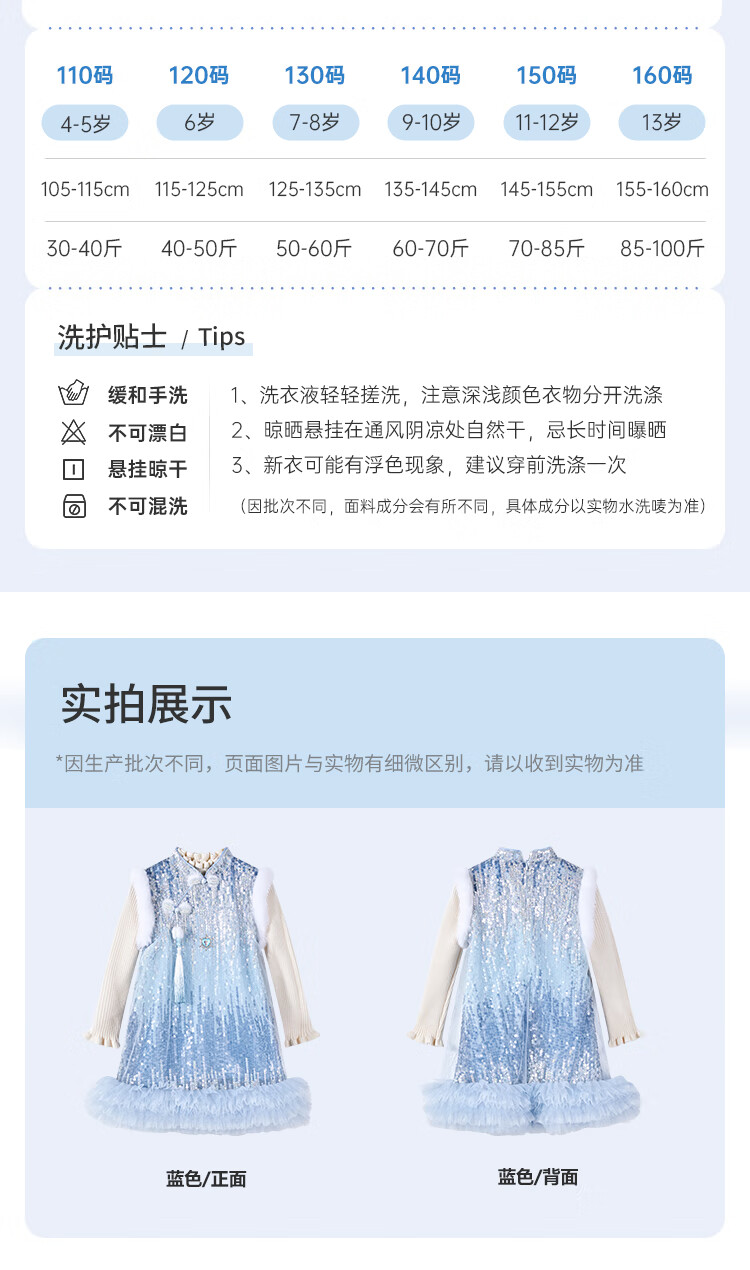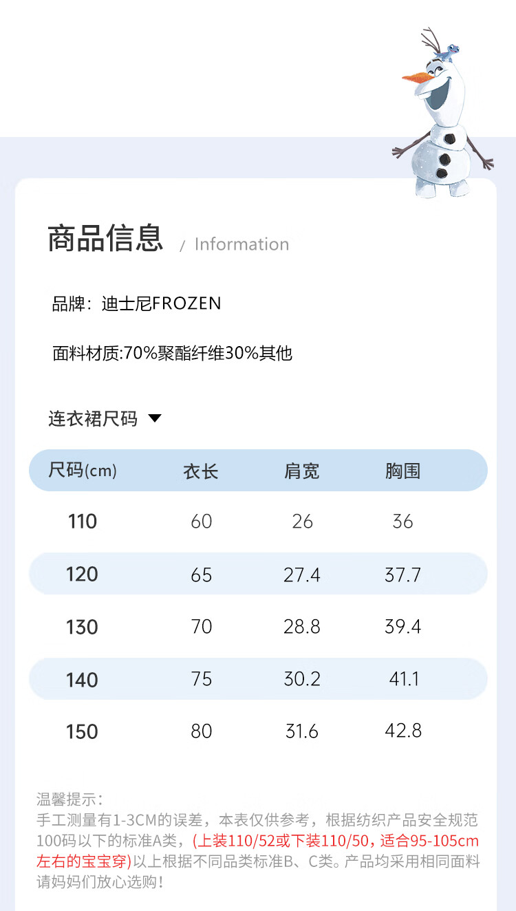 Disney Frozen Elsa Girls Autumn and Winter New Children's Clothes Sleeveless Style Warm Dress Blue One Size 150cm
