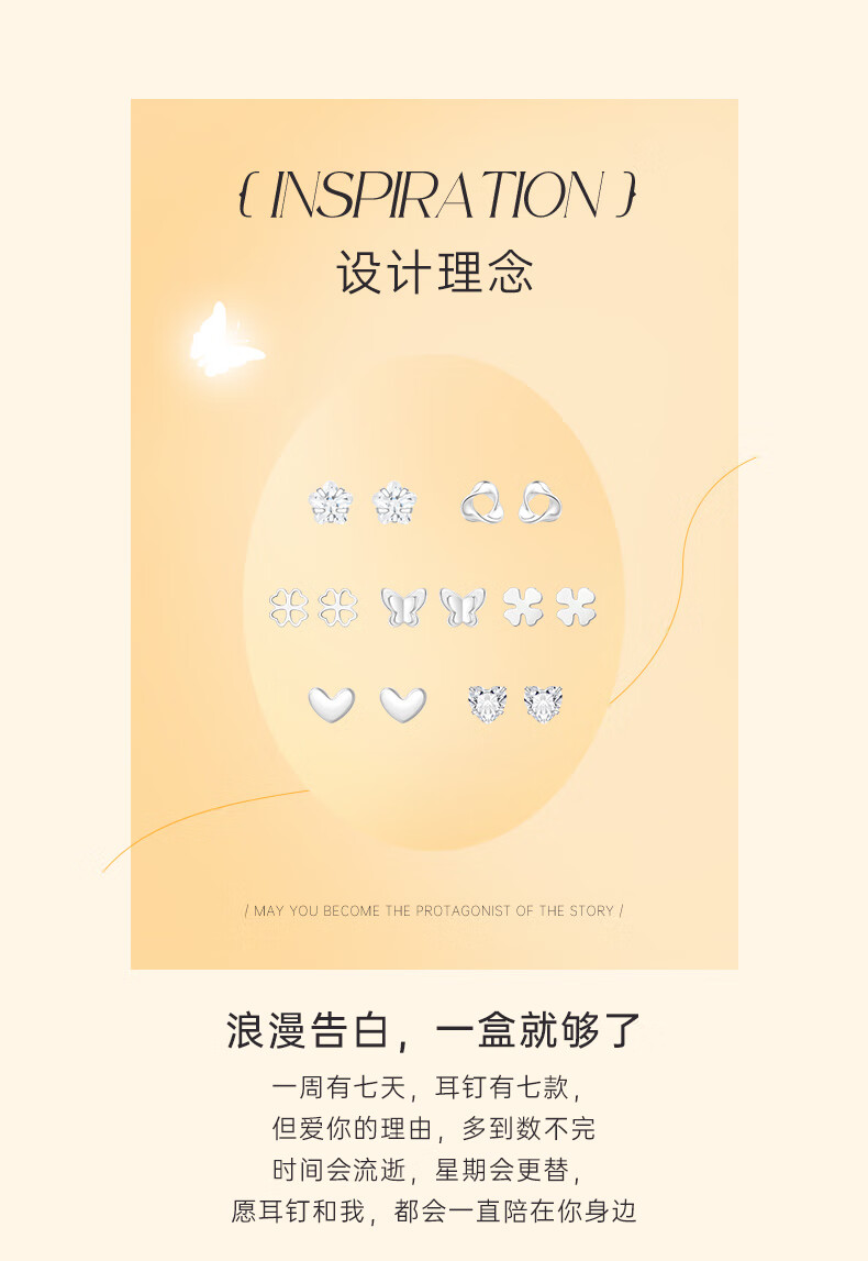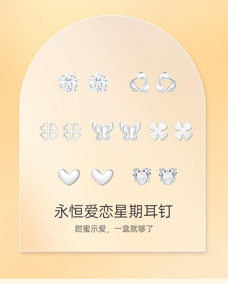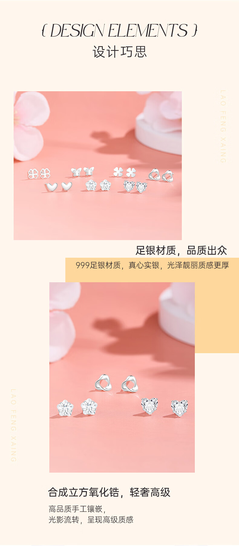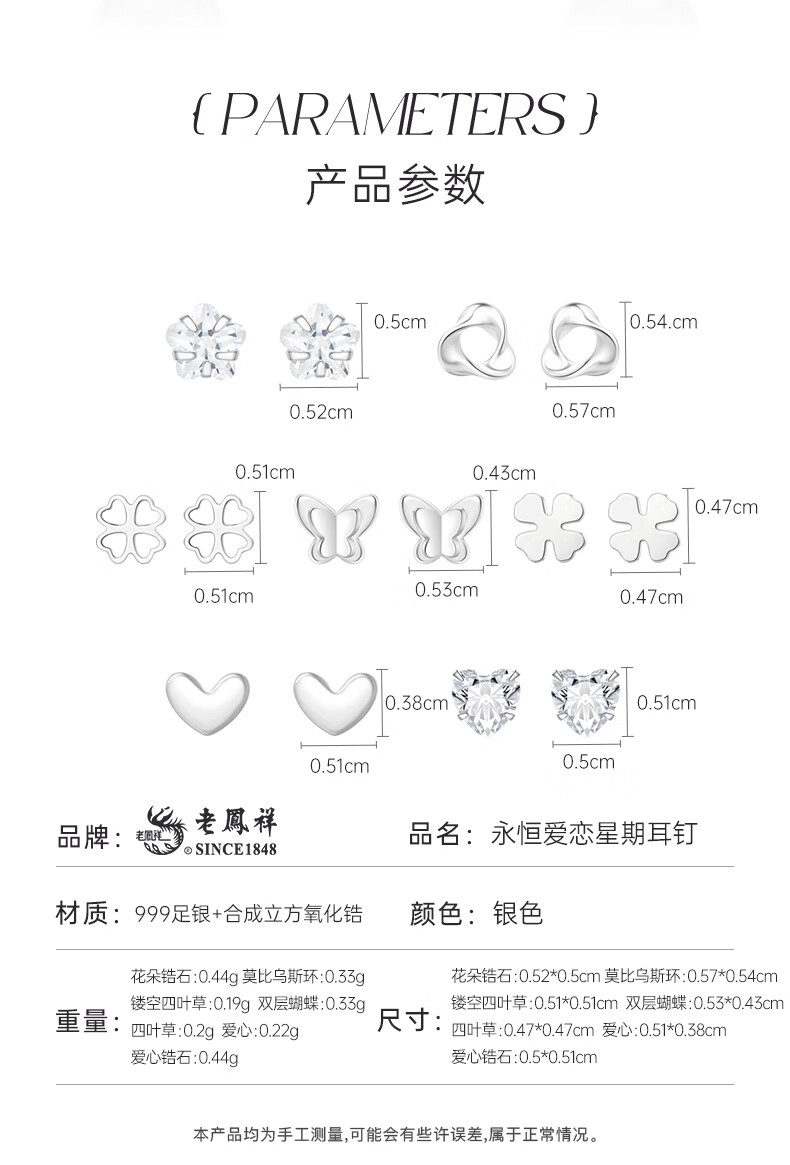 Lao Fengxiang S999 Pure Silver Weekly Earrings for Women Rose Gift Box Set Ear Jewelry Birthday Anniversary Gift for Girlfriend and Wife Eternal Love Weekly Earrings