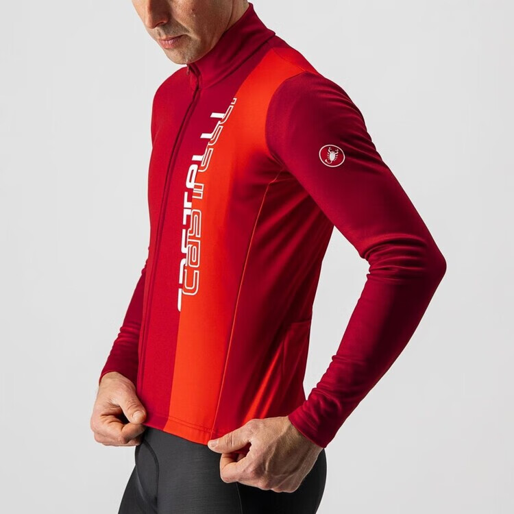 Castelli scorpion new winter velvet cycling jersey stand-collar long-sleeved cycling jersey competitive cycling top men's red cold-resistant plus velvet long-sleeved XL