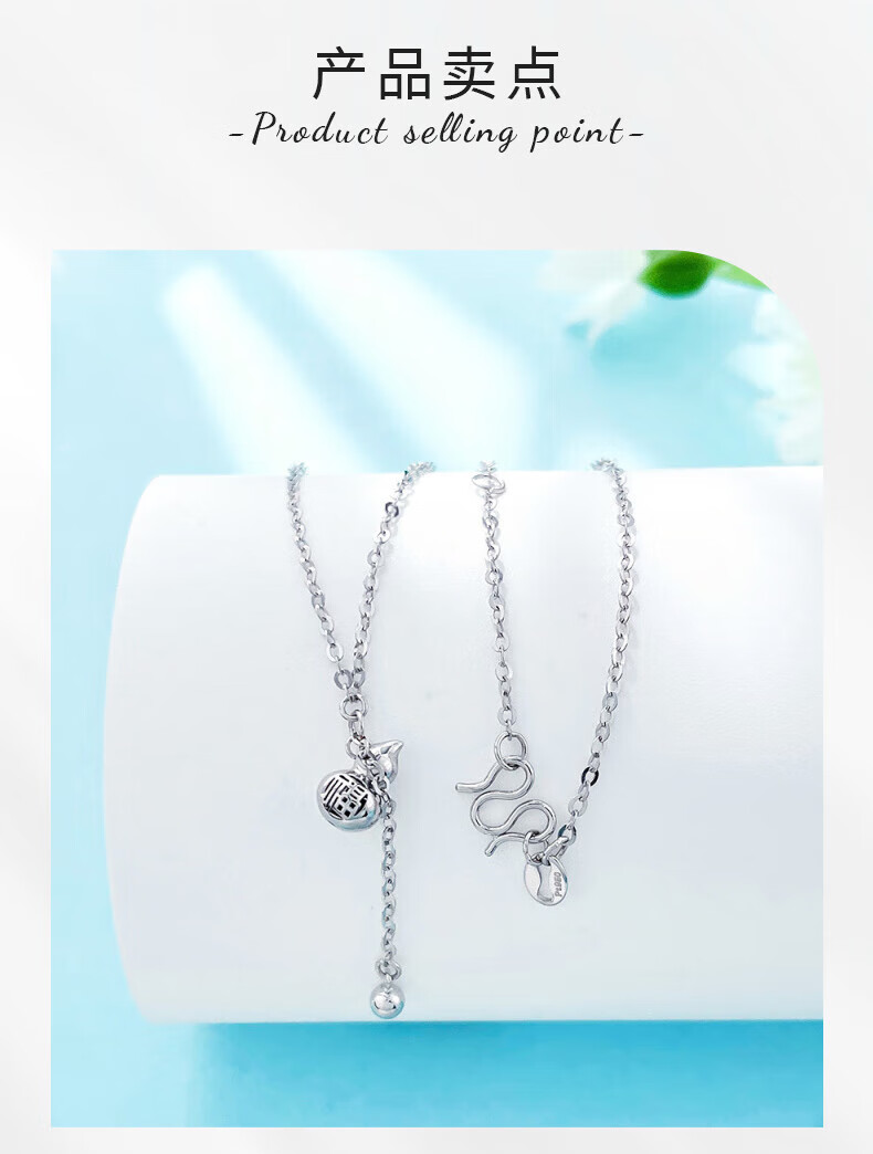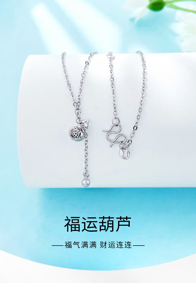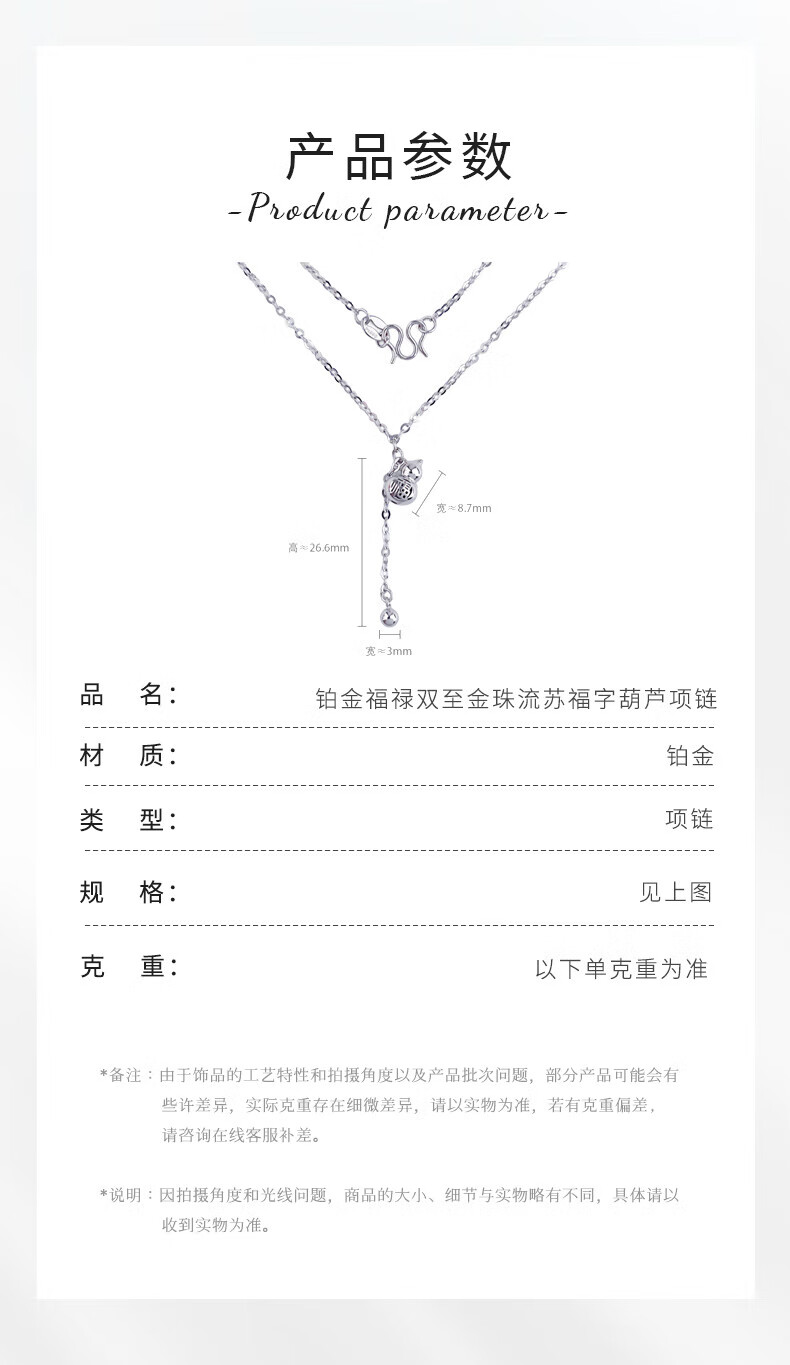Beijing Gold Trading Center Co., Ltd. Platinum hollow adjustable Fulu double to gold bead tassel Fu word gourd set chain about 3.93g