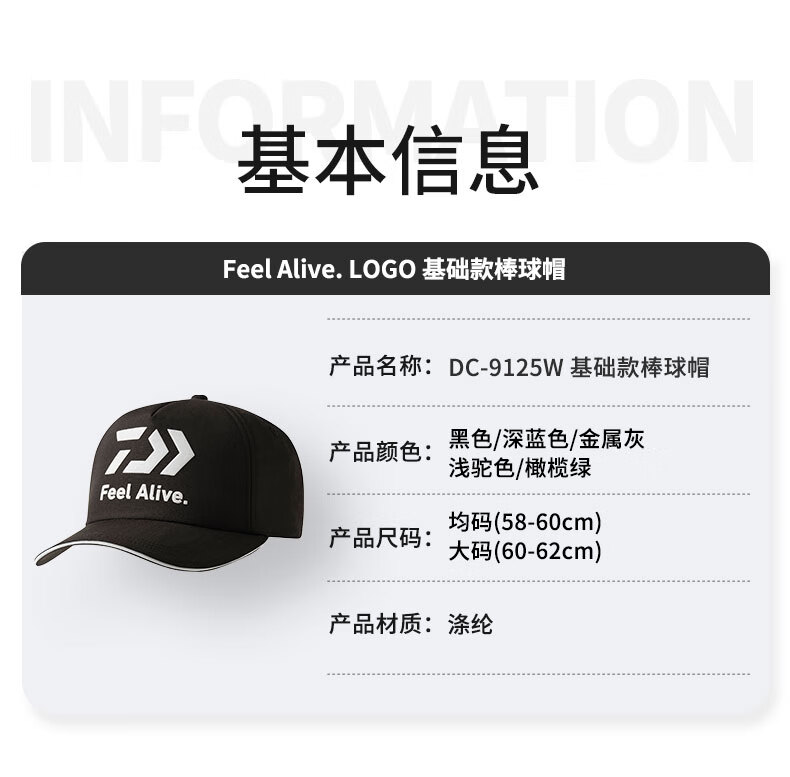 DAIWA 25 autumn and winter DC-9125W sun protection fishing hat outdoor leisure sun hat plus size hat black one size