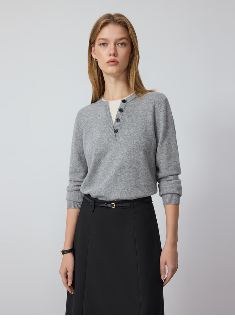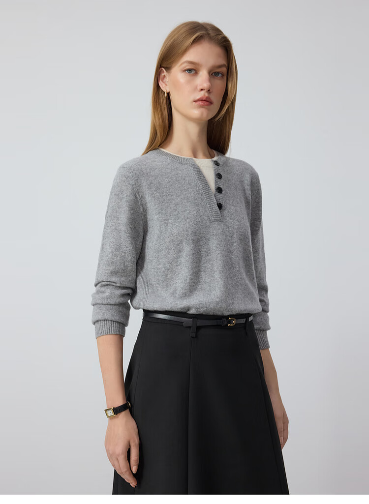 PRICH Fashionable Round Neck Fake Two-Piece Knitted Sweater 2025 Autumn Temperament Commuting Top Women Light Gray 155