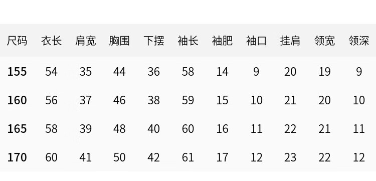 China (cm) 160-165/84-86 165-170 / 88-90 167-172 / 92-96 168-173 / 98-102 170-176 / 106-110