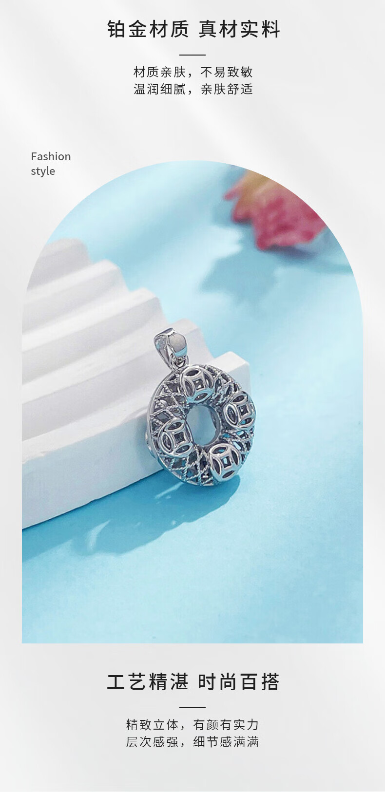 Beijing Gold Trading Center Co., Ltd. platinum pendant pt950 Fulu Ping An copper coin pattern gold wire Ping An buckle pendant free about 2.7g