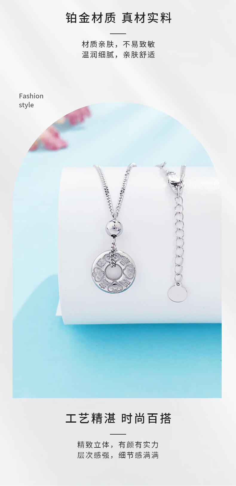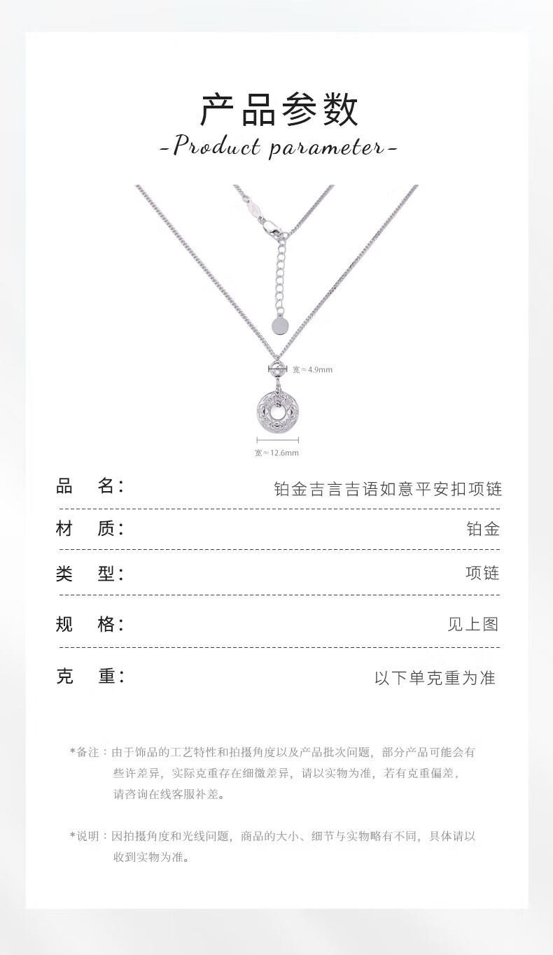 Beijing Gold Trading Center Co., Ltd. Platinum solid adjustable buckle set chain with auspicious words, good luck and peace, about 8.53g