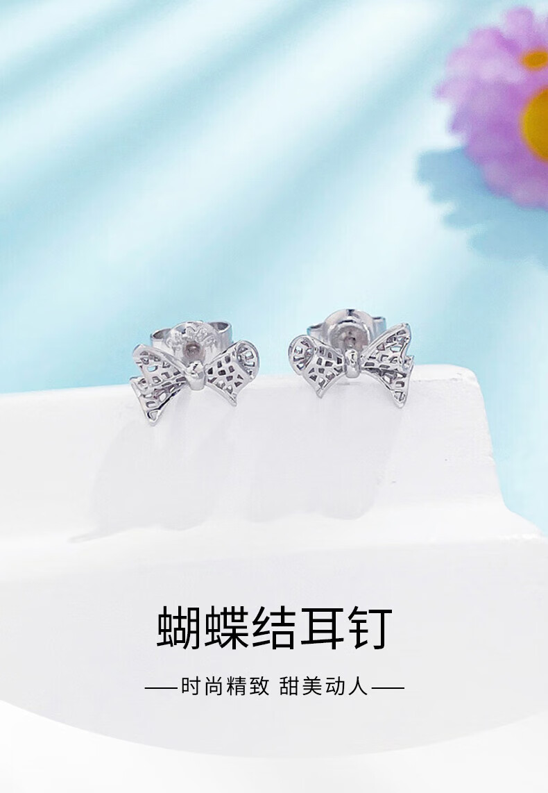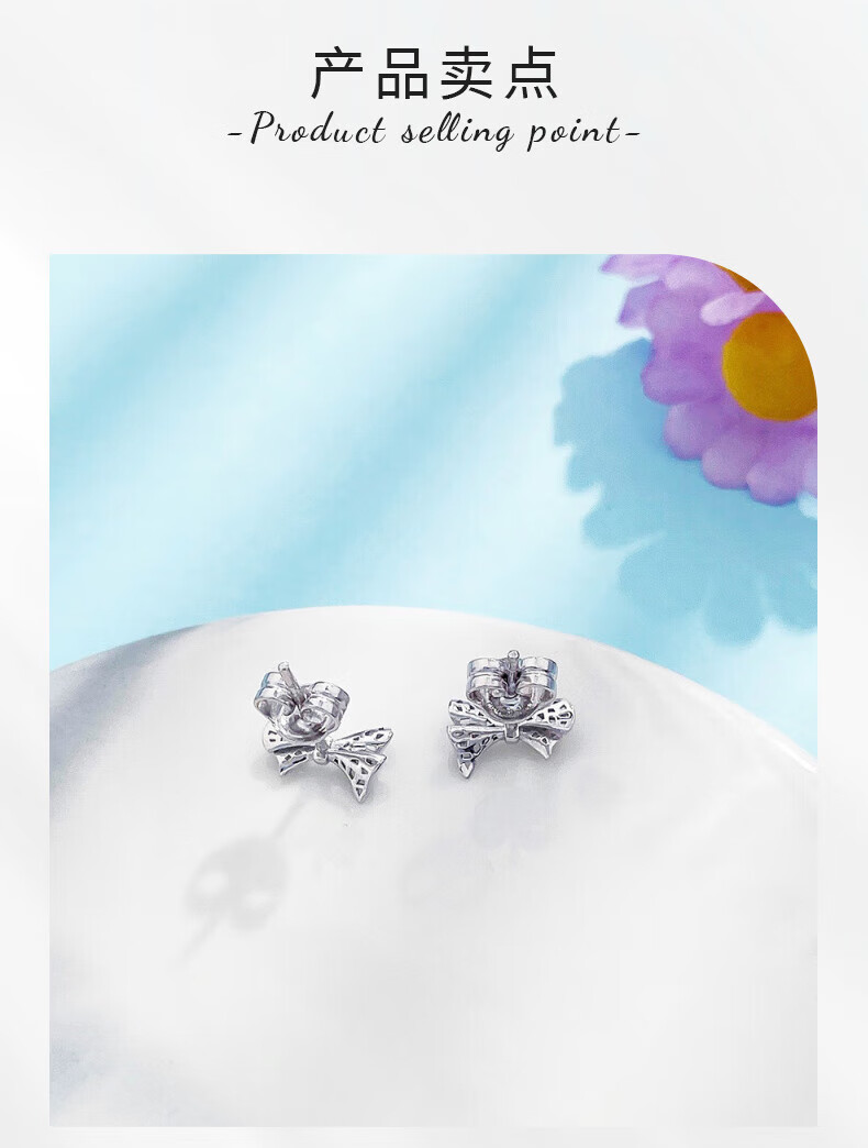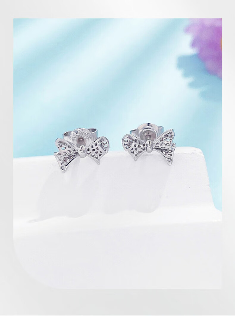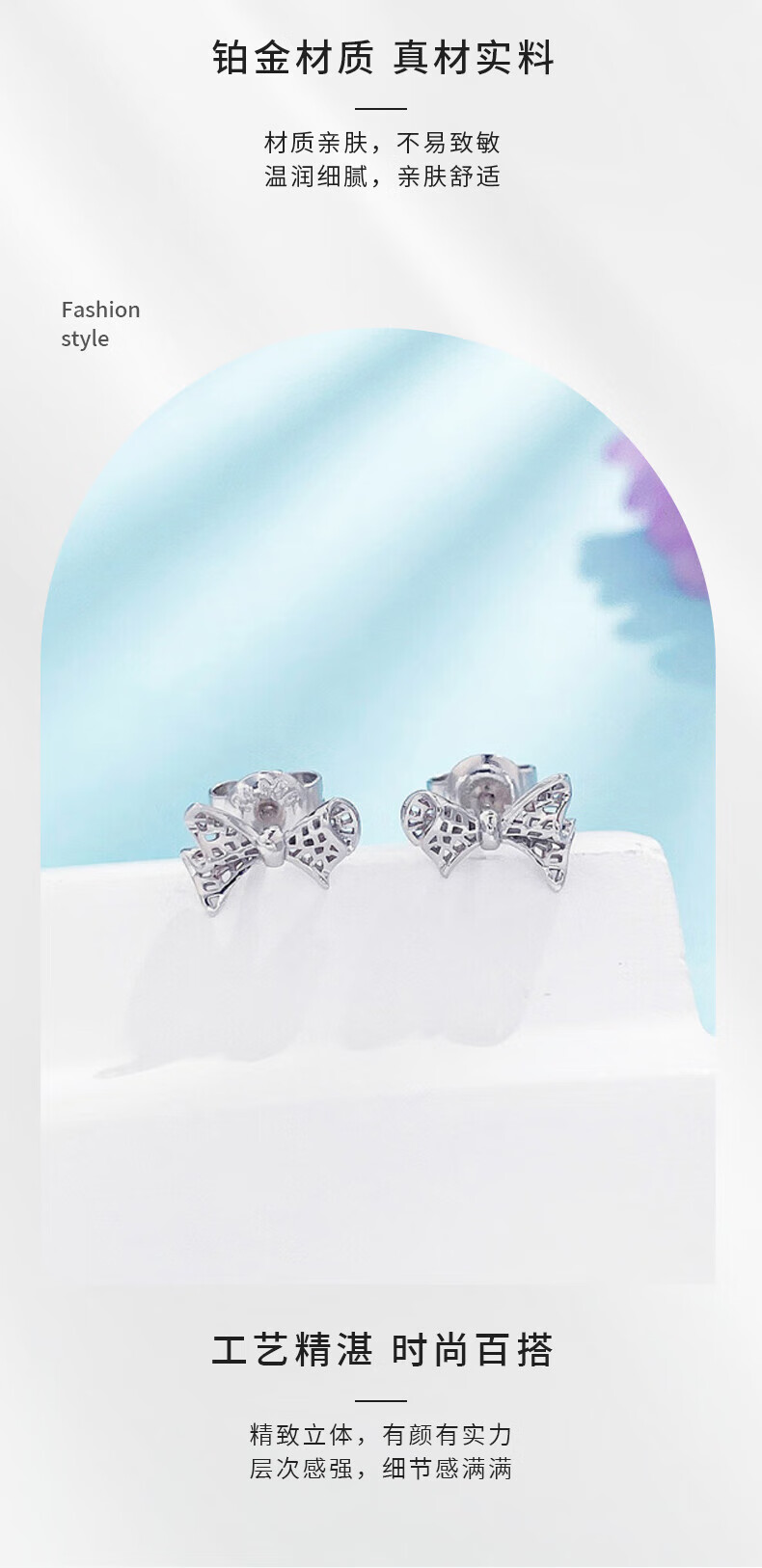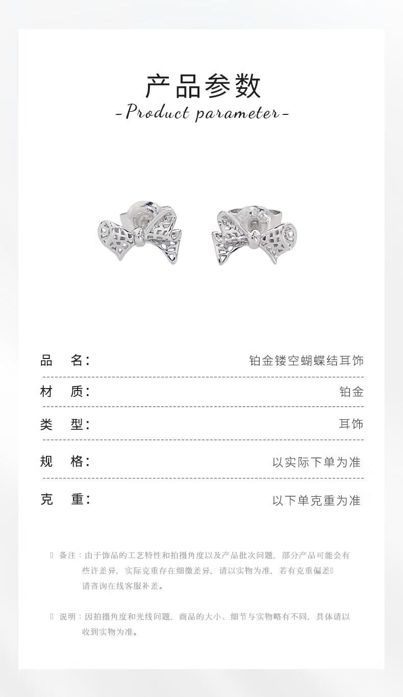 Beijing Gold Trading Center Co., Ltd. PT950 platinum earrings, clover straight needle earrings, hollow bow, hollow heart, about 1.7g/platinum clover straight needle earrings