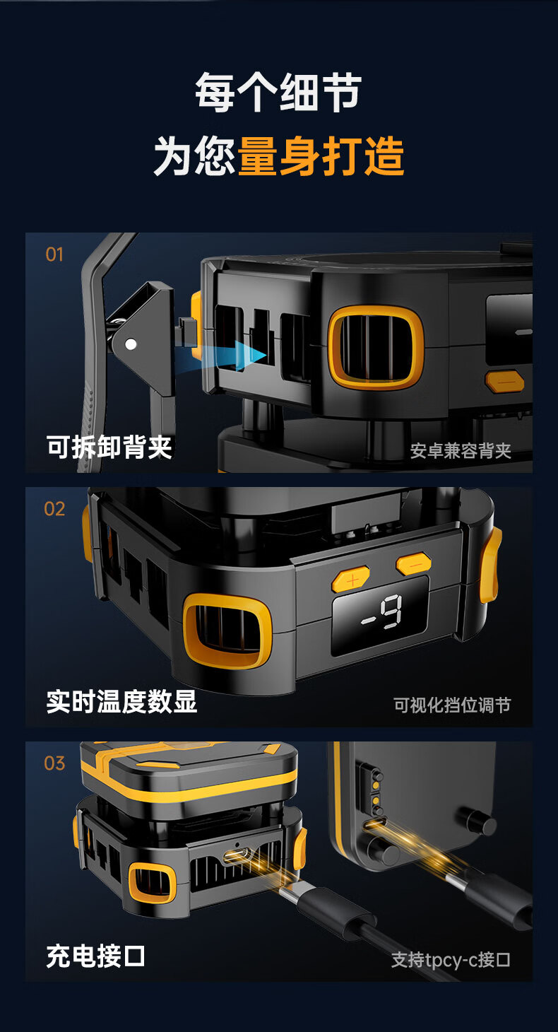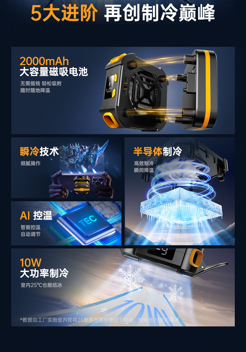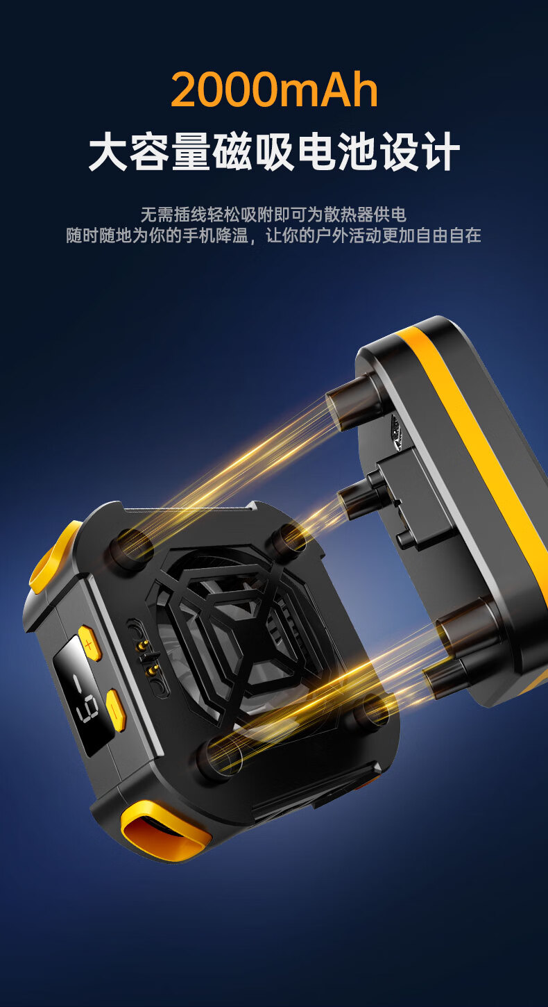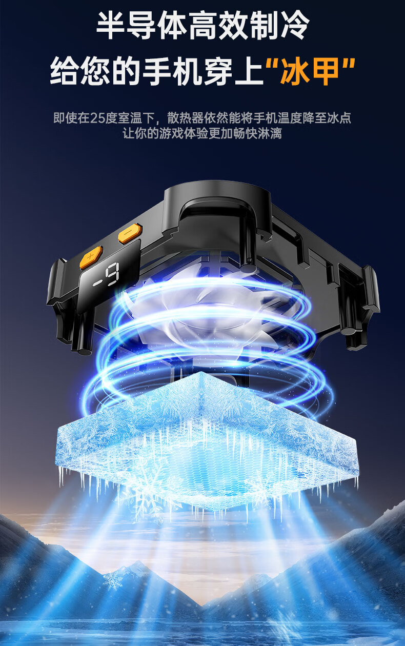 No plug-in battery model, mobile phone radiator JGOZZ magnetic digital display semiconductor refrigeration cooling AI temperature control freezing e-sports live broadcast suitable for Huawei Apple Xiaomi P70 magnetic digital display battery model with a battery + clip + finger cot