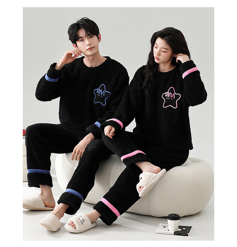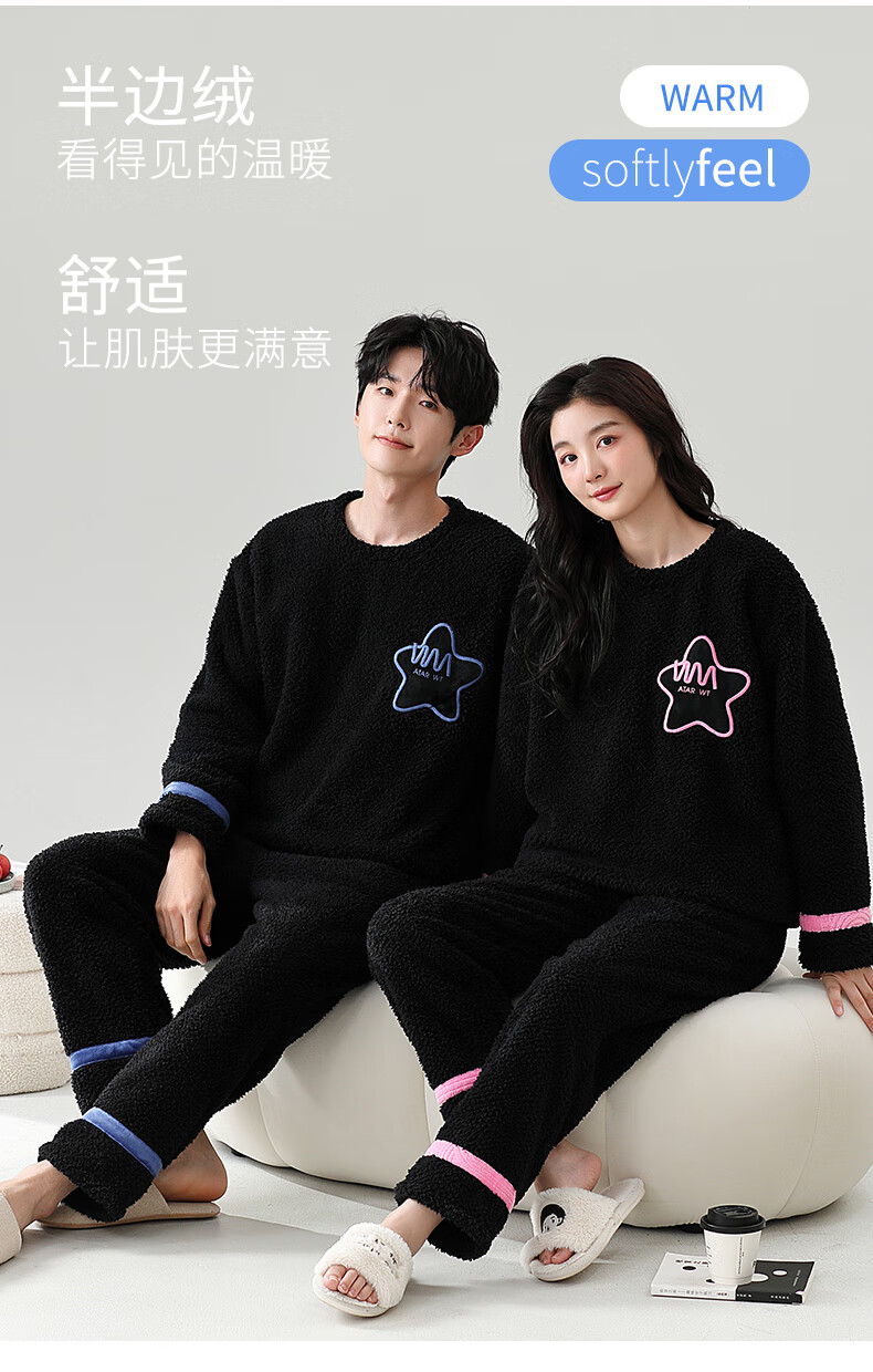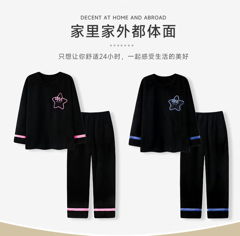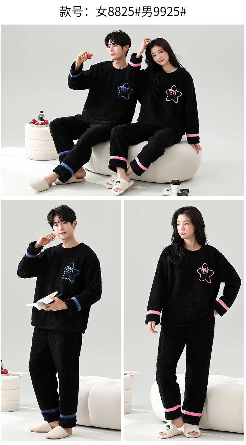 Dingguagua winter half velvet couple sweet casual plus velvet thickened warm pajamas home clothes set can be worn outside STS 8824# Female L Recommended 100-120Jin Jin equals 0.5 kg