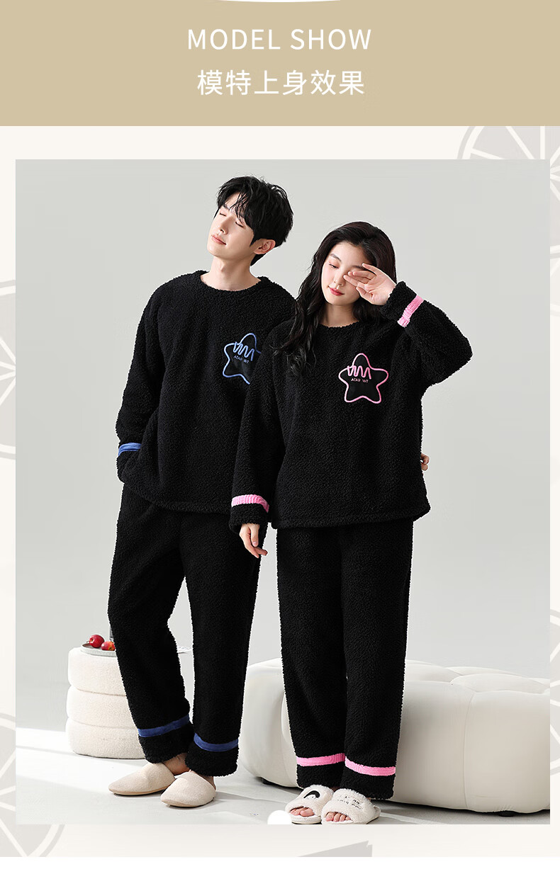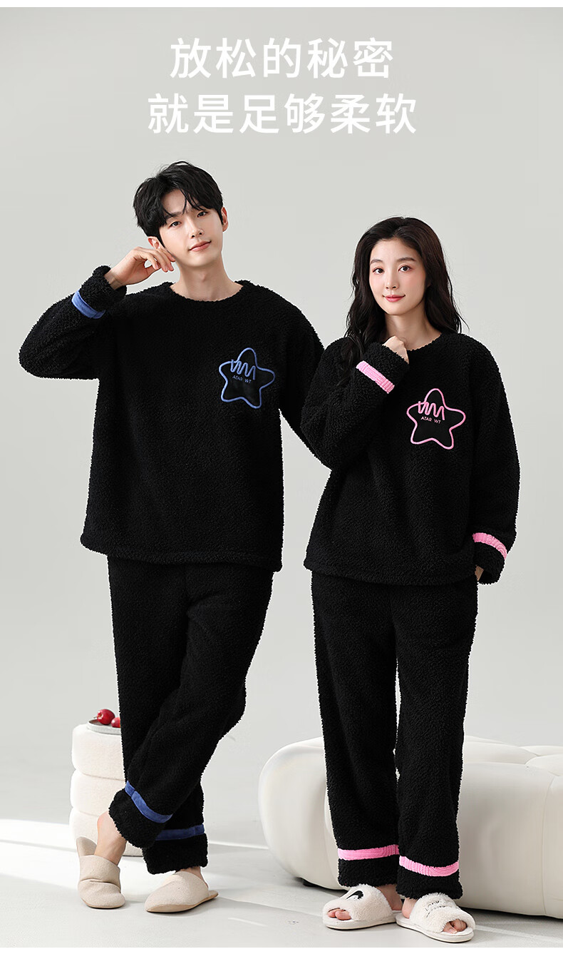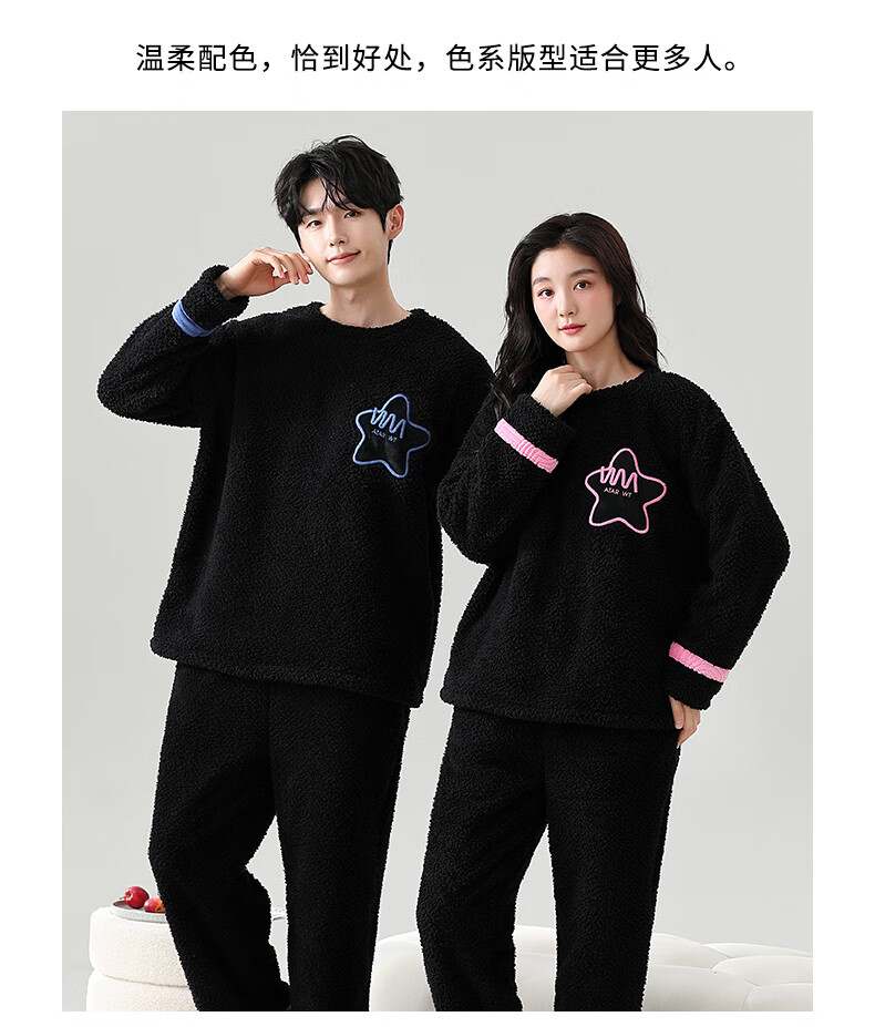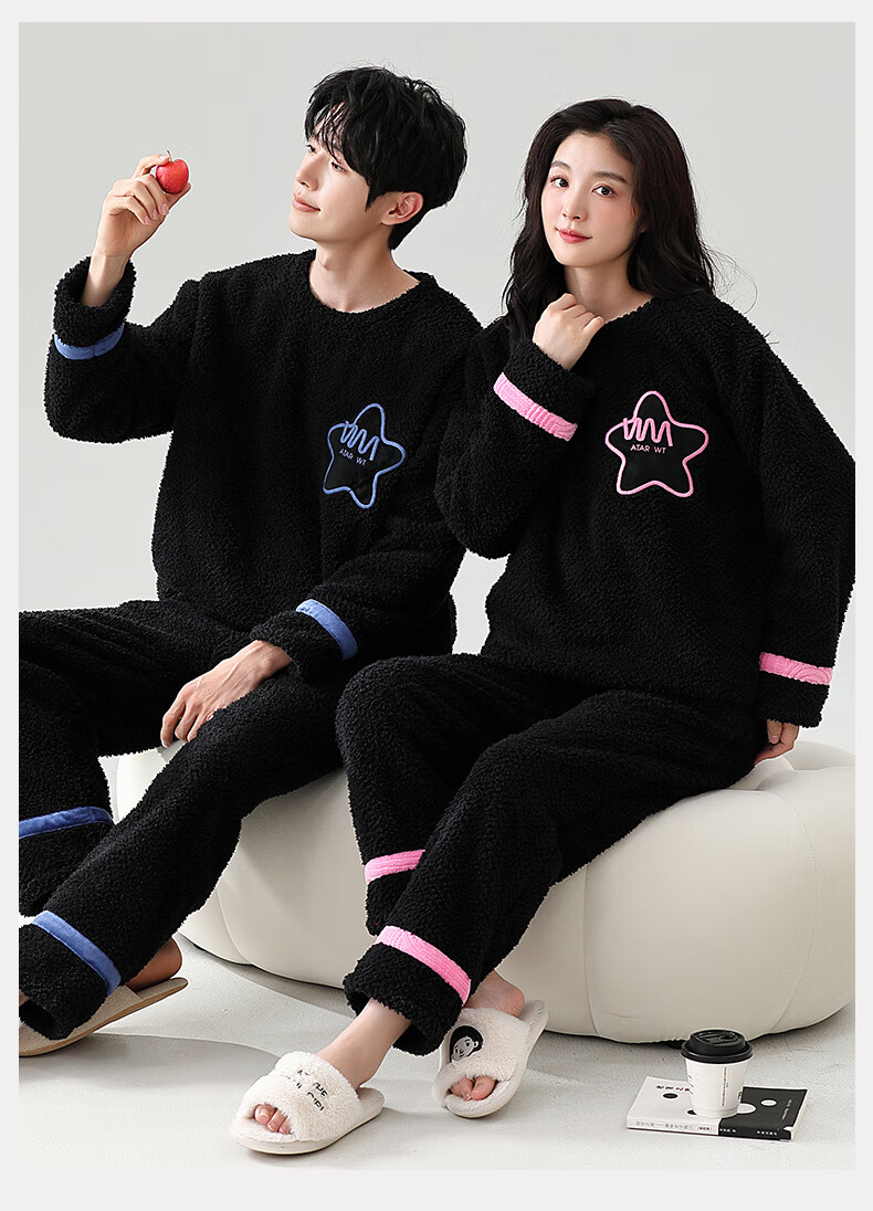 Dingguagua winter half velvet couple sweet casual plus velvet thickened warm pajamas home clothes set can be worn outside STS 8824# Female L Recommended 100-120Jin Jin equals 0.5 kg