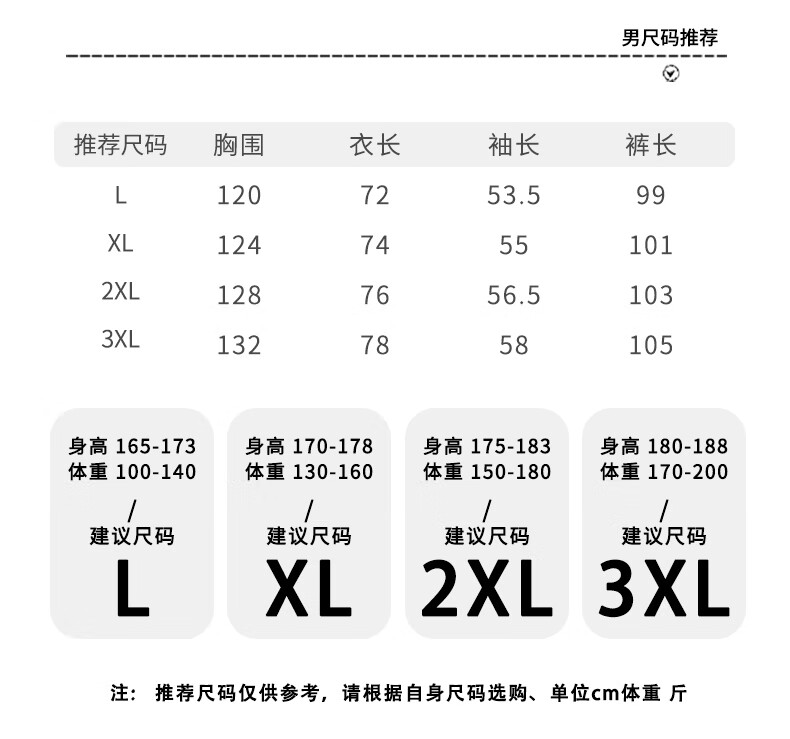 China (cm) 165 / 88-90 170 / 96-98 175 / 108-110 180 / 118-122 185 / 126-130
