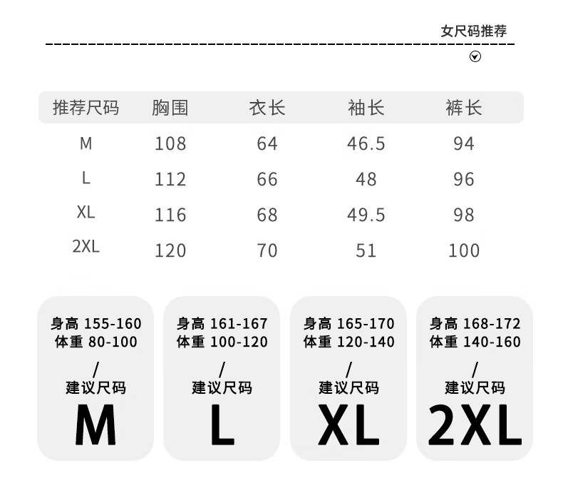 China (cm) 160-165/84-86 165-170 / 88-90 167-172 / 92-96 168-173 / 98-102 170-176 / 106-110