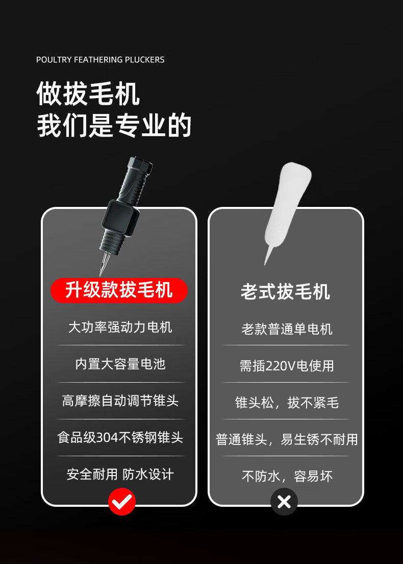 Jingyan Feathering Magic Chicken, Duck and Goose Electric Powerful Feathering Device Poultry Plucking and Hair Removal Machine Household Commercial Automatic Feathering Machine Dual Motors + Dual Batteries Rechargeable and Plug-in No Harm to Skin丨Waterproof Body丨Free Trial