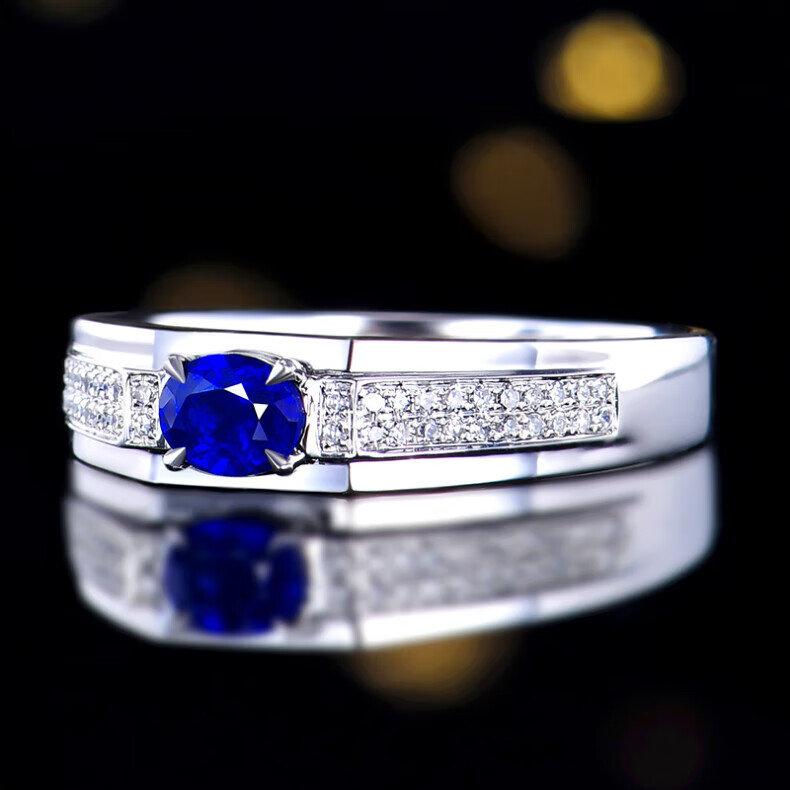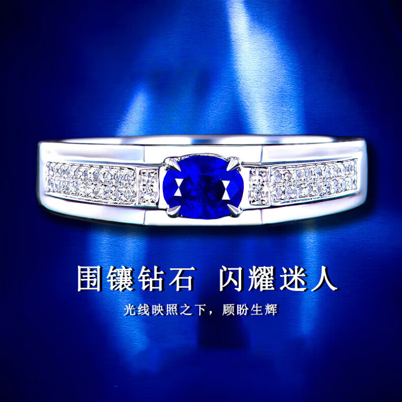 HEEKAIYI Sapphire Ring for Men Royal Blue 18K Gold Diamond Ring Chinese Valentine's Day Birthday Gift for Husband and Boyfriend Selected Sapphire Ring for Men 0.53 carat 18K Gold Inlaid