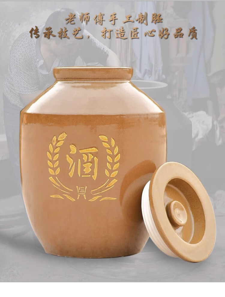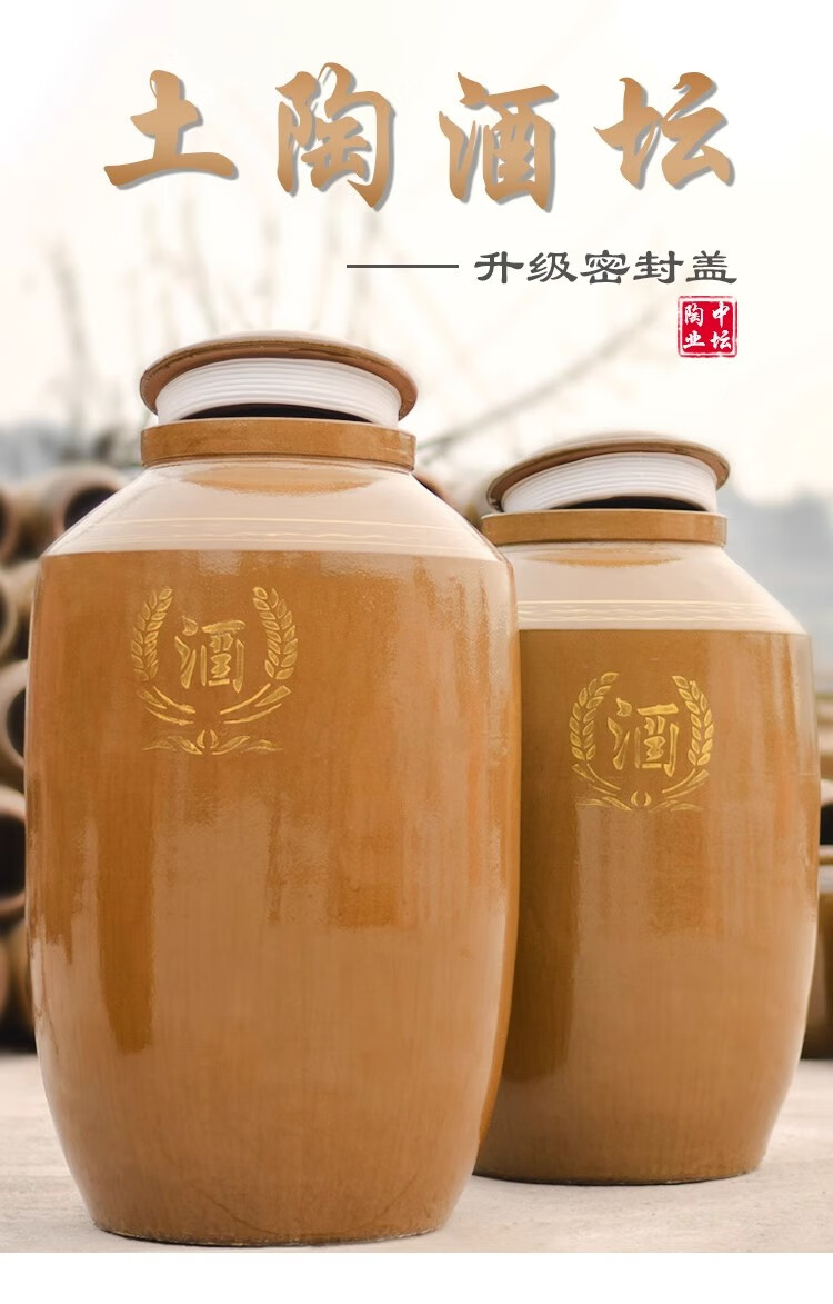 Wine jar wine jar ceramic household sealed wine storage wine jar old-fashioned clay pottery sealed jar cellar wine jar 50Jin Jin equals 0.5kg sealed cover thickened