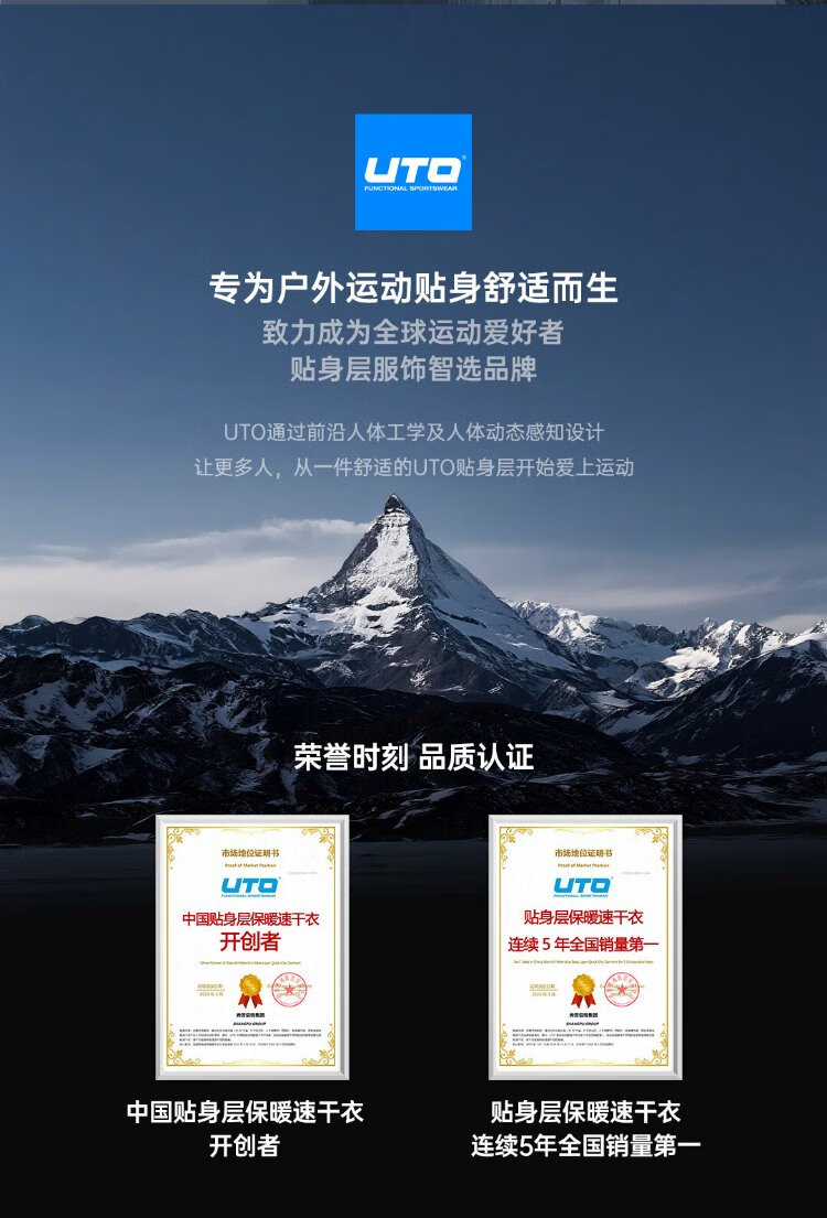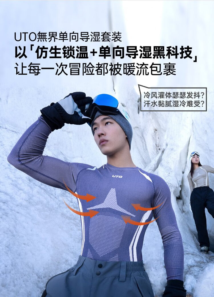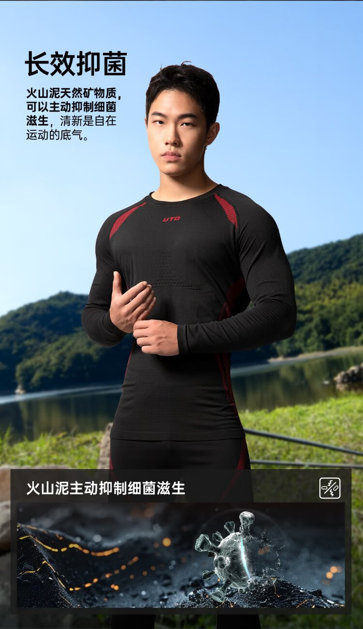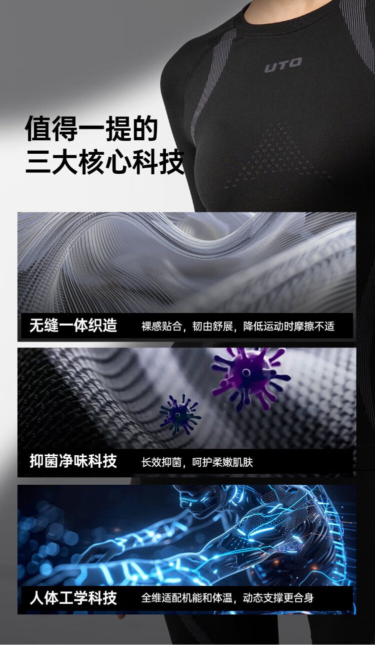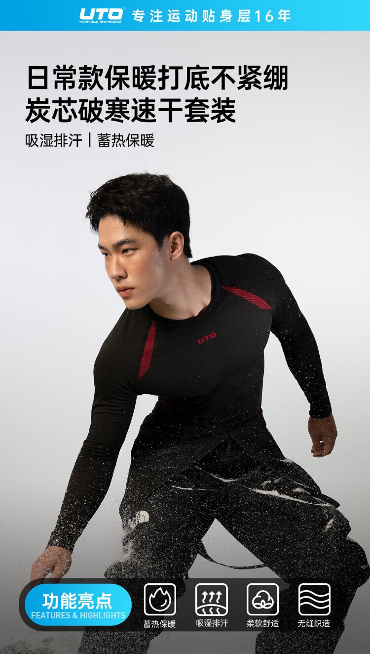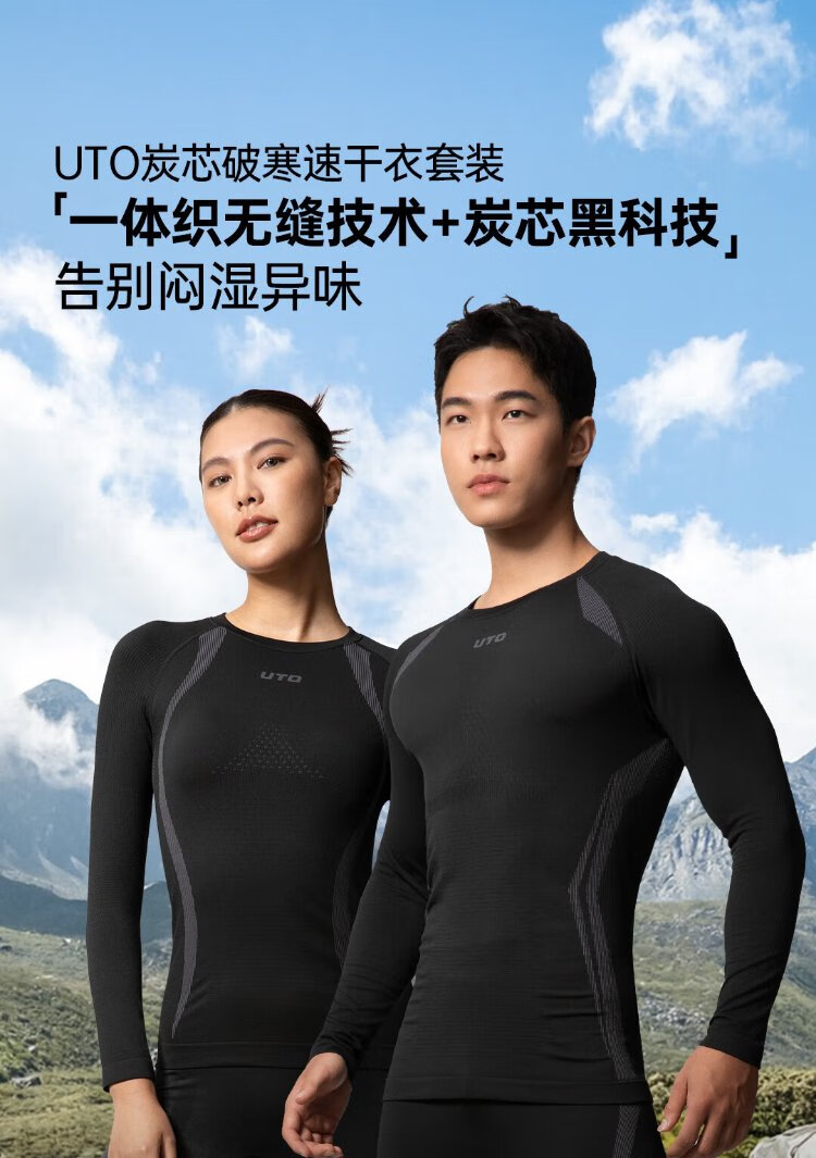 UTO quick-drying clothing suit for men and women, outdoor daily running, skiing and mountaineering sports thermal underwear, new autumn and winter products (daily commuting style), classic black, male XL