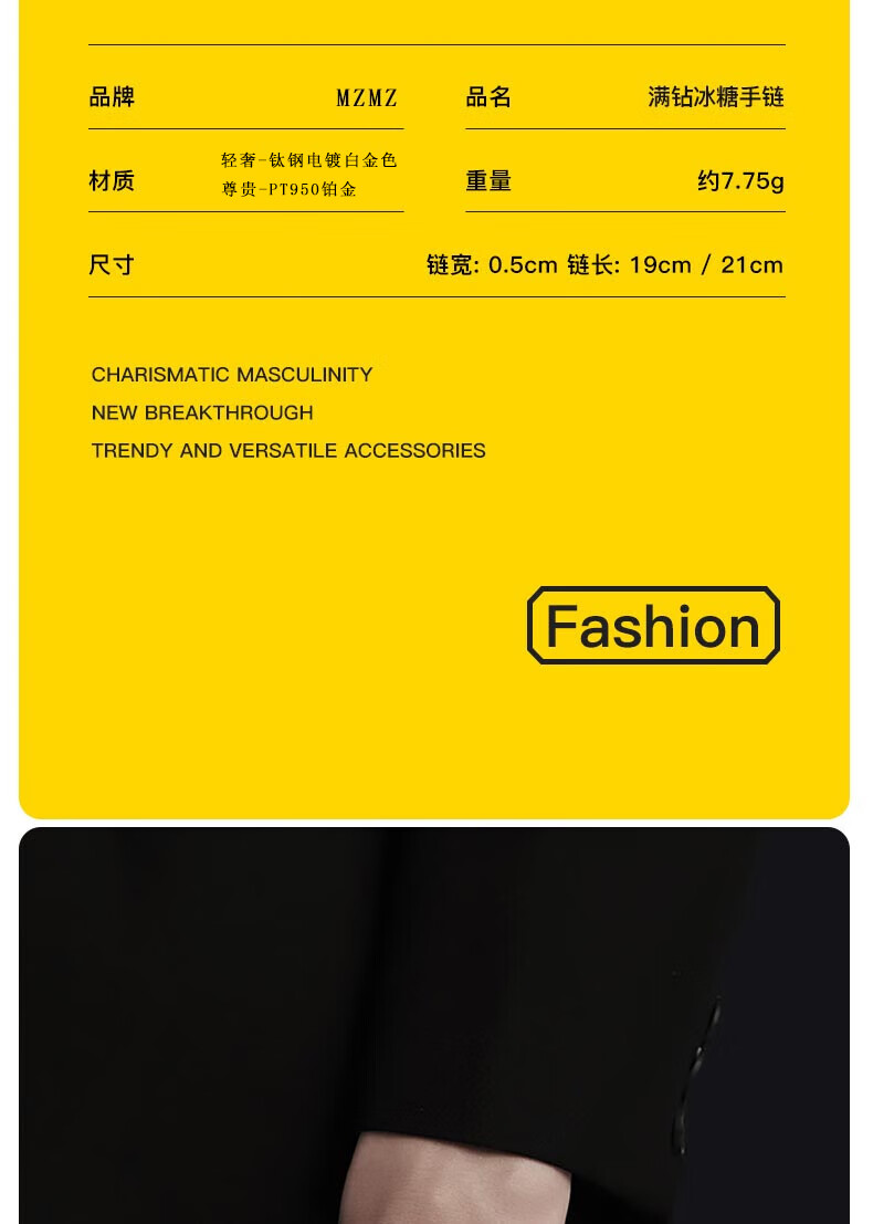 MZMZ platinum bracelet for men pt950 platinum decorative trendy accessories hand jewelry Valentine's Day birthday gift for boyfriend and husband when/next day delivery - light luxury white gold rock candy bracelet