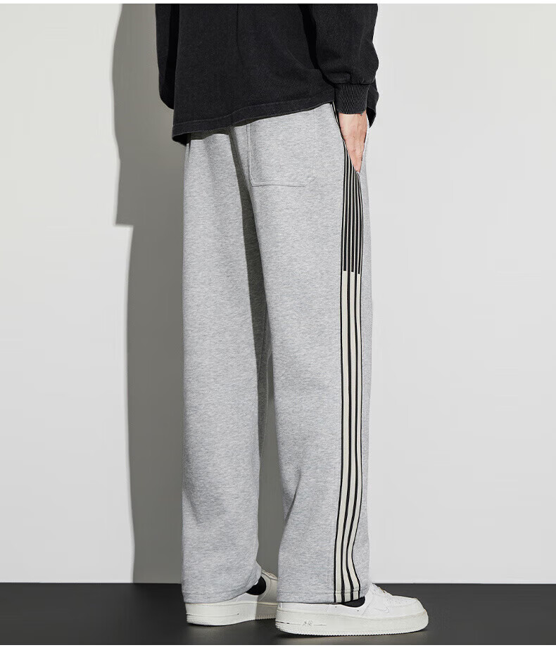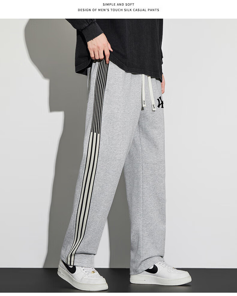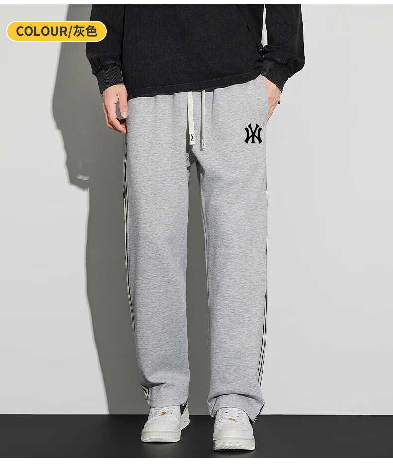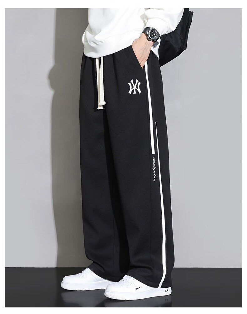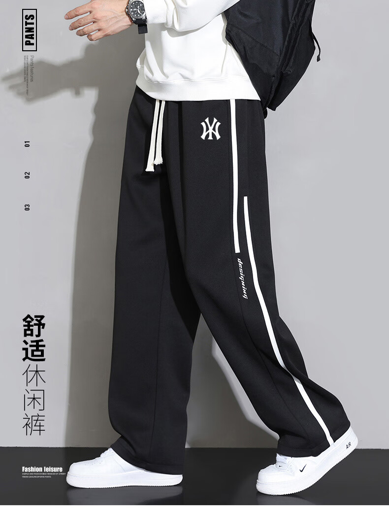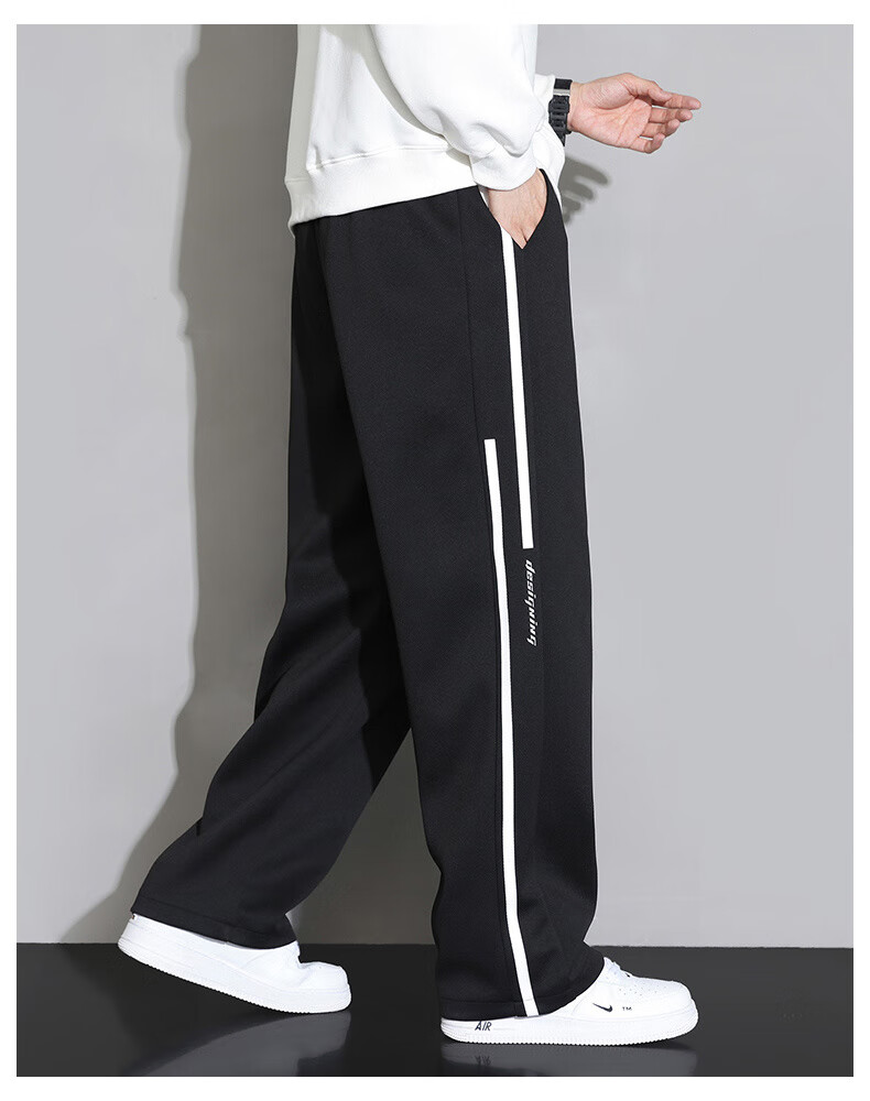 C.MATK Casual Pants Men's Autumn New Fashion Brand Loose Straight Running Sports Pants Men's Winter Velvet Men's Pants Black-B Regular XL