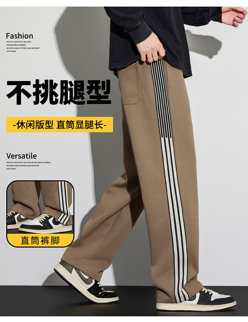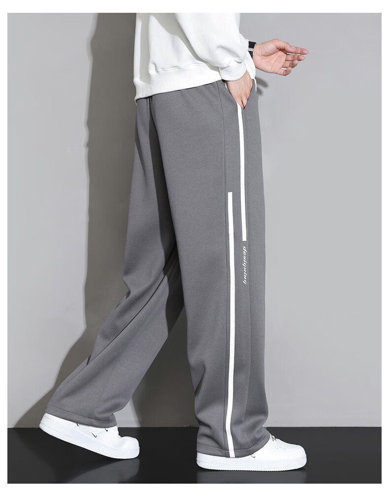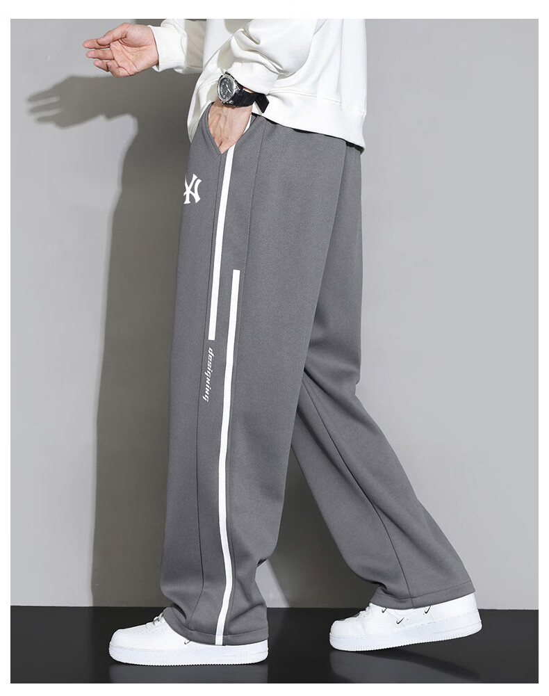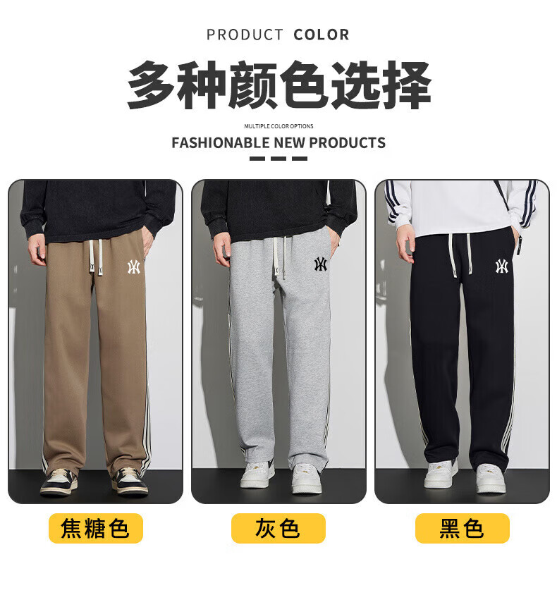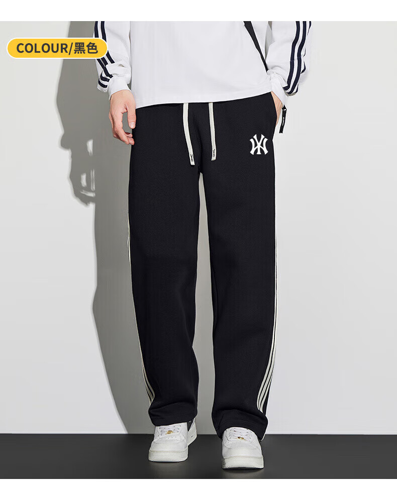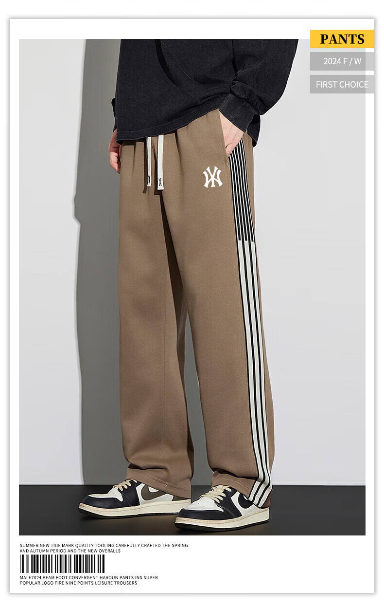 C.MATK Casual Pants Men's Autumn New Fashion Brand Loose Straight Running Sports Pants Men's Winter Velvet Men's Pants Black-B Regular XL