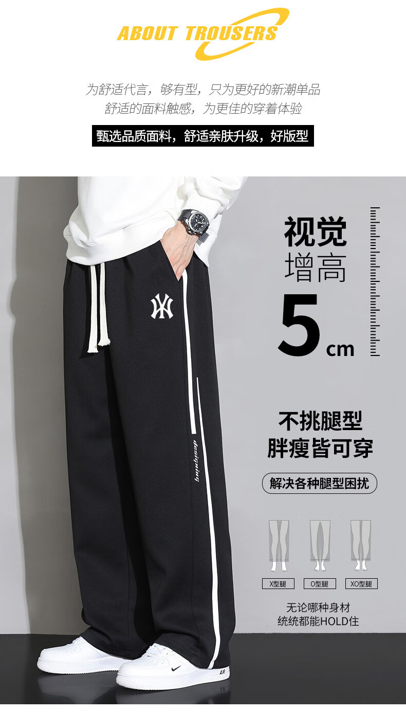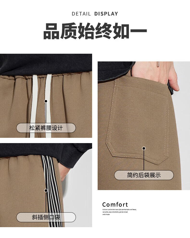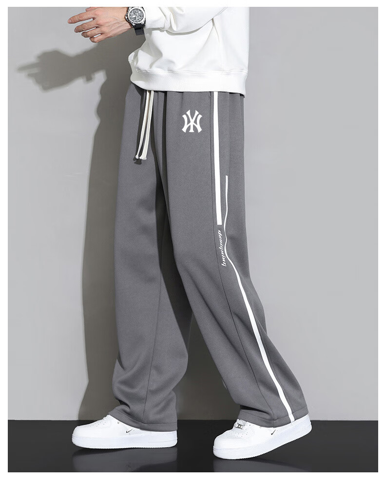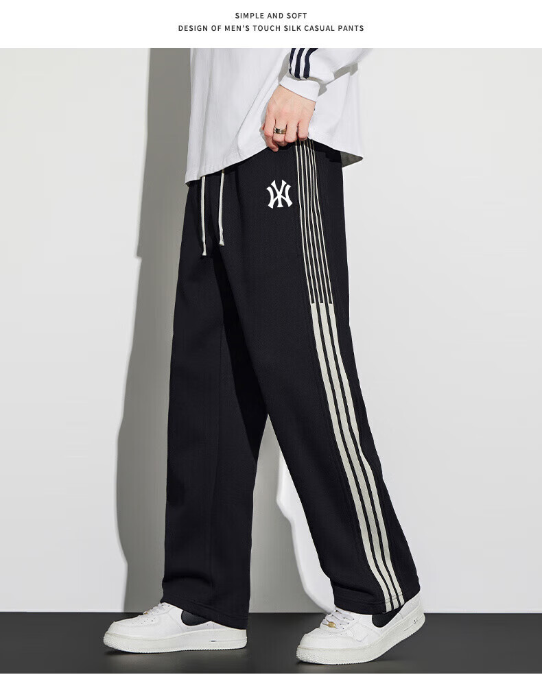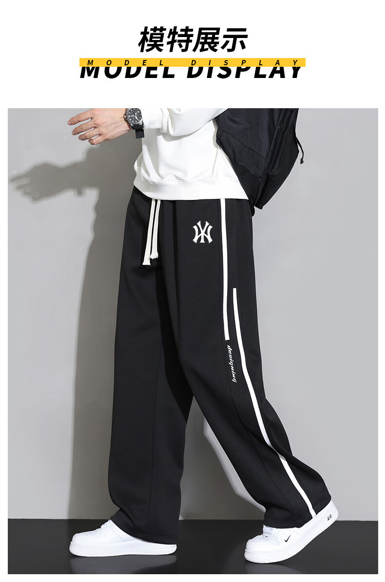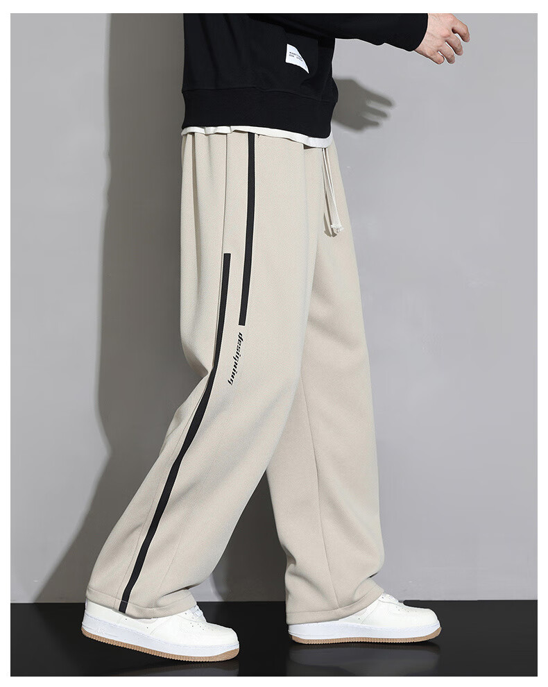 C.MATK Casual Pants Men's Autumn New Fashion Brand Loose Straight Running Sports Pants Men's Winter Velvet Men's Pants Black-B Regular XL