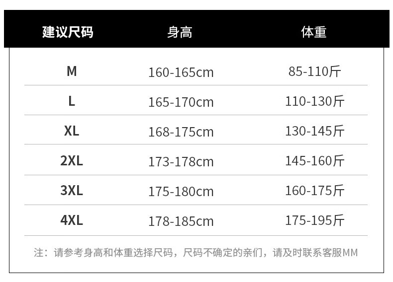 China (cm) 165 / 88-90 170 / 96-98 175 / 108-110 180 / 118-122 185 / 126-130