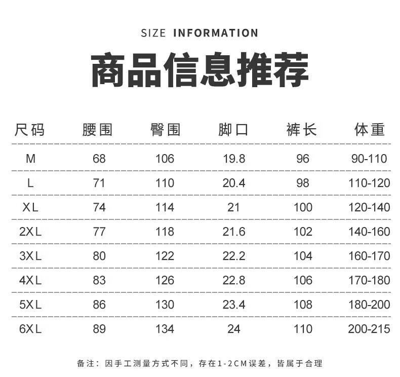 Outseam (cm) 99 cm 101.5 cm 104 cm 106.5 cm 109 cm