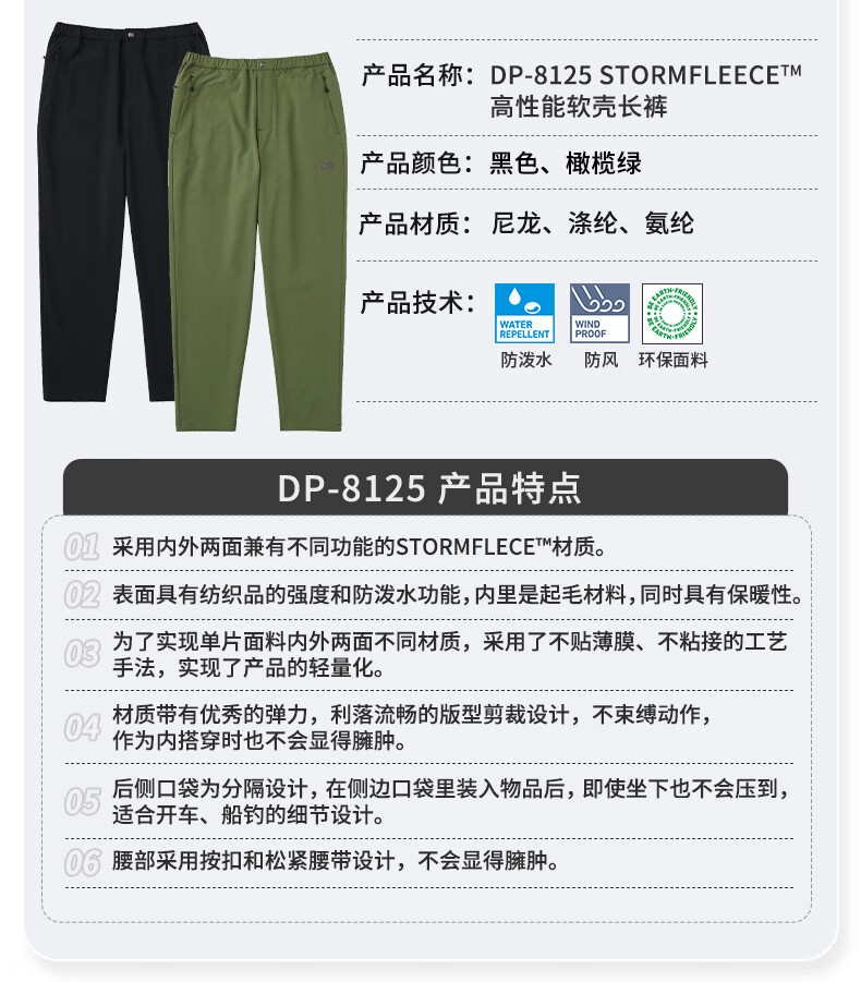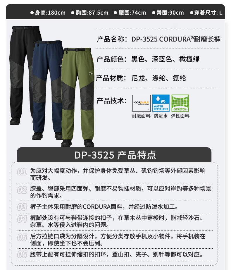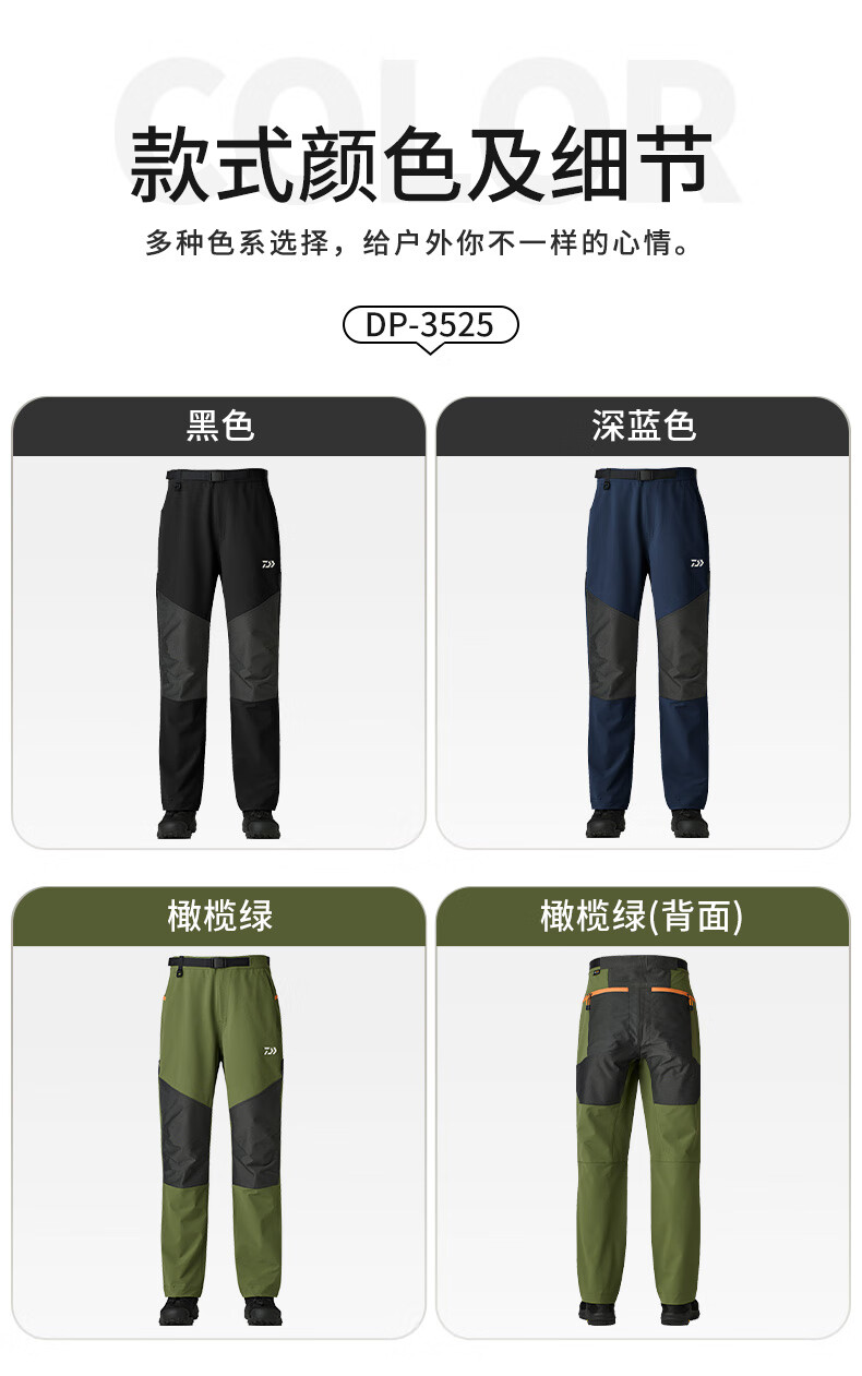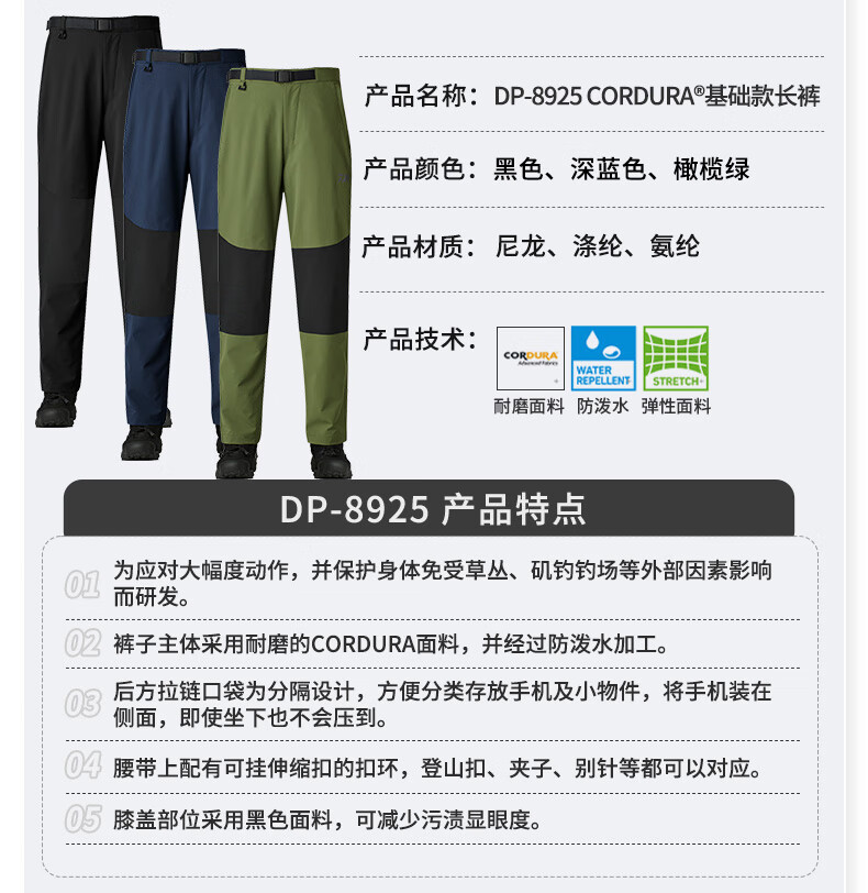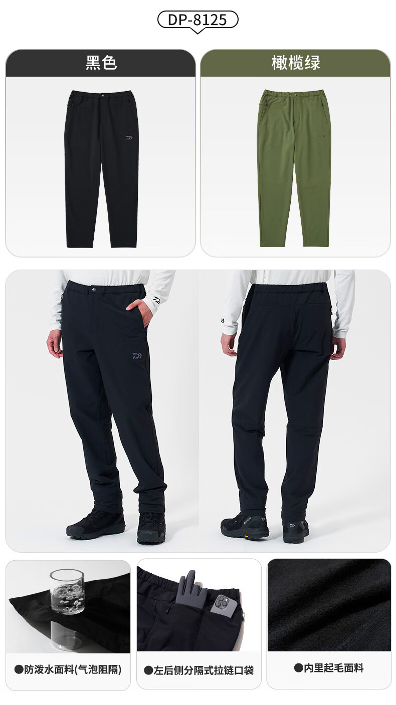 DAIWA 25 autumn and winter DP-3525/8125/8925 wear-resistant and water-repellent fishing trousers stretch sports pants overalls DP-8925 basic trousers-black XL