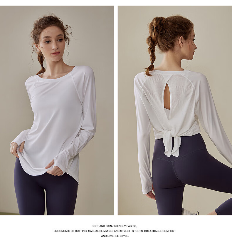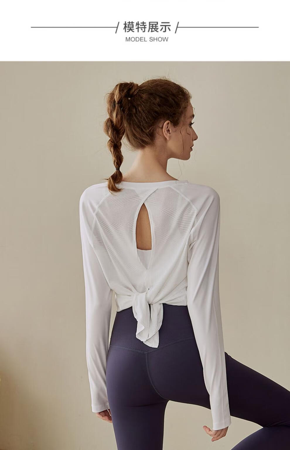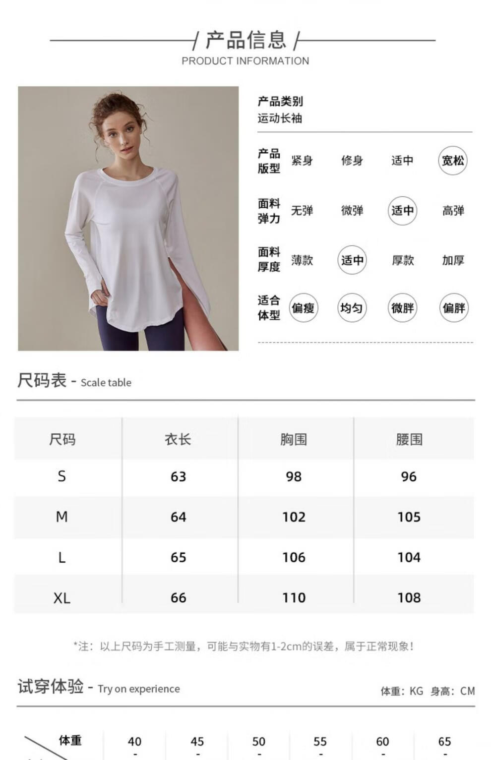 Yoga wear for women, spring and autumn loose sports blouse tops, long-sleeved T-shirts, fitness wear, running fitness Pilates, black slit L