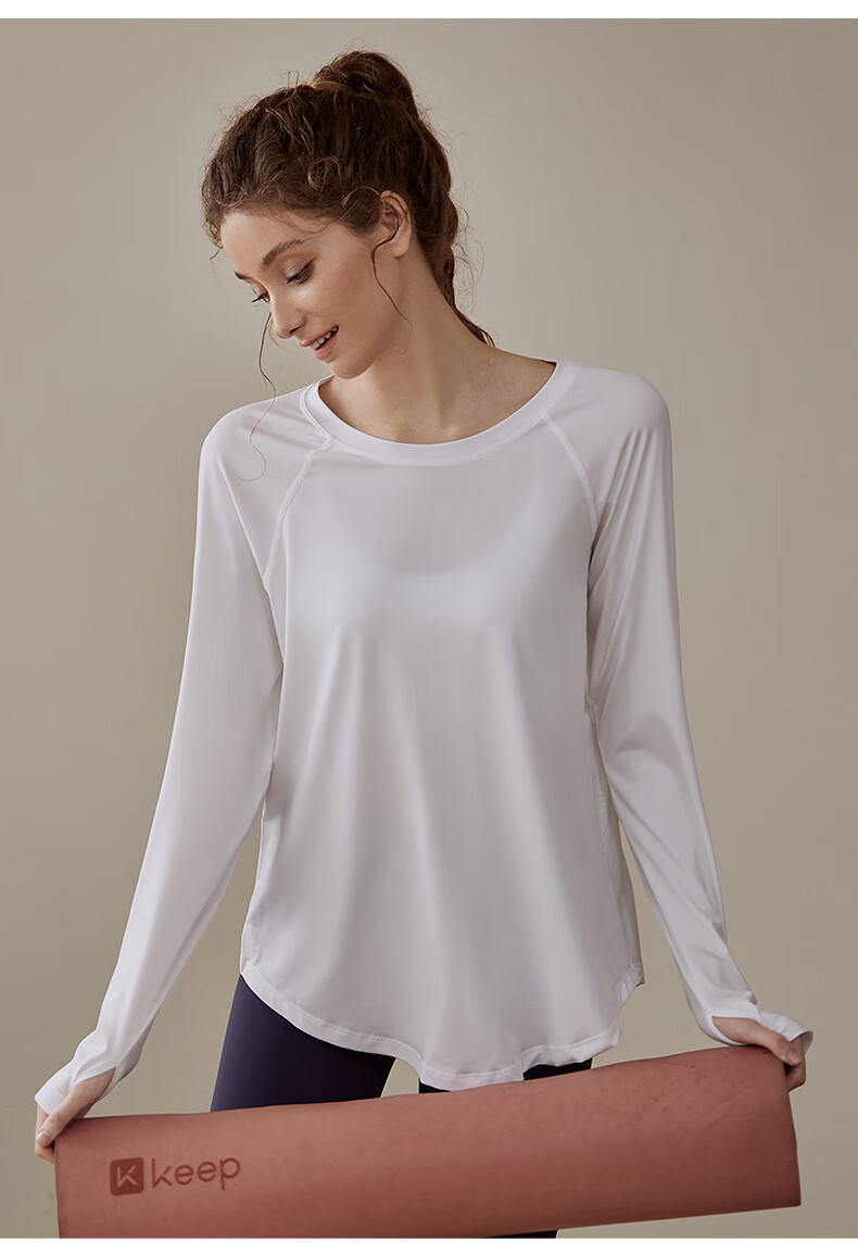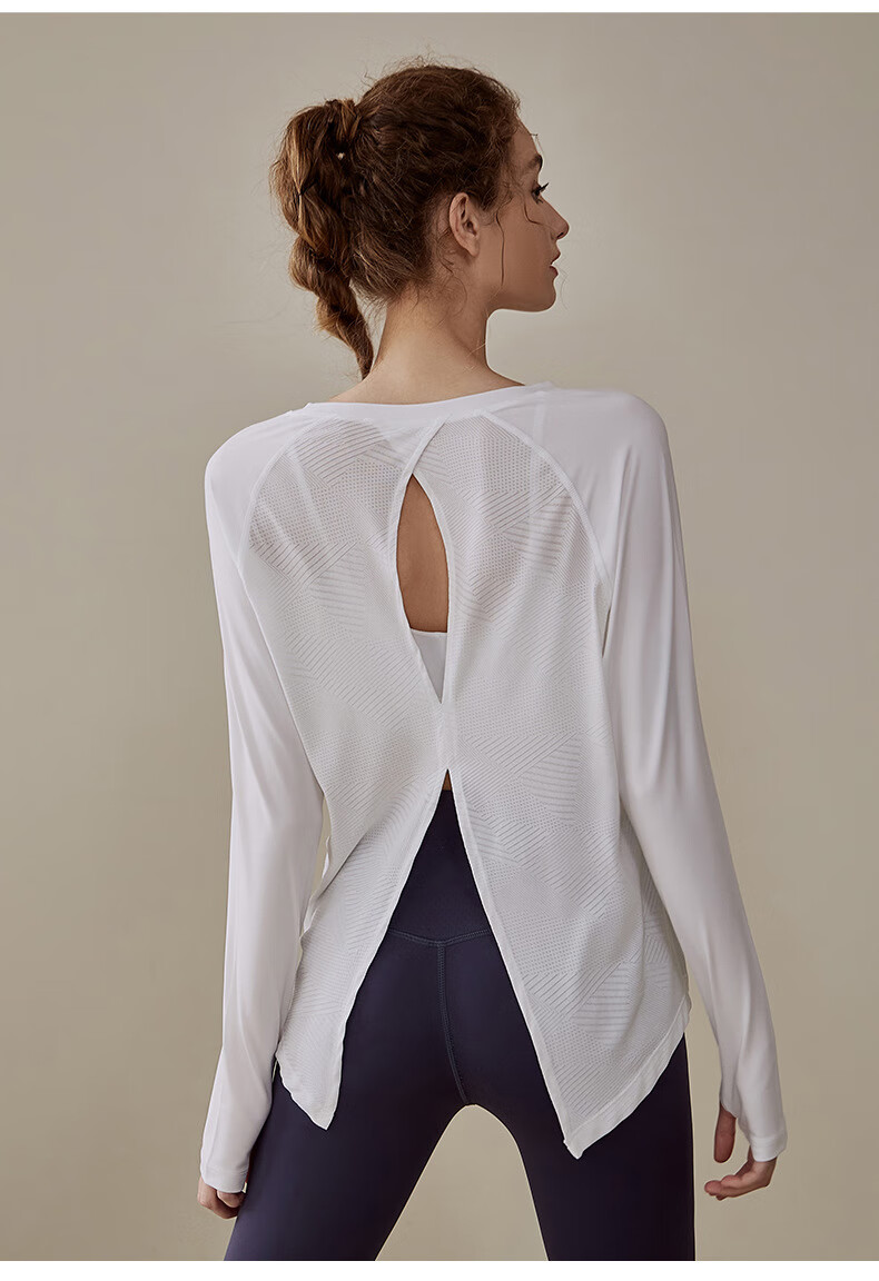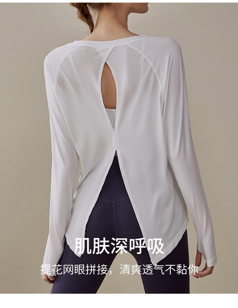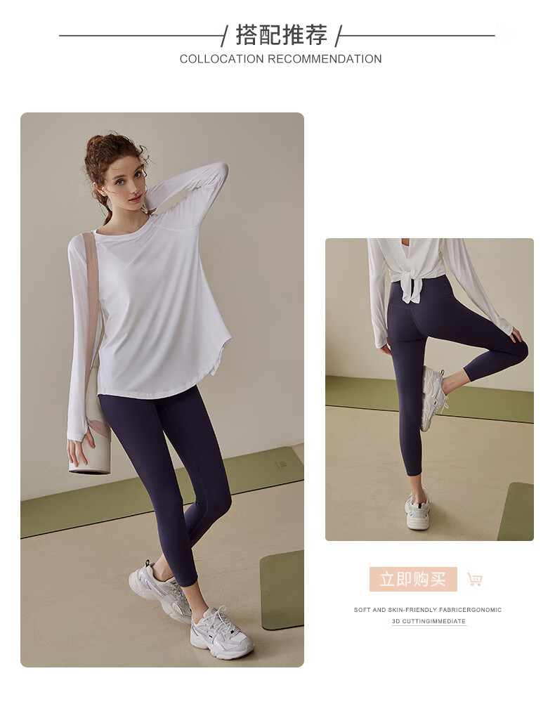Yoga wear for women, spring and autumn loose sports blouse tops, long-sleeved T-shirts, fitness wear, running fitness Pilates, black slit L