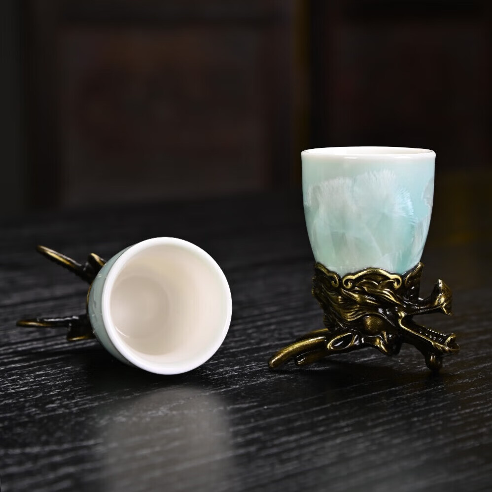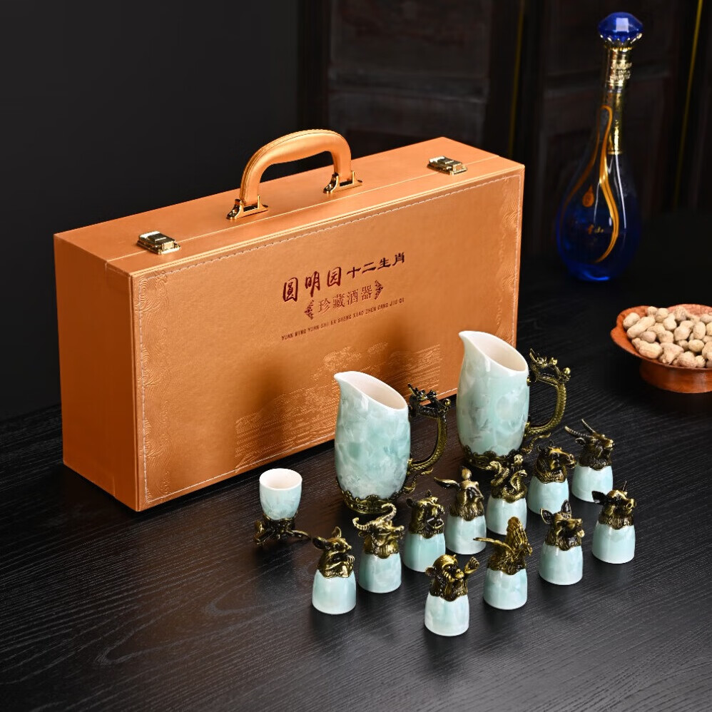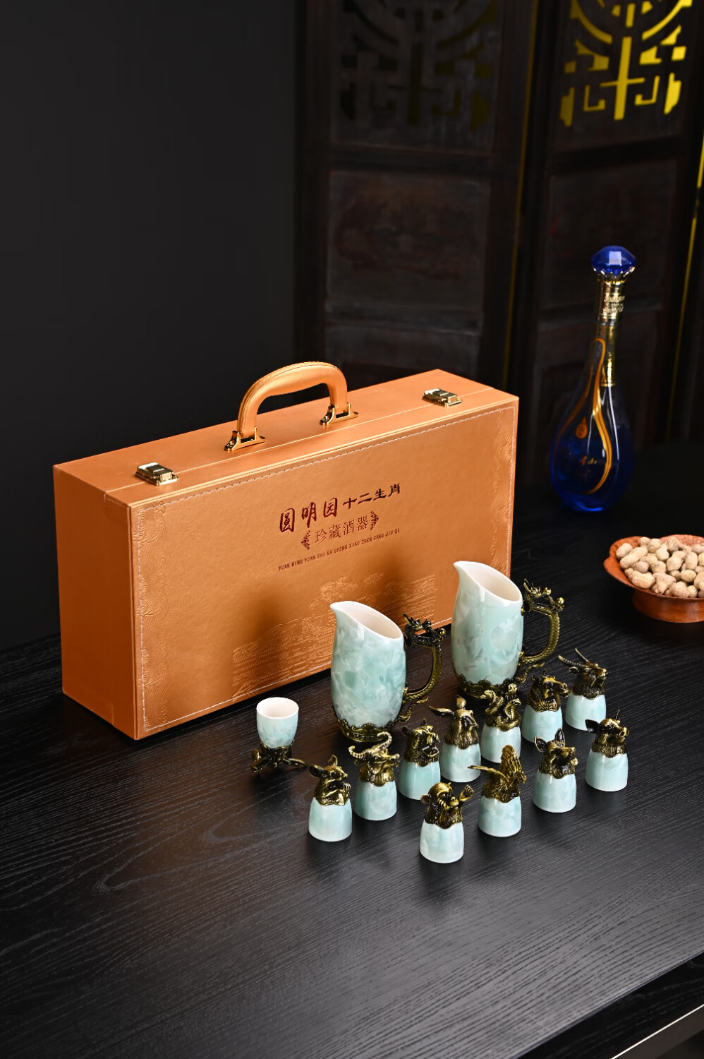 Twelve zodiac animal head crystal glaze ceramic small wine glass wine set wine glass gift high-end white wine glass gift box Twelve zodiac crystal glaze - cyan gift box