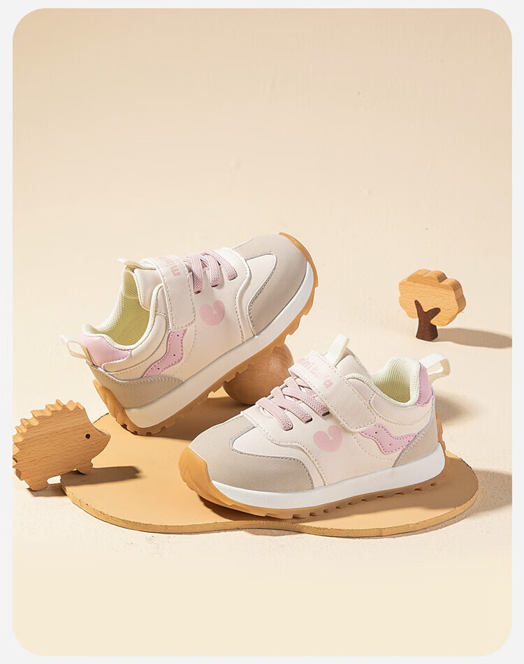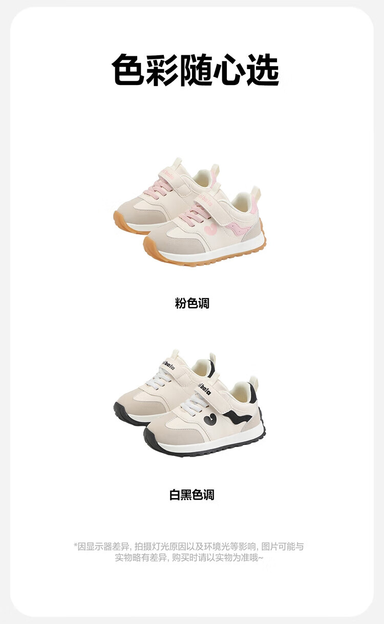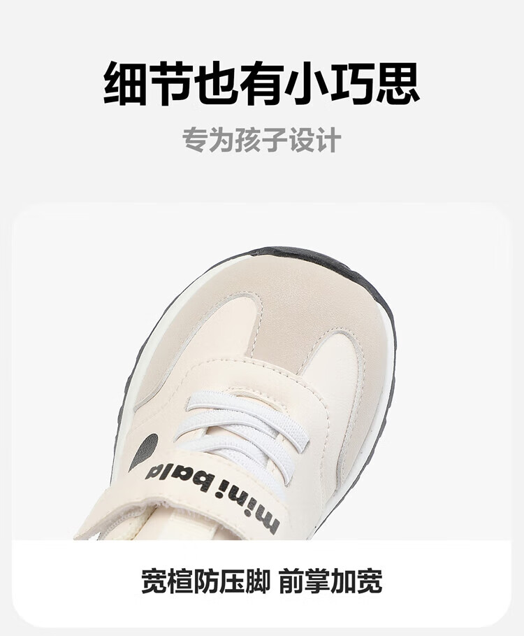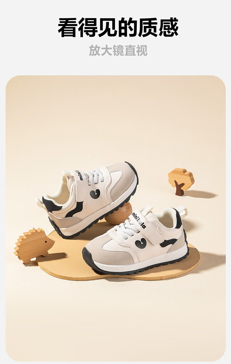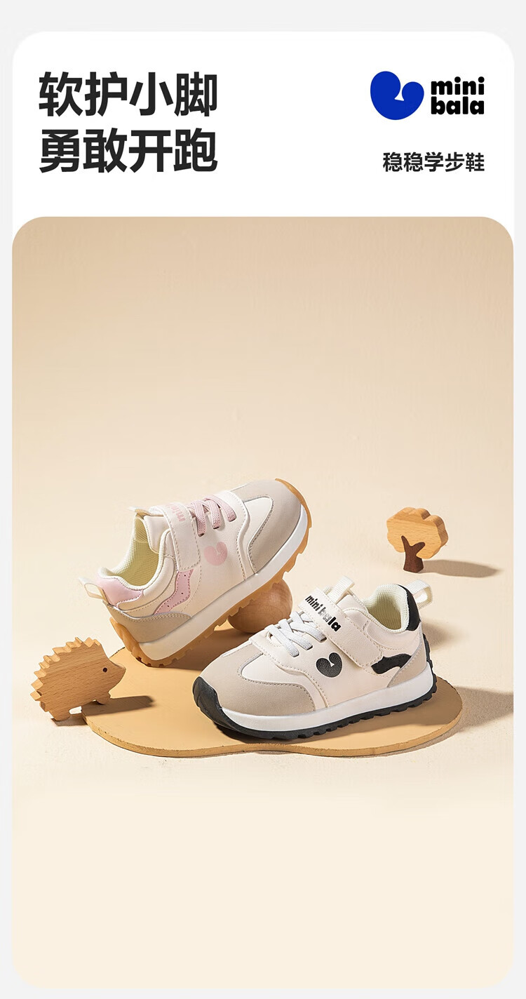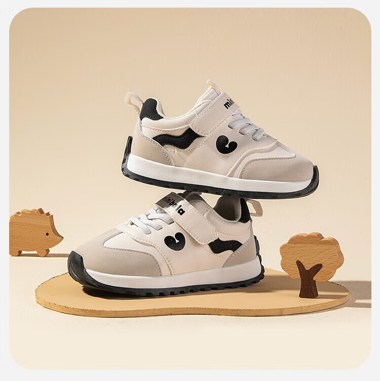 Minibala (minibala) children's shoes, children's toddler shoes, autumn new boys' soft-soled cushioning casual shoes, girls' baby running sneakers, white and black, size 25, suitable for feet 15.5-16.0cm long